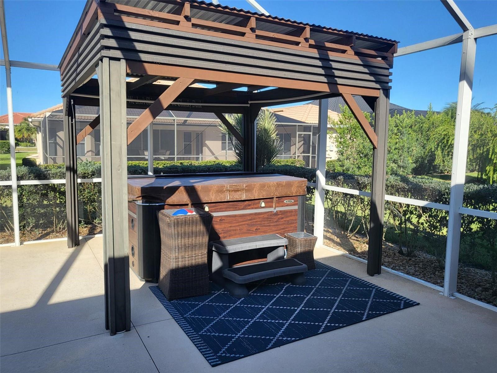 Beautiful home with a split floor plan for your family and guest. When you walk in the front door you will be greeted by a large great room looking out the sliding doors at the awesome lanai and back yard, where your very own heated spa and expanded lanai welcome you to relax in comfort. The home includes all appliances with the purchase, including a whole home water softener. Seller is also offering some of her furniture for sale. She has purchased another smaller home already and can close quickly if needed.The formal dining room has sliding doors and could be used as an office, TV room or even a 4th bedroom. The kitchen has a breakfast bar as well as room for a table and chairs. The master bedroom is huge and includes a wall mounted TV. You can exit the bedroom through the sliding glass doors right into the lanai area that has another wall mounted TV as well as a gas fireplace, 5 TV's total, all included with the home. This is a great floor plan for families! Seller is also installing a new roof with a transferable warranty before closing. Don't miss this opportunity to purchase a home that has been well cared for in a small community with HOA fees of only $74. a month and No CDD fees! Just reduced $16K!! All located within 5 miles of Historic downtown Venice and Venice beach. Great location!