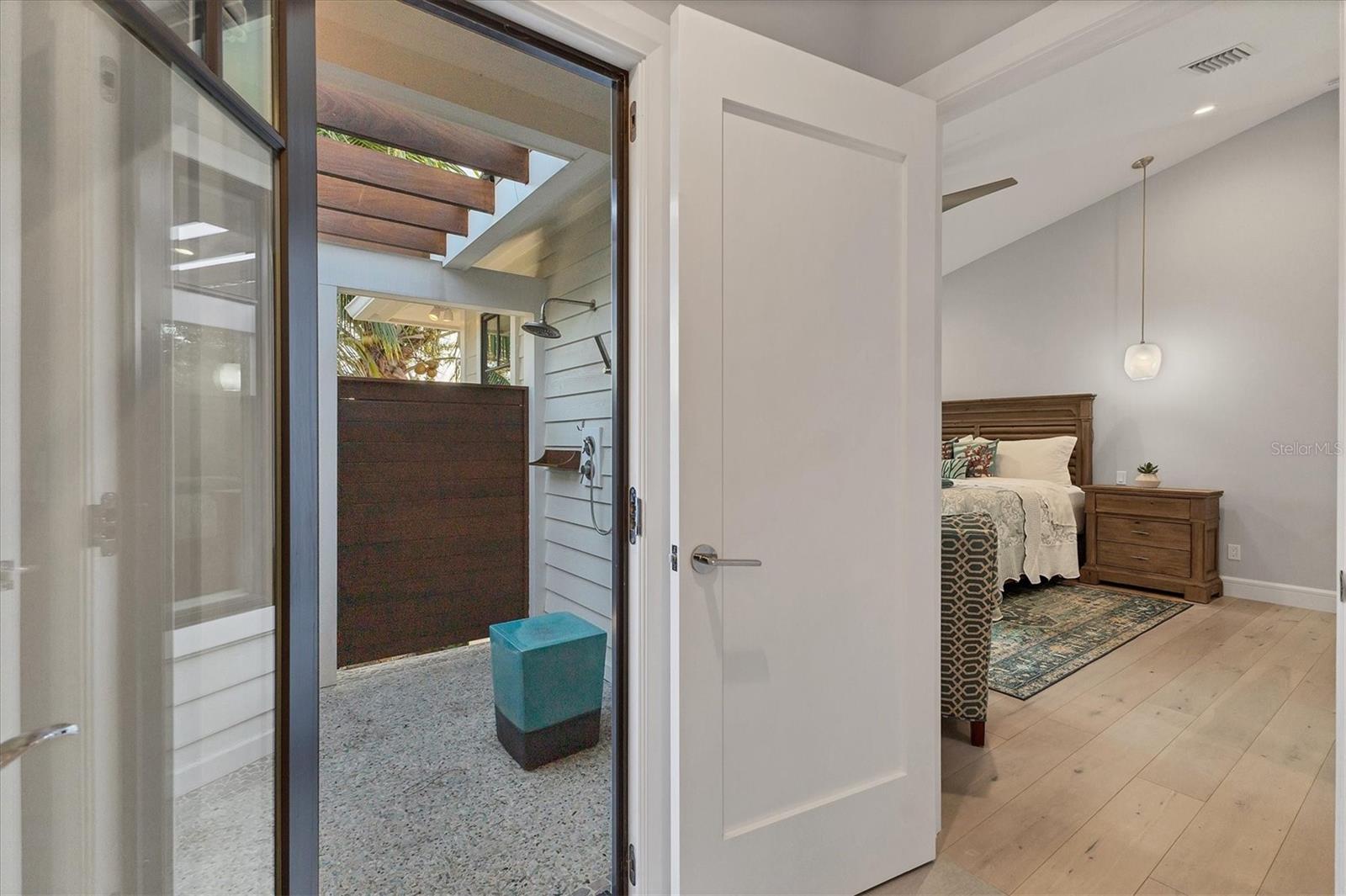 - Exterior: Balcony, French Doors, Lighting, Outdoor Grill, Outdoor Kitchen, Outdoor Shower, Rain Gutters, Sliding Doors