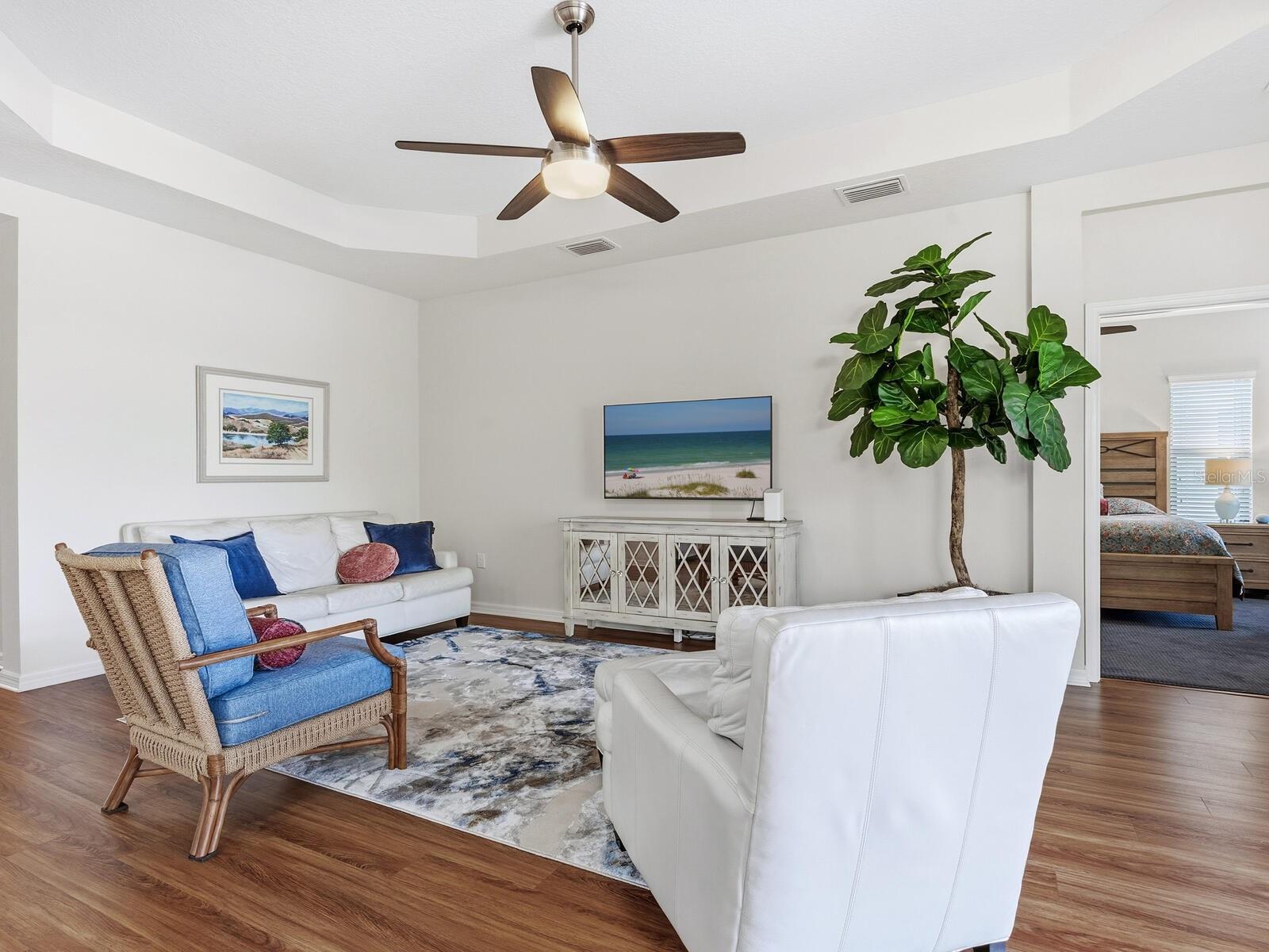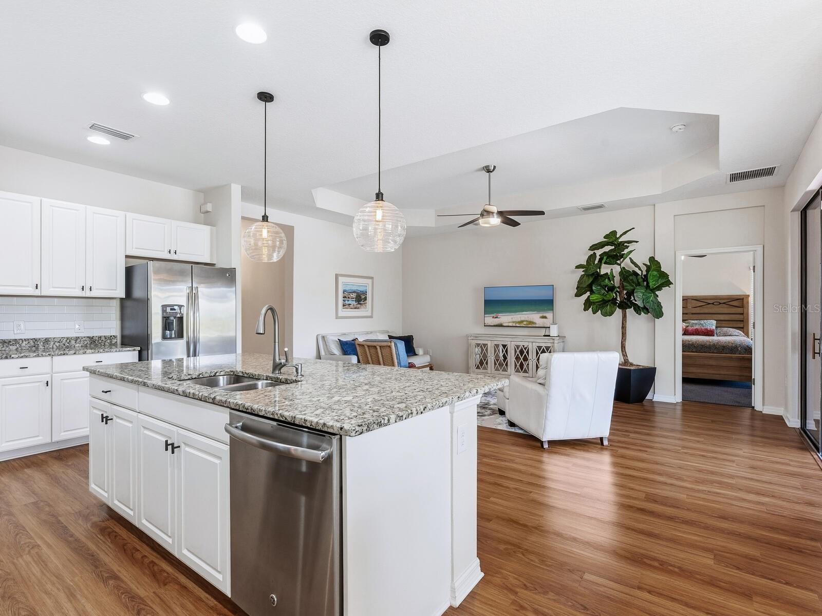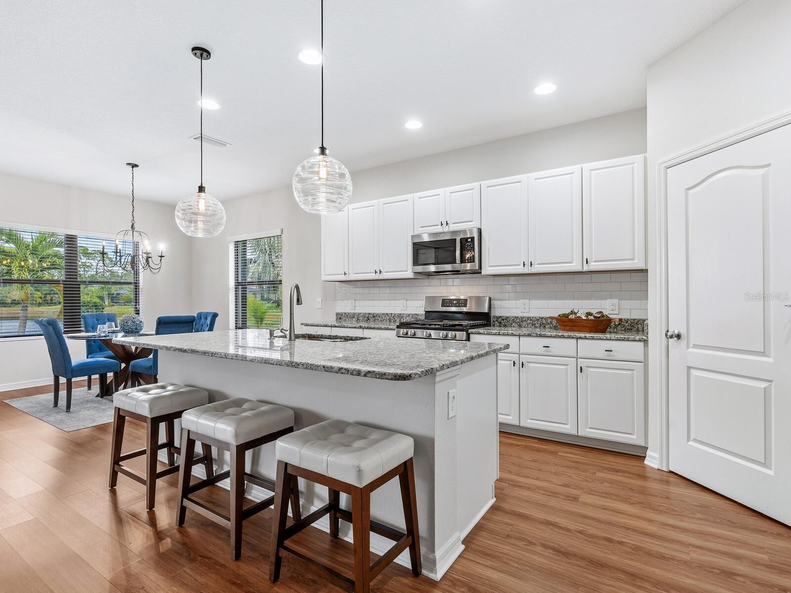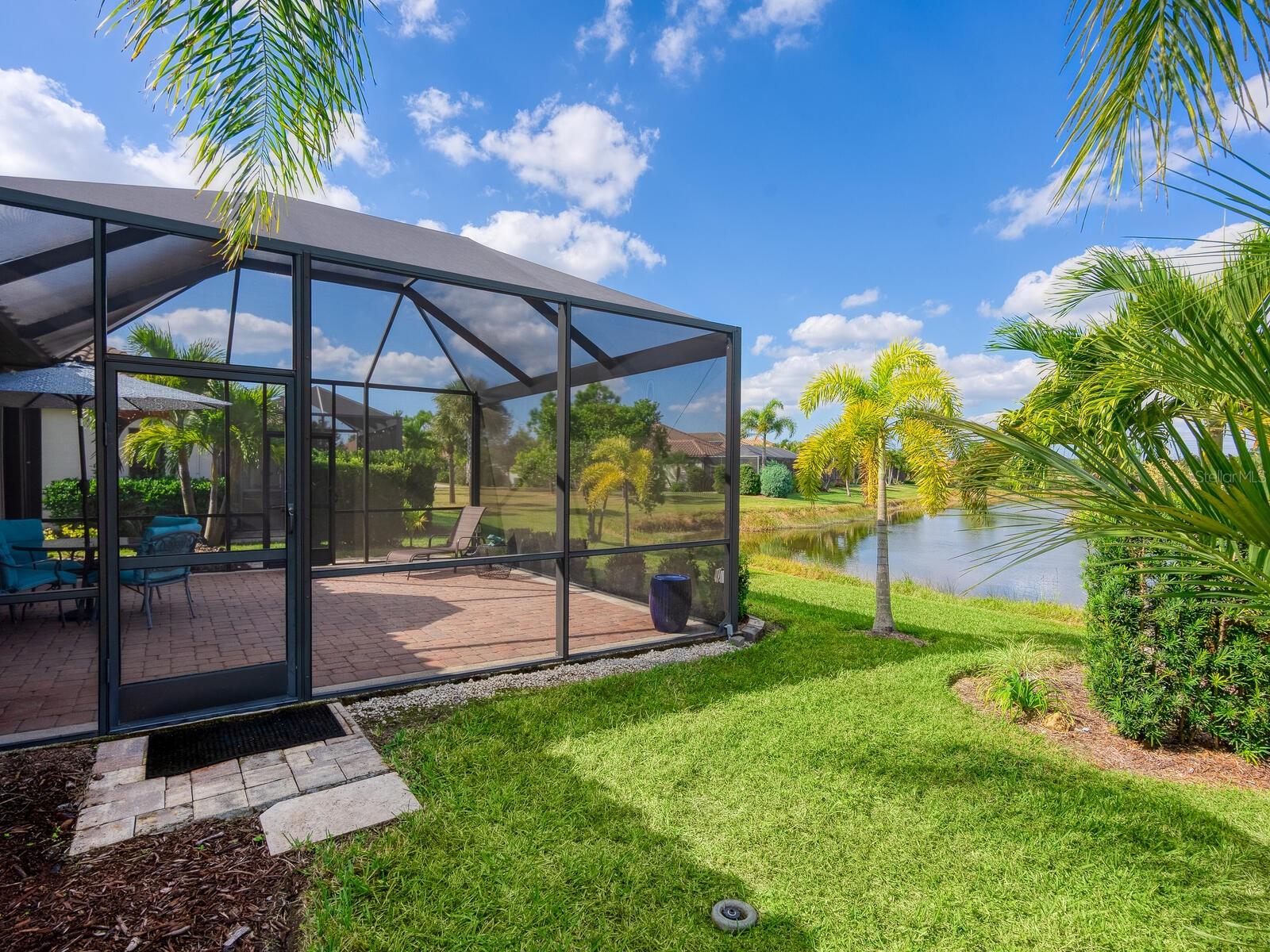 Enjoy SPARKLING LAKE VIEWS from this beautiful 3-BEDROOM PLUS OFFICE, 3-BATHROOM HOME in the desirable gated community of Milano! Freshly painted and move-in ready, it shines with thoughtful upgrades including elegant light fixtures, enhanced baseboards, and an inviting beveled-glass front door. The EXPANSIVE OUTDOOR LIVING SPACE offers serene lake vistas, a natural gas hook-up, and plumbing for an outdoor kitchen--perfect for entertaining and lounging in the sun or shade. The open kitchen includes granite countertops, abundant cabinetry, generous prep space, stainless-steel appliances with a gas range, and a walk-in pantry. Each guest bedroom has its own designated bathroom for added privacy, and the welcoming office overlooks the front of the home with glass-pane French doors for quiet focus. Enjoy tranquil lake views from the primary suite which features two walk-in closets, dual sinks, a large shower, private water closet, and linen closet. Enjoy peace of mind with the included GENERATOR and EASY-TO-USE STORM SMART SHUTTERS. You also have the benefit of a laundry room with cabinets, sink area, and storage shelves. Milano offers EXCEPTIONAL AMENITIES: a clubhouse with kitchen, resort-style heated pool and spa, lifestyle director, outdoor pavilion, fire pit, dog park, and pickleball and bocce courts. Ideally located near shopping, dining, entertainment, Gulf beaches, golf courses, top-rated schools, airports, medical services, downtown Venice, and easy access to major routes--plus low HOA fees and no CDD! Don't miss out on this wonderful home!