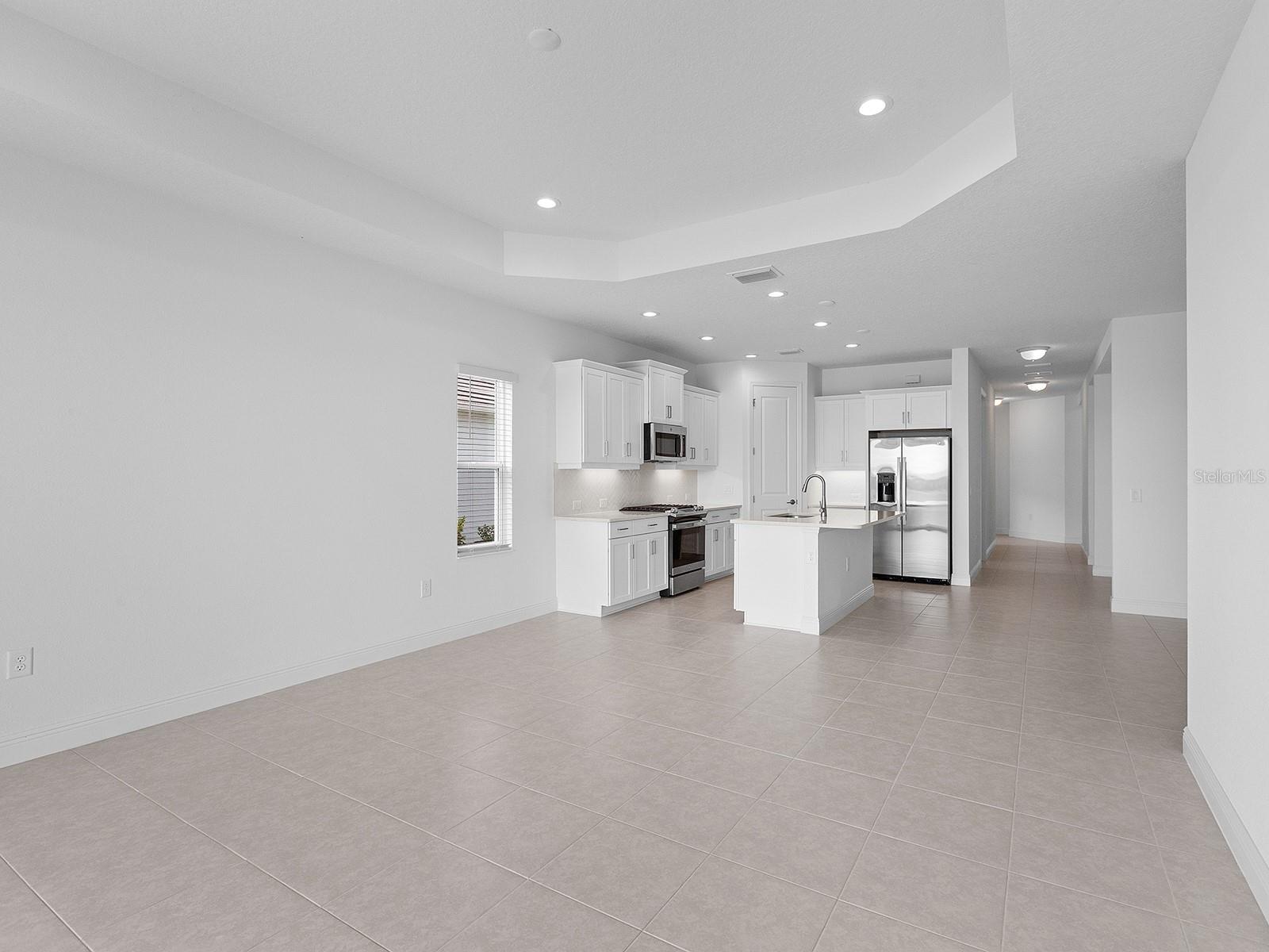 One or more photo(s) has been virtually staged. Skip the wait for new construction and enter this never-lived-in, fully upgraded lakefront home offering immediate occupancy. Thoughtfully designed and enhanced with more than $55,000 in builder upgrades, this residence is under warranty, an exceptional opportunity for today's buyers. This popular Dream model features three bedrooms with walk-in closets, plus a stylish den with double glass doors. The open, split-bedroom layout creates natural separation and privacy for guests, owners, and those working from home, all while the great room showcases beautiful lake views and abundant natural light. Fresh, neutral finishes throughout provide the perfect canvas for your personal style. The chef's kitchen shines with quartz countertops, a natural gas range, walk-in pantry with wood shelving, pullouts, under-cabinet LED lighting, and a spacious island with seating. Additional upgrades include whole-home impact-rated windows and doors, 8-foot interior doors, and a 2-foot extended garage with epoxy flooring, ideal for larger vehicles or added storage. A well-appointed indoor laundry room offers cabinetry, shelving, and a Corian-topped laundry tub for everyday convenience. Outside, the home is finished with a paver driveway, covered lanai, attractive landscaping with a sprinkler system and a durable tile roof. Be sure to explore the 3D tour and ask your REALTOR® for the full features list to appreciate the quality and care built into this exceptional, move-in-ready home.