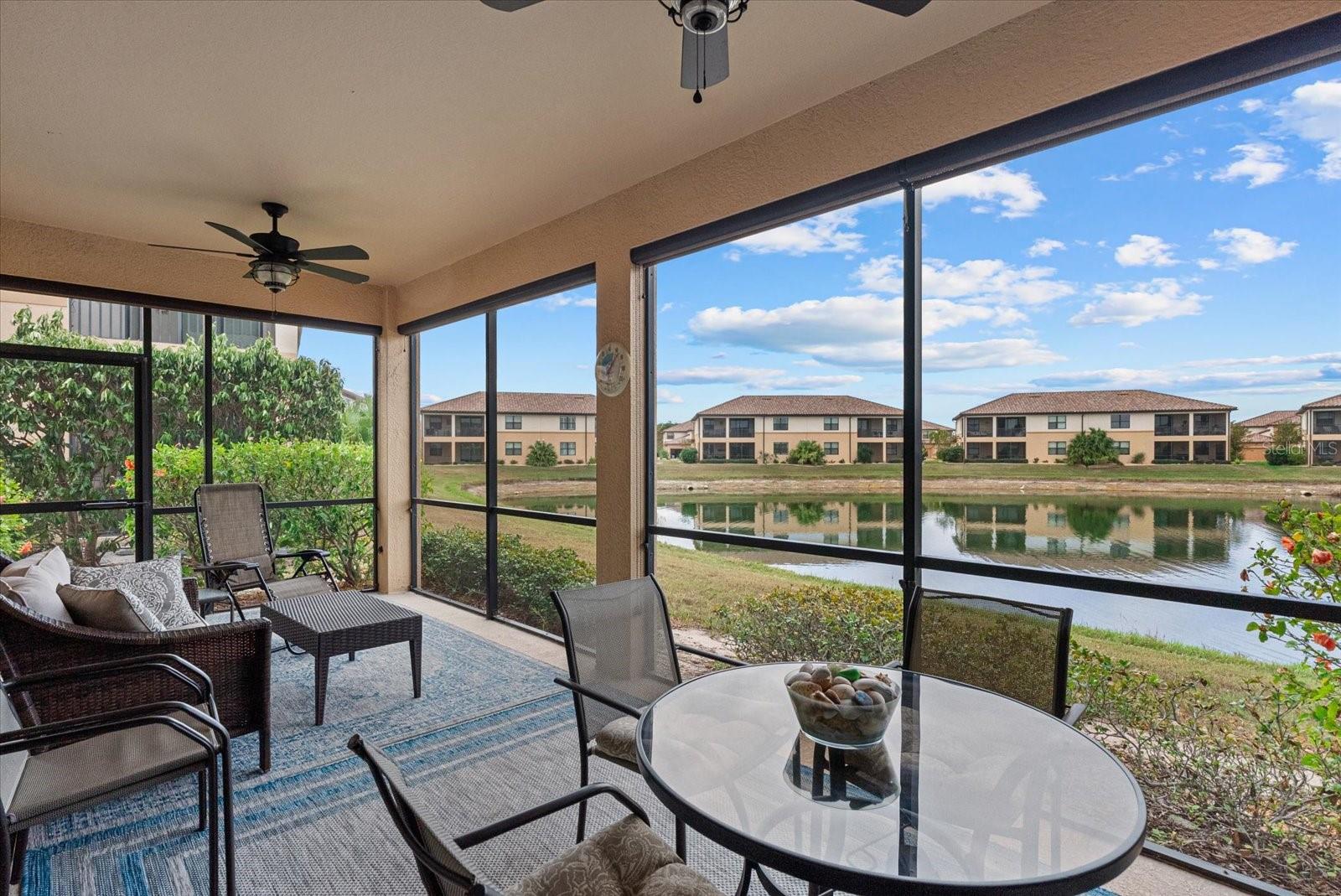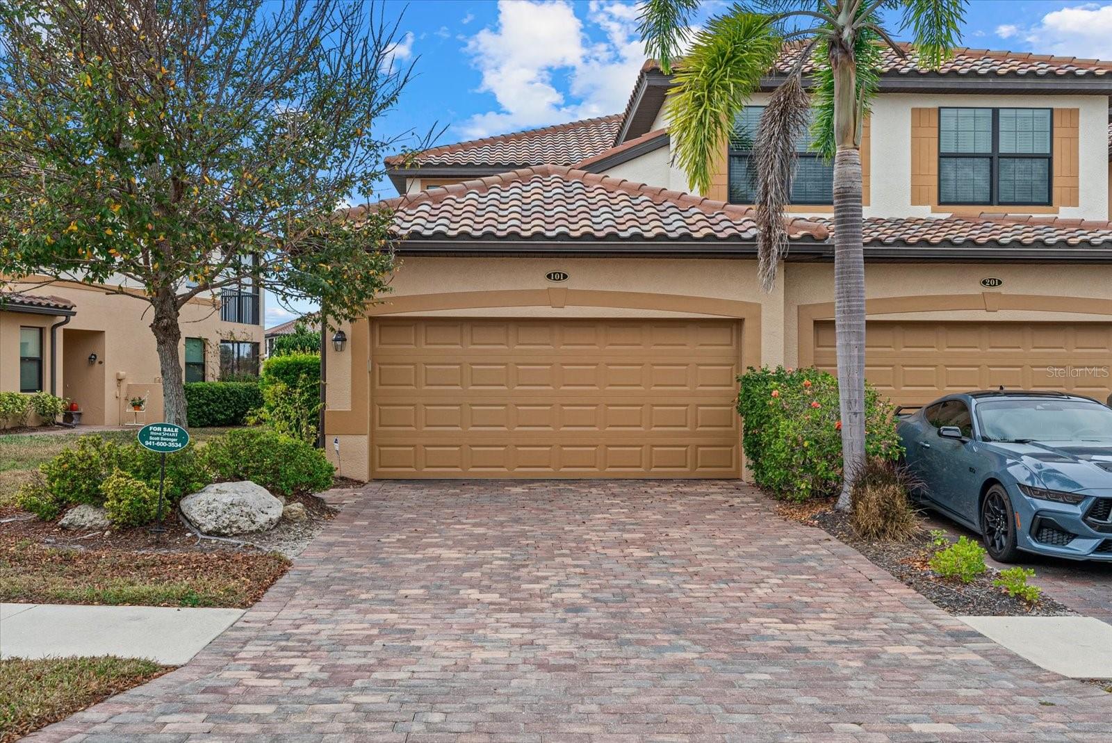Beautiful first floor 3 bedroom 2 bath coach home with a 2 car garage located at 20181 Ragazza Circle Unit 101 in the highly desirable gated community of Gran Paradiso in Wellen Park. This light and open end-unit offers a peaceful water view and the convenience of no stairsThe owner recently installed high end luxury vinyl flooring throughout the entire home. Hurricane rated impact windows come standard along with a fire sprinkler system for added safety and peace of mind. The home features a wonderful split floor plan that completely closes off the guest side of the home, providing excellent privacy for family and visitors. The spacious kitchen includes solid wood cabinetry, stainless steel appliances, and a large breakfast bar that flows into the dining and living areas. The primary suite offers dual walk-in closets, a walk-in shower, separate vanities, and a relaxing garden tub. Enjoy a private screened lanai overlooking the water, perfect for relaxing or entertaining. Furniture may be optional.Gran Paradiso offers resort style amenities including a huge community pool, fitness center, tennis, pickleball, sauna, clubhouse, and miles of walking trails. Wellen Park is located in Sarasota County and features a Venice address, placing you close to Downtown Wellen, shopping, dining, golf, and the Atlanta Braves spring training stadium. A move-in-ready home in one of the most sought-after communities in Southwest Florida.