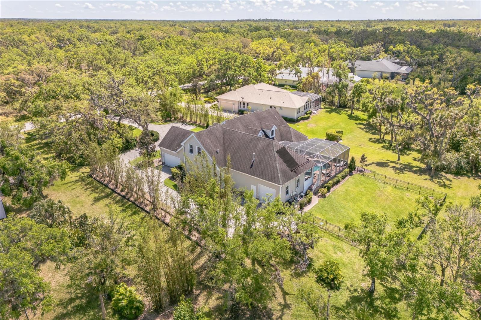 Welcome to 1570 Oakford Rd, a breathtaking 4-bedroom, 2 full-bath, 2 half-bath estate with 4,300 sq. ft. of living space, nestled on just under an acre of lush, private land. Surrounded by mature trees--including magnolias, oaks, cedars, and bamboo--this home offers unparalleled privacy and serenity, where you can often spot deer grazing in the backyard. Thoughtfully positioned on the lot, this home provides ample space in both the front and backyards, ensuring plenty of privacy.As you approach, a spacious front porch welcomes you, set back from the road and framed by gorgeous landscaping. Step inside, and you'll be captivated by the exceptional craftsmanship and attention to detail, from intricate woodwork to plantation shutters throughout the home. The high ceilings on both floors create an airy, elegant atmosphere, with coffered ceilings on the first floor adding a touch of grandeur. Custom lighting features and built-ins throughout the home, paired with dimmers in key areas, allow you to create a warm and inviting ambiance at any time of day.The gourmet kitchen is a chef's dream, featuring a gas stove, premium upgraded appliances, and an open layout perfect for entertaining. Just off the kitchen, a cozy breakfast nook offers the perfect spot to enjoy morning coffee, while a separate formal dining room provides an elegant space for hosting dinner parties.The luxurious master suite, located on the ground floor, is a true retreat. It features tray ceilings with a custom finish, a grand double-door entry, and direct access to the pool area. The spa-like ensuite includes an oversized shower, travertine tile flooring and shower, his-and-hers sinks, and a private water closet. His-and-hers walk-in closets provide ample storage, completing this exquisite primary suite.The remaining three oversized bedrooms are located on the second floor, each easily accommodating a king-size bed.Throughout the home, French doors open onto the pool area, allowing for wonderful natural light and airflow. The back patio and pool area are elevated, offering a great view of the property and enhancing the home's connection to its serene surroundings. Step outside to your caged pool and hot tub, an outdoor kitchen, and a fully fenced yard--perfect for gatherings or quiet evenings under the stars.For added convenience, the home features two attached garages, offering ample space for parking or storage. The double garage is equipped with a Tesla EV charger, making it ideal for electric vehicle owners.This home is a rare find, blending character, quality craftsmanship, and modern upgrades in a stunning natural setting. Don't miss your chance to own this exceptional property--schedule your private tour today!