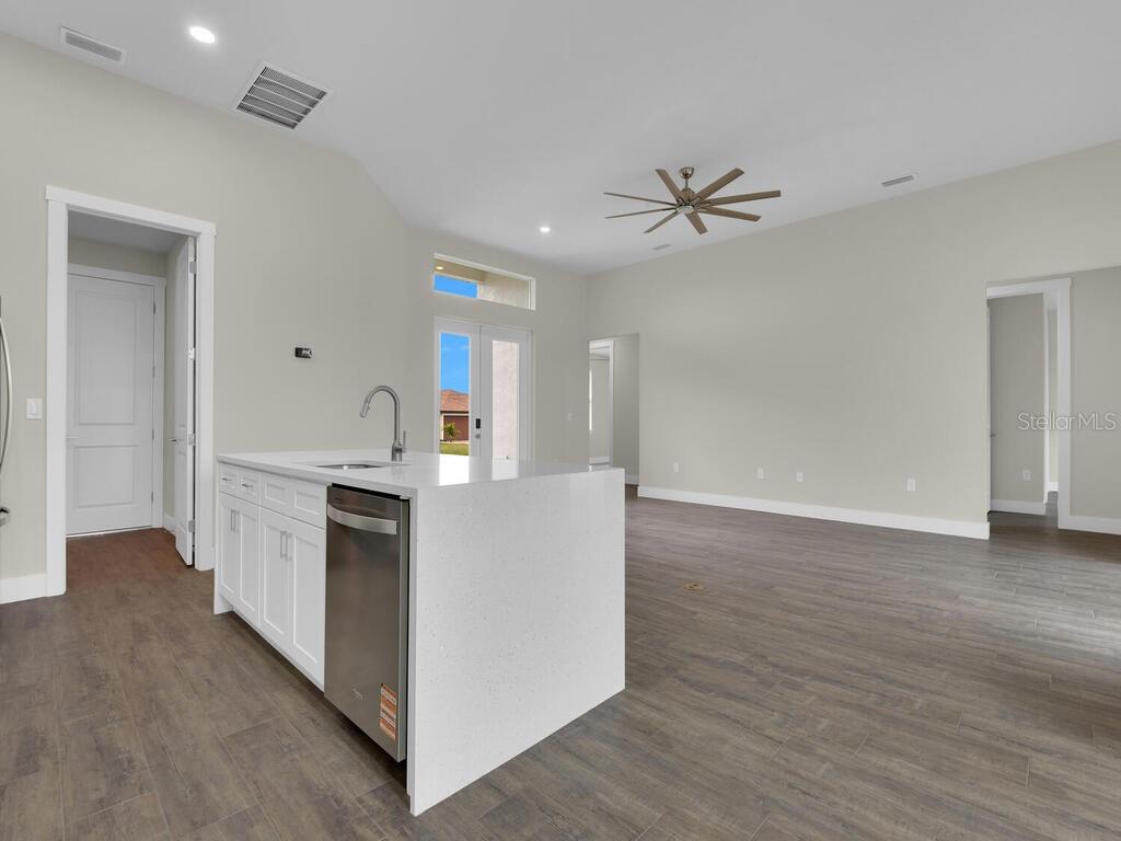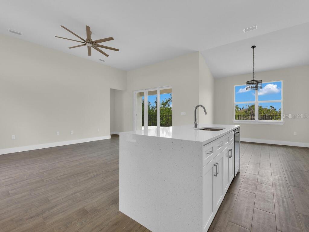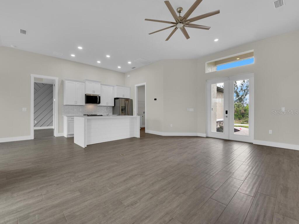 Discover the brand-new Custom Douglas Brooke Home featuring 4 bedrooms, 2 bathrooms, and a 3-car garage, complete with impact-resistant windows and doors. Spanning over 2000 square feet, this home is adorned with high-end finishes. Step through the impact-resistant glass double doors and into a spacious great room showcasing elegant dark wood-look tile, soaring ceilings, and sliding doors that lead to an expansive pool area. The kitchen boasts crisp white upper cabinets and black base cabinets, quartz countertops, and stainless-steel appliances. A large island separates the kitchen from the living space. Adjacent to the kitchen is a huge walk-in pantry and a sizable laundry room with a sink. The dining area, set behind the kitchen, features a vaulted ceiling. The master suite is a true retreat with walk-in closets and an ensuite bathroom with dual vanities and a walk-in glass shower. The home's guest wing offers three additional large bedrooms and a full bathroom. Completing this residence is a generous 3-car garage and a pool equipped with an alarm system. Additional features include in-wall pest control, pre-wiring for cable in the master and living rooms, smart home capabilities, and impact-rated windows and doors. Close to shopping, nightlife, boat ramps, hospitals, major airports and so much more! Photos are of Model Home and finishings may differ. Please see attachments. Rates as low as 3.99% for well qualified buyers with DBL Home Mortgage.