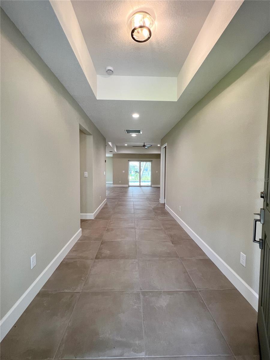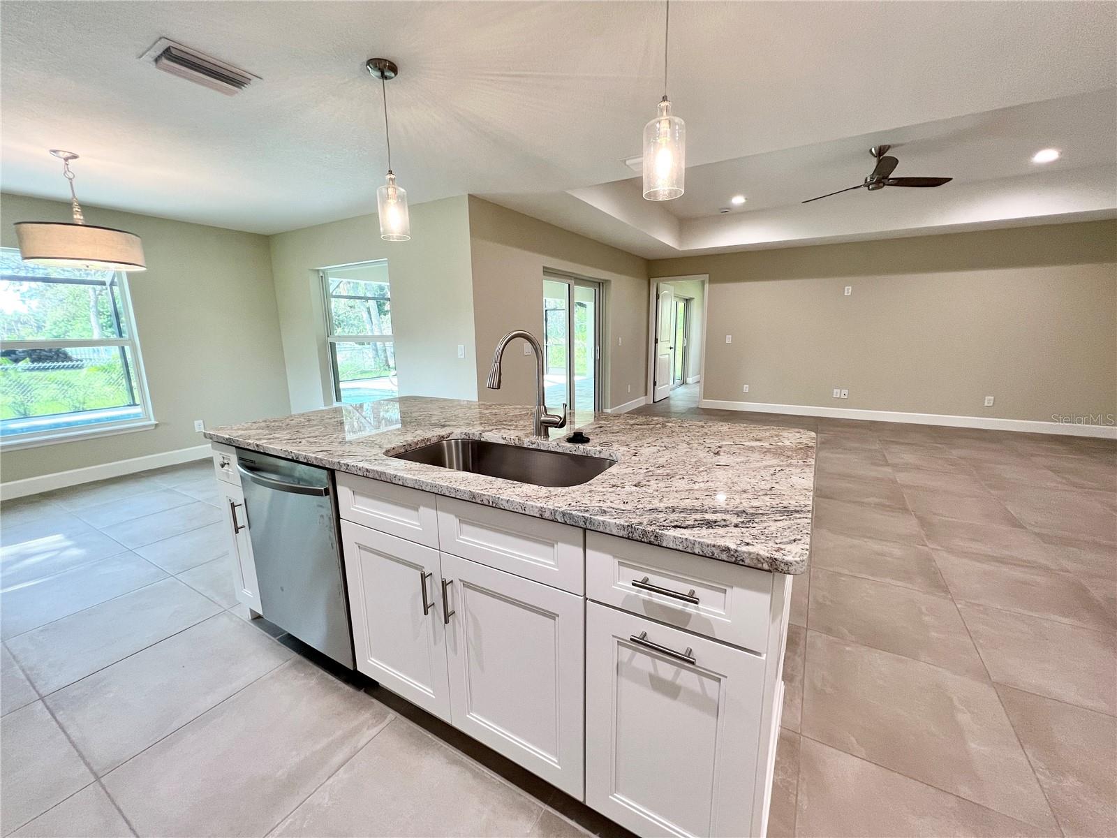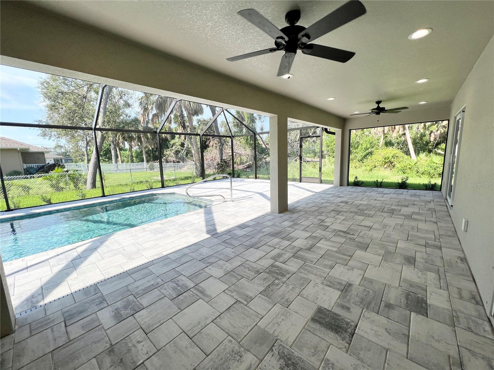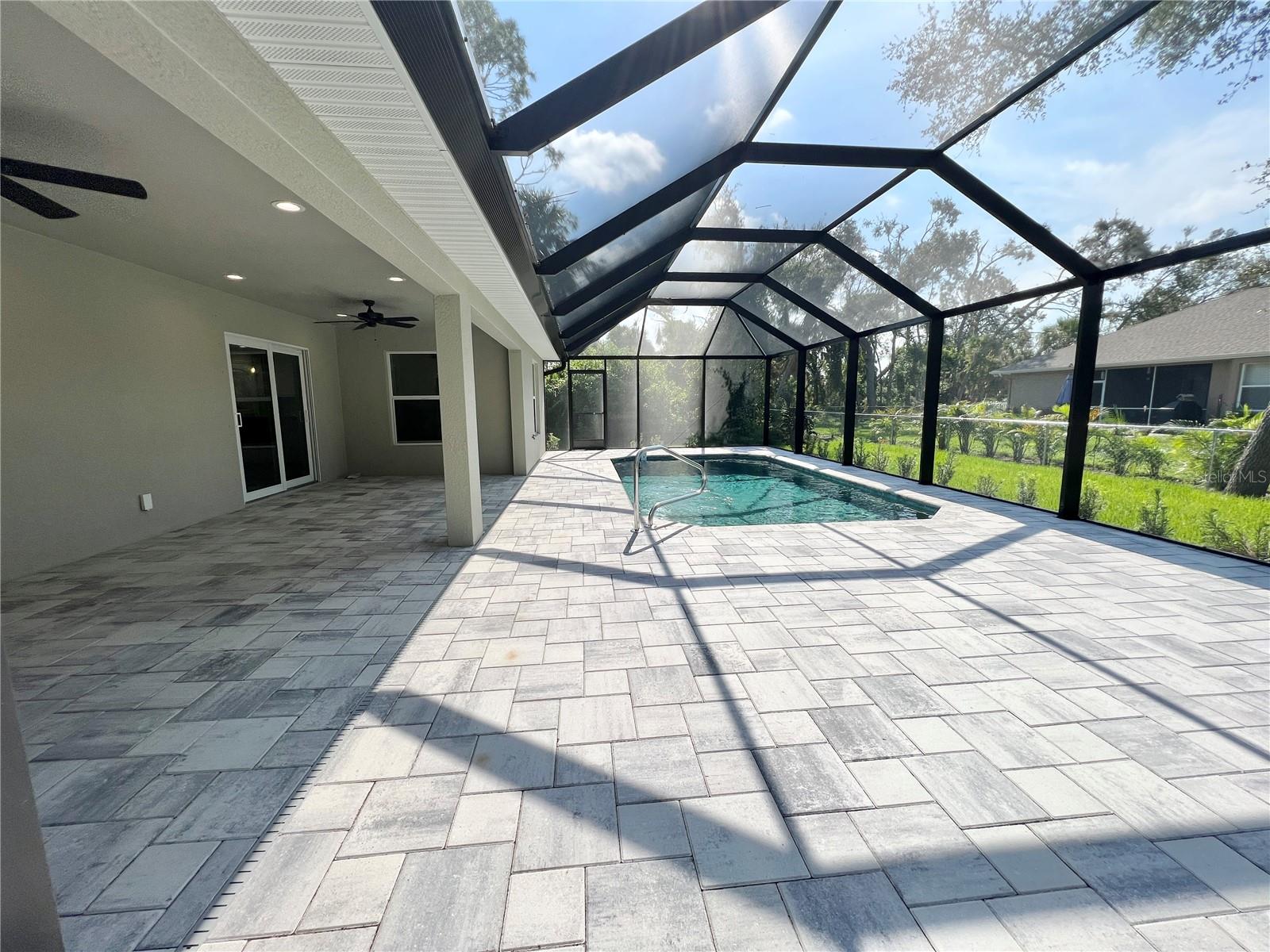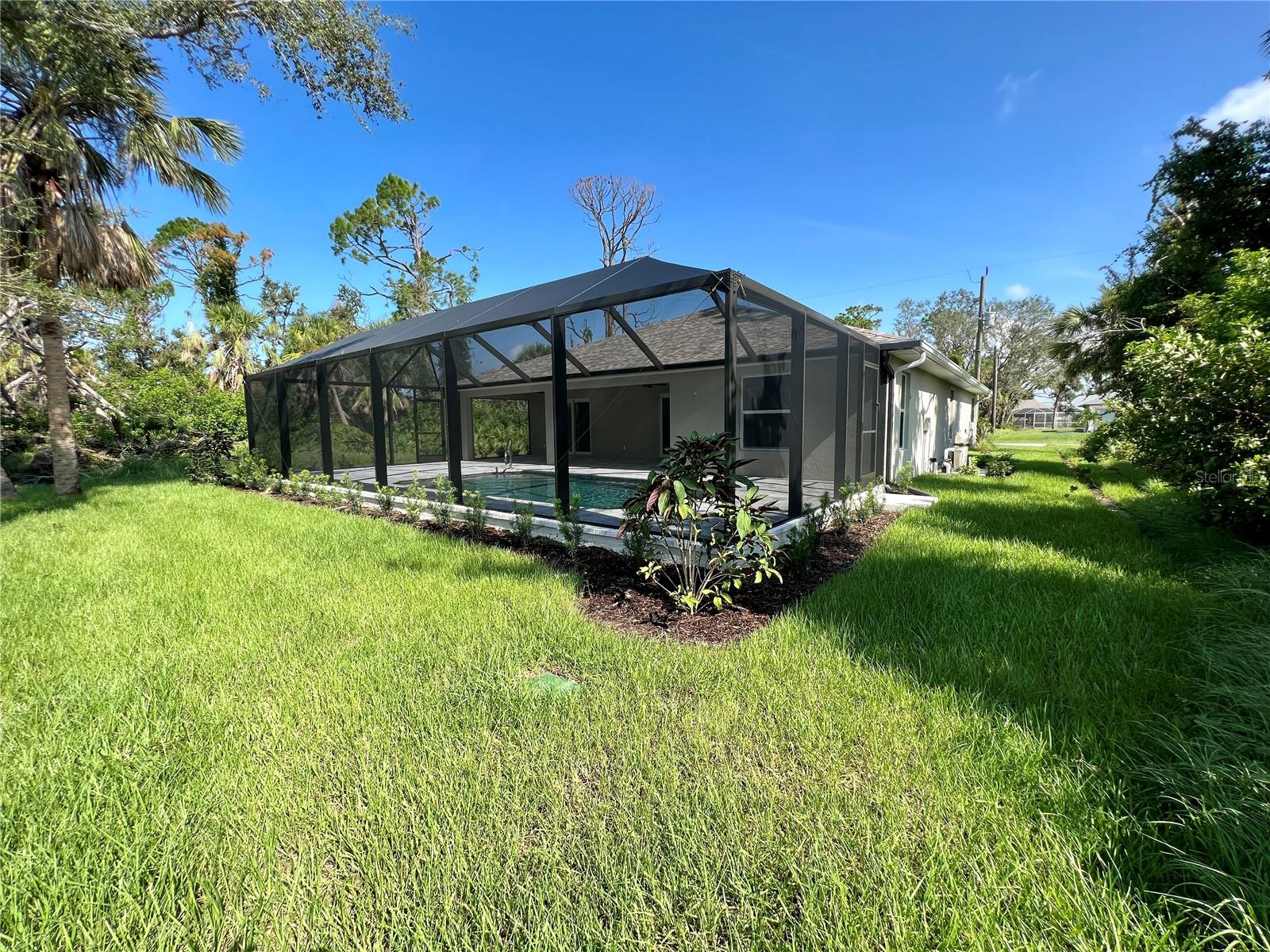 Welcome to your dream home in the thriving Rotonda Heights neighborhood of Rotonda West! This stunning Regina model, constructed by JWM Residential, is 100% complete and ready for sale. Situated in an X flood zone, this exquisite pool home boasts a modern design and an array of desirable features that will capture your heart. Step inside and be greeted by an inviting open-concept living space, adorned with elegant tray ceilings that create a sense of spaciousness and comfort. The front porch offers ample room for seating, providing the perfect spot to unwind and soak in the surroundings. High-quality porcelain tile flows throughout the entire home, adding a touch of luxury to every corner. The featuring granite countertops, a tasteful tile backsplash, and shaker cabinets with crown molding. Stainless steel Samsung appliances and a convenient walk-in pantry complete the picture, ensuring both style and functionality. The laundry room offers proper cabinets for added convenience. The owner's suite bathroom is a private oasis, boasting dual vanities and private toilet facilities. The second bath offers a tub-shower combo for added convenience. Thoughtfully designed, the home includes a comprehensive ceiling fan and lighting fixture package, as well as energy-efficient LED recessed lighting in the kitchen, living room, and owner's suite. A Nest thermostat further enhances energy management. Outside, the front porch features a textured Spraycrete surface, adding to the overall aesthetic. The spacious garage, with its attractive epoxy chip floor finish, offers ample space for your vehicles and storage needs. Hurricane shutters are included for added peace of mind. Sliding glass doors open to the pool deck from both the living area and the owner's suite, seamlessly blending indoor and outdoor living. The screened pool deck, covered lanai enclosure, and luxurious Pebble-Tec finished concrete pool create the ultimate relaxation and entertainment space, measuring 43x20 feet, 29x10 feet, and 23x12 feet respectively. The well-maintained yard is beautifully landscaped and fully irrigated with a RainBird system, ensuring a lush and vibrant outdoor environment. And that's not all - the builder has added many thoughtful extras that any homeowner will undoubtedly appreciate. Don't miss the opportunity to explore all that this exceptional home has to offer. Schedule your showing today