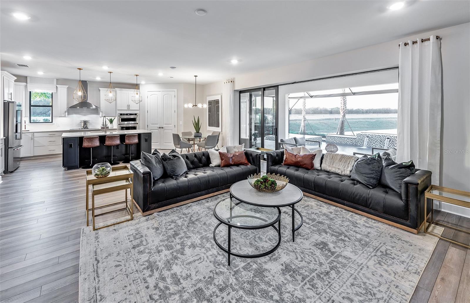 Under Construction. Move into Sapphire Point! This 1 story Easley being built is on WATER and will be completed end of April 2024, and features 3 bedrooms plus an enclosed den, 3 full baths, pocket sliding glass doors from the gathering room onto a screened-in lanai, finished laundry room with storage, built-in kitchen with walk-in pantry, plus owner's upgraded walk-in shower. Both gathering room and owner's suite will have beautiful dropped tray ceilings as well. The outdoor lanai is being set up with outdoor kitchen prep. Last but not least, this home will have plenty of room for vehicles or extra storage with the 3-car garage.