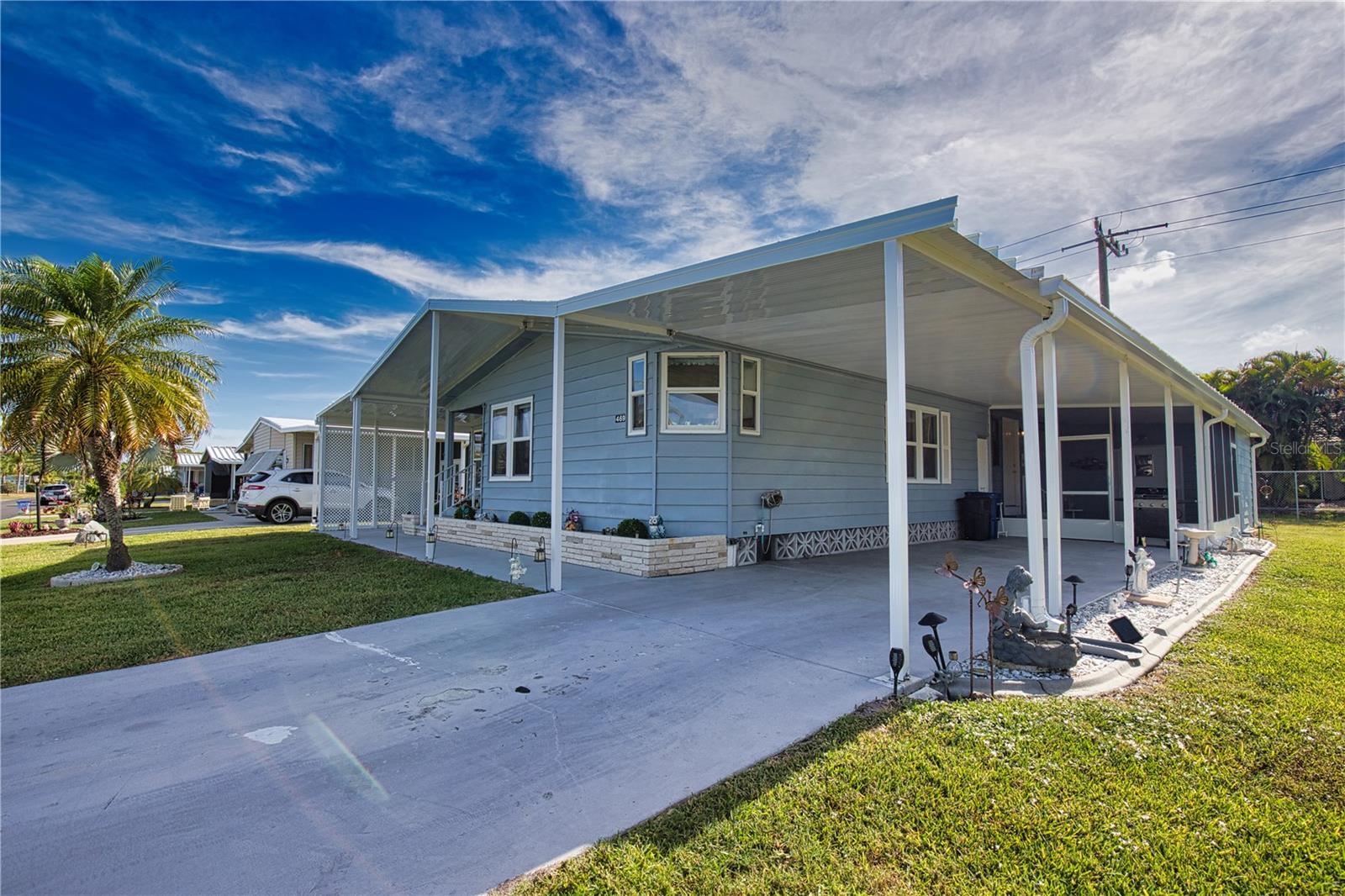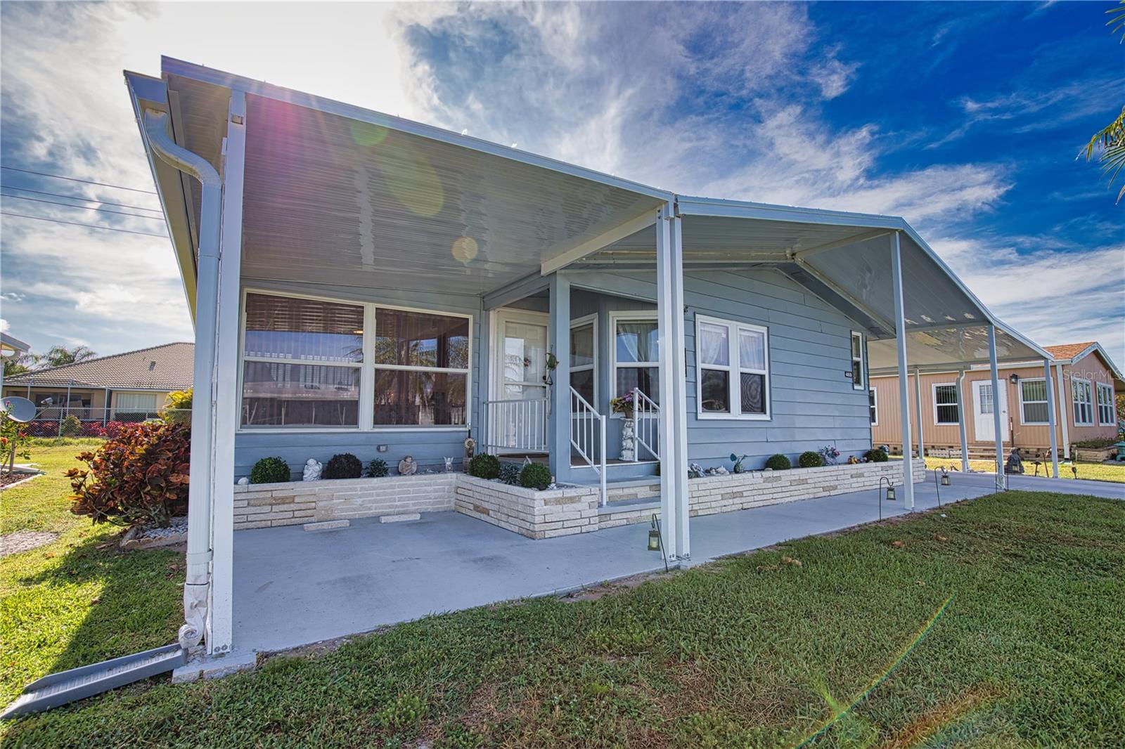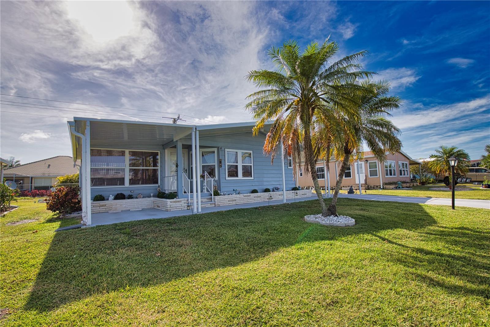 The ultimate lifestyle on Florida's Gulf Coast, located between Sarasota and Fort Myers with boat access to the Gulf. La Casa is a quiet 55+ community of 974 homes nestled among a variety of native trees. Spacious common grounds surround our eight lakes. Welcome To the Good Life! RECREATION, 2 Clubhouses, 2 Heated Pools. There is no shortage of activities in this community! Entryway w/washer, dryer, desk and skylight. Dining room w/built-in hutch and new light fixture. Remodeled kitchen w/loads of new cabinets, granite counter tops, stainless appliances and sky light. Morning room off kitchen w/table and chairs. Living room w/large-screen T.V. and door to the front porch and covered walkway opens to a glass enclosed Florida room. Guest bedroom w/ furniture and walk-in closet. Guest bath w/vanity, tub/shower, skylight. Upper and lower cabinets and linen chest located in the hall. Primary bedroom w/double walk-in closet. Primary bath w/double-sink vanity, double, walk-in closet, walk-in shower, linen chest and skylight. New windows. Vaulted ceilings throughout. Luxury laminate flooring throughout. Long carport to a screened lanai. Large 10' X 12' Utility room w/storage. New roof over the walk-way to the Florida room and golf cart covered parking spot. Many upgrades to this lovely La Casa home.
