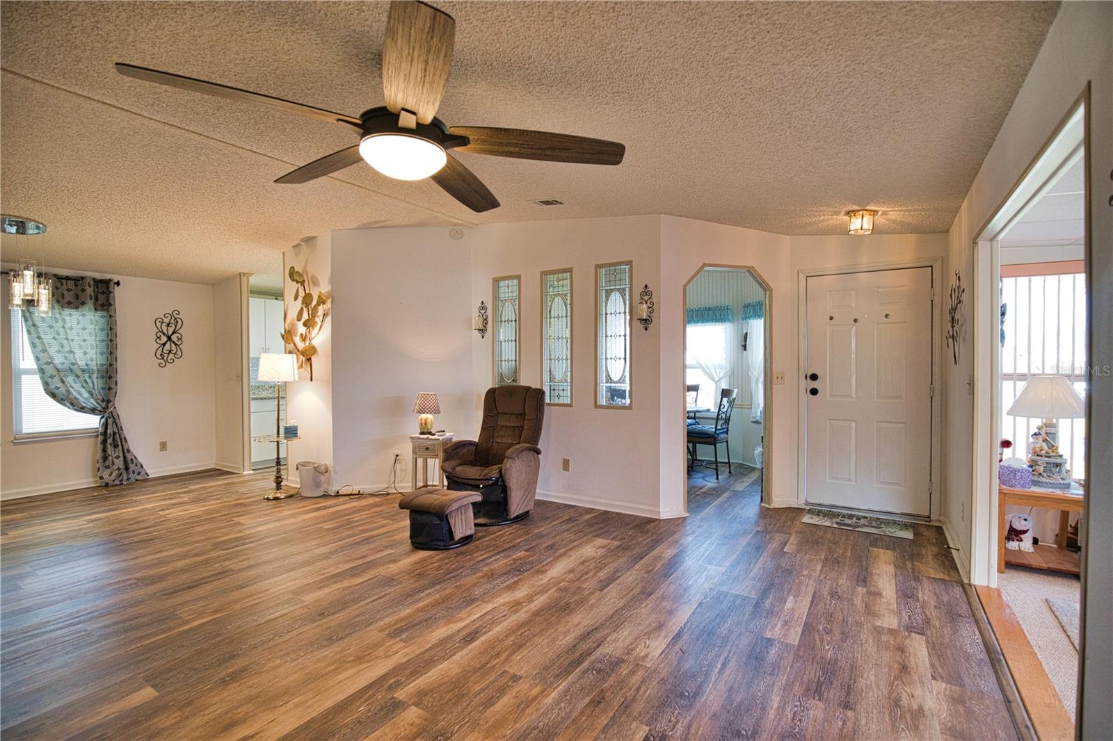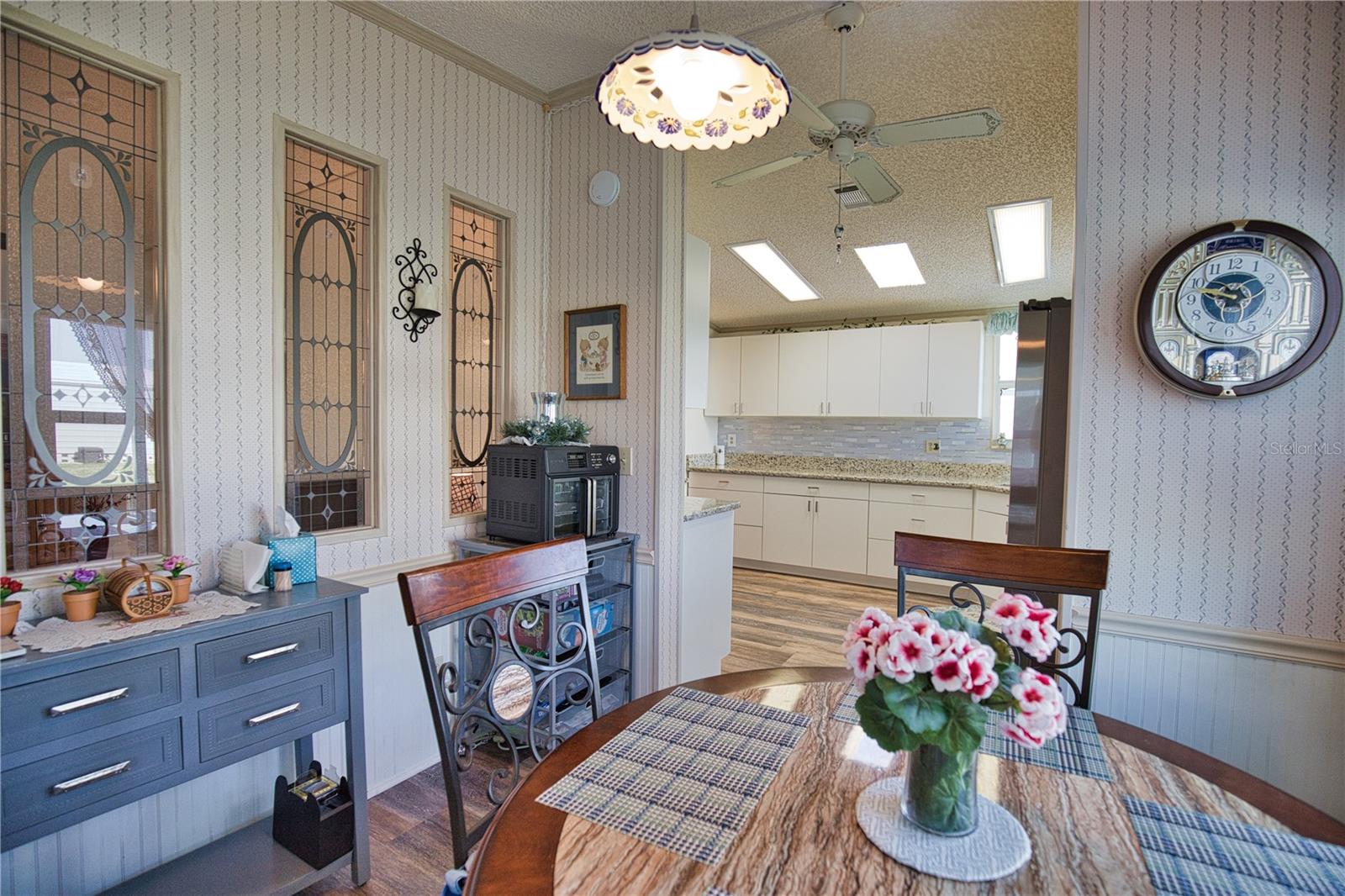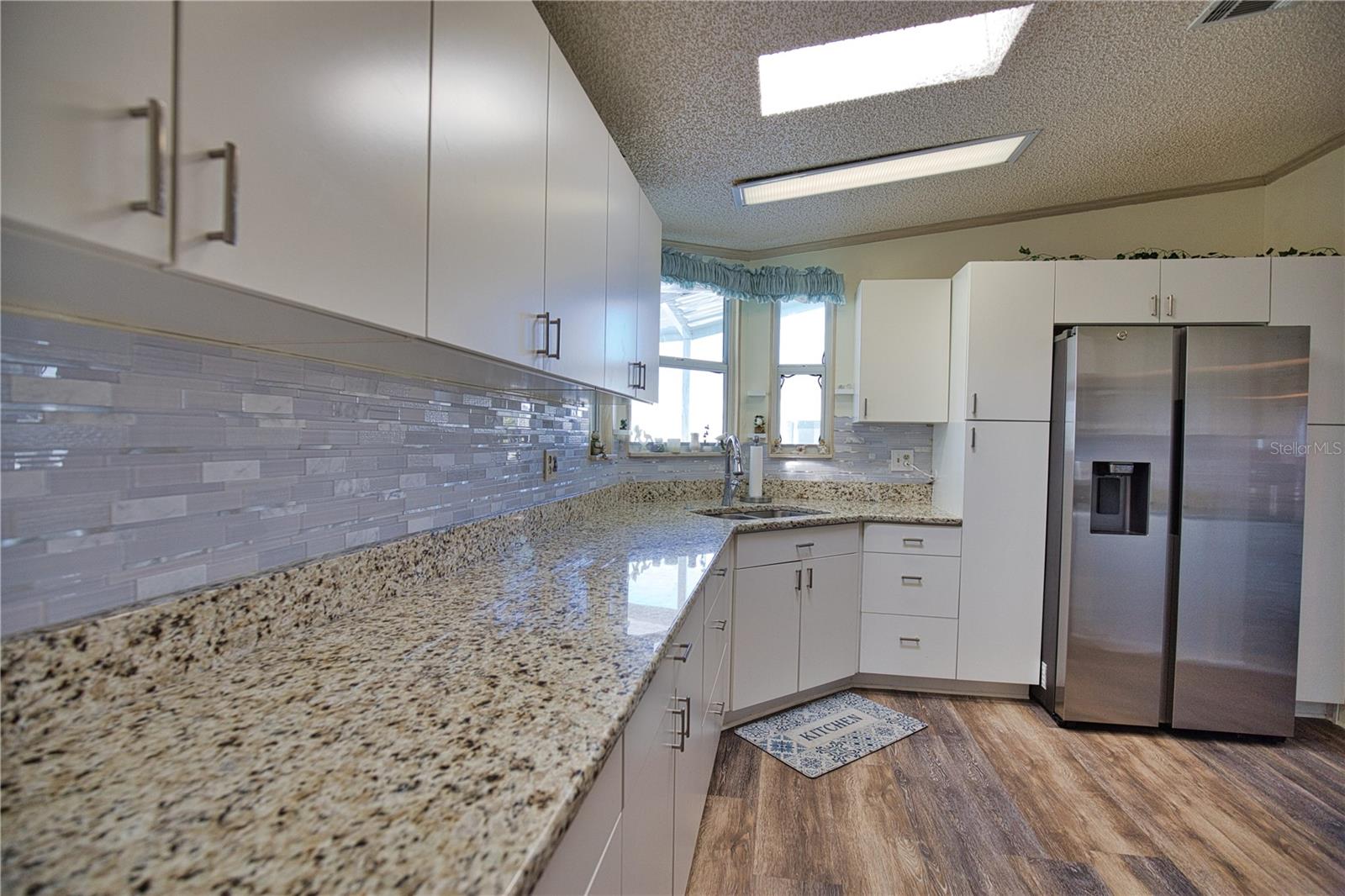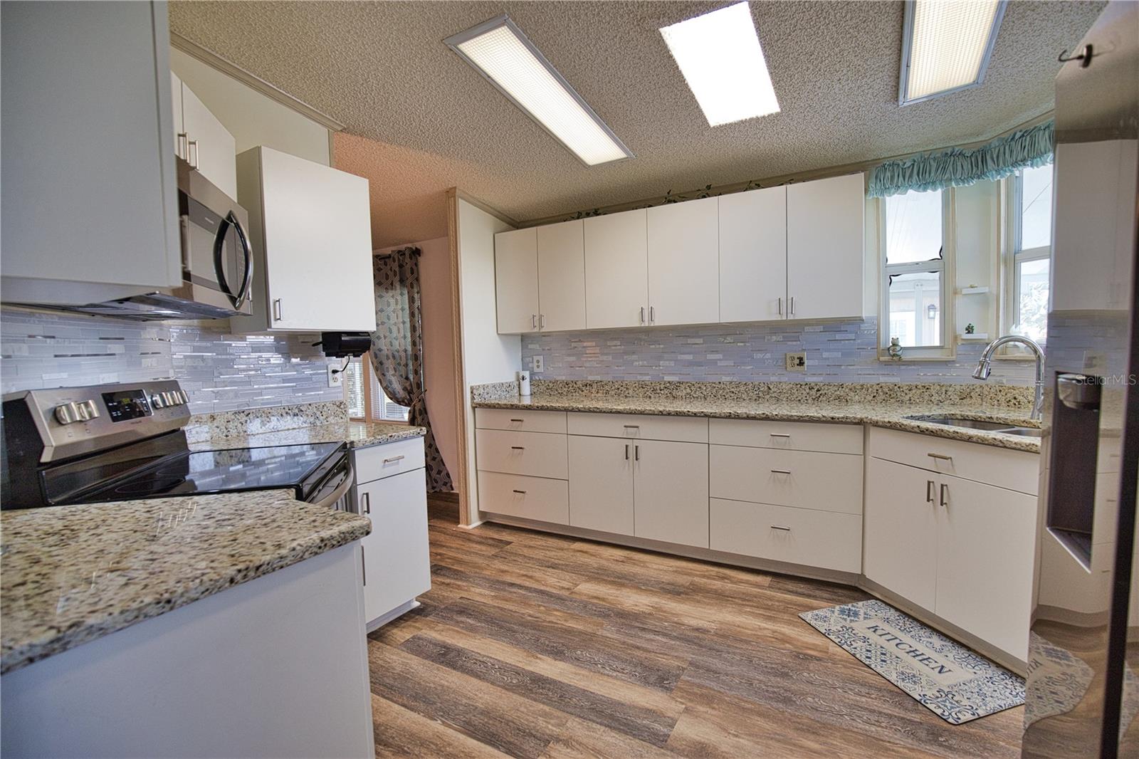 The ultimate lifestyle on Florida's Gulf Coast, located between Sarasota and Fort Myers with boat access to the Gulf. La Casa is a quiet 55+ community of 974 homes nestled among a variety of native trees. Spacious common grounds surround our eight lakes. Welcome To the Good Life! RECREATION, 2 Clubhouses, 2 Heated Pools. There is no shortage of activities in this community! Entryway w/washer, dryer, desk and skylight. Dining room w/built-in hutch and new light fixture. Remodeled kitchen w/loads of new cabinets, granite counter tops, stainless appliances and sky light. Morning room off kitchen w/table and chairs. Living room w/large-screen T.V. and door to the front porch and covered walkway opens to a glass enclosed Florida room. Guest bedroom w/ furniture and walk-in closet. Guest bath w/vanity, tub/shower, skylight. Upper and lower cabinets and linen chest located in the hall. Primary bedroom w/double walk-in closet. Primary bath w/double-sink vanity, double, walk-in closet, walk-in shower, linen chest and skylight. New windows. Vaulted ceilings throughout. Luxury laminate flooring throughout. Long carport to a screened lanai. Large 10' X 12' Utility room w/storage. New roof over the walk-way to the Florida room and golf cart covered parking spot. Many upgrades to this lovely La Casa home.