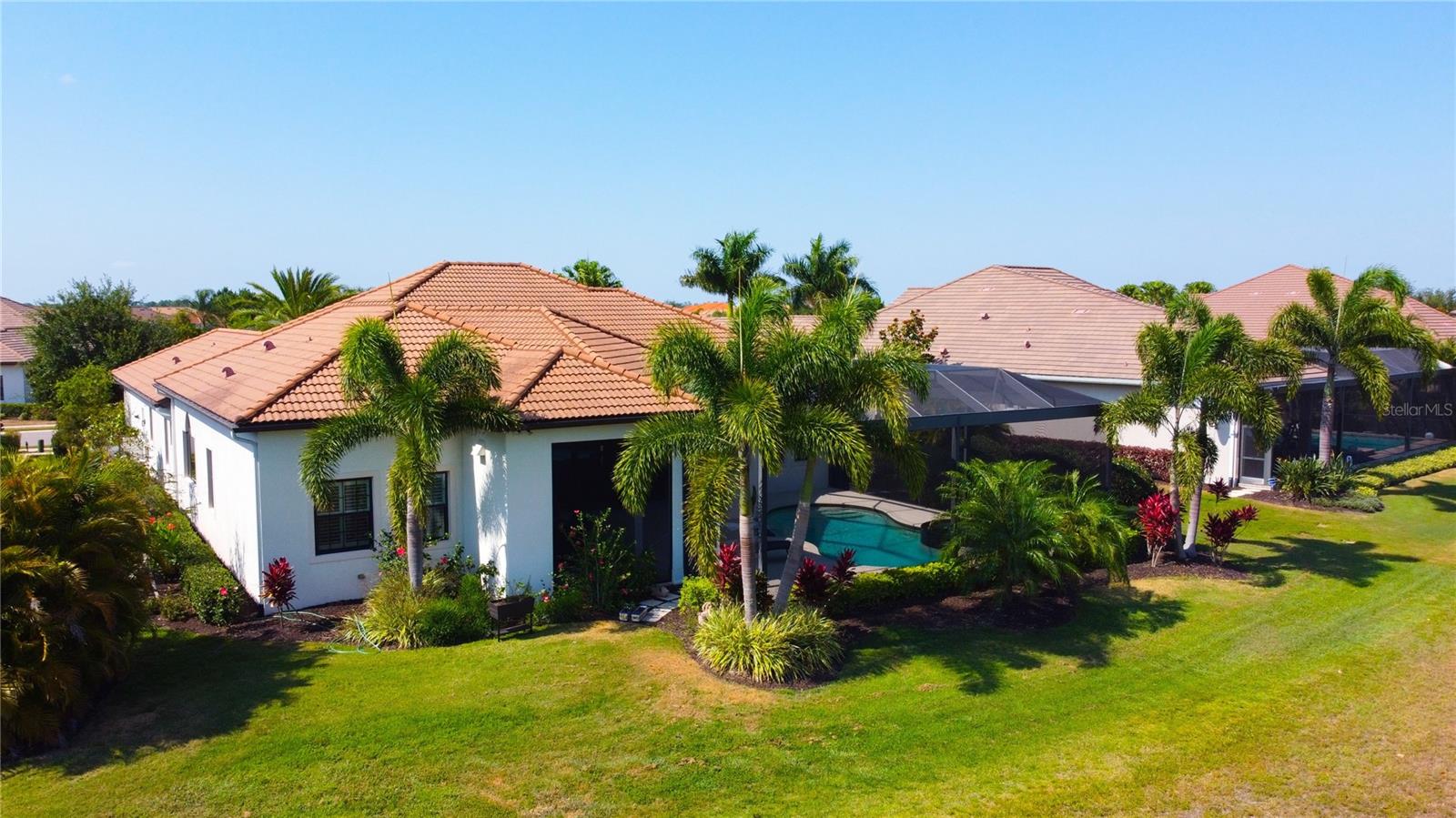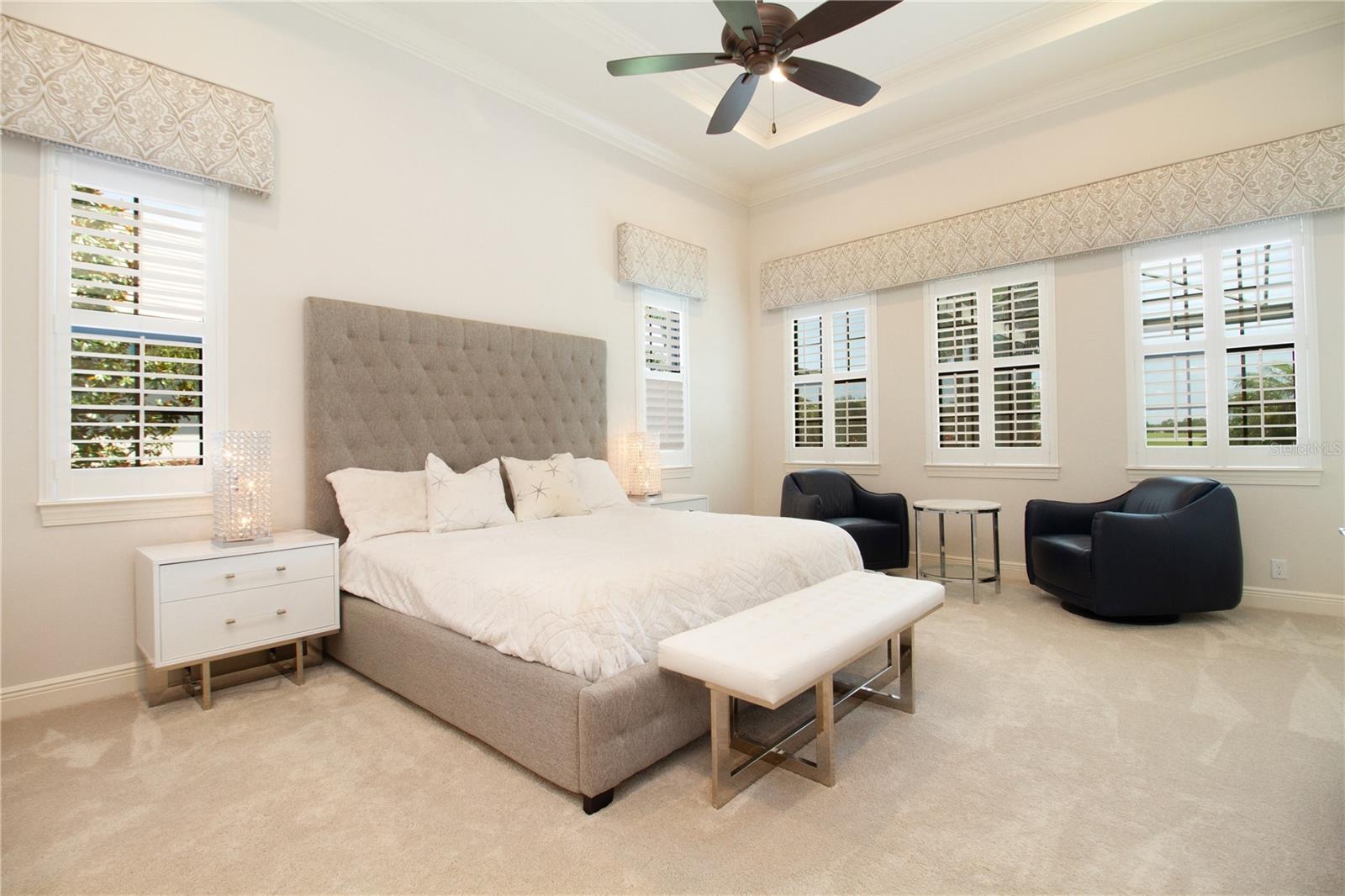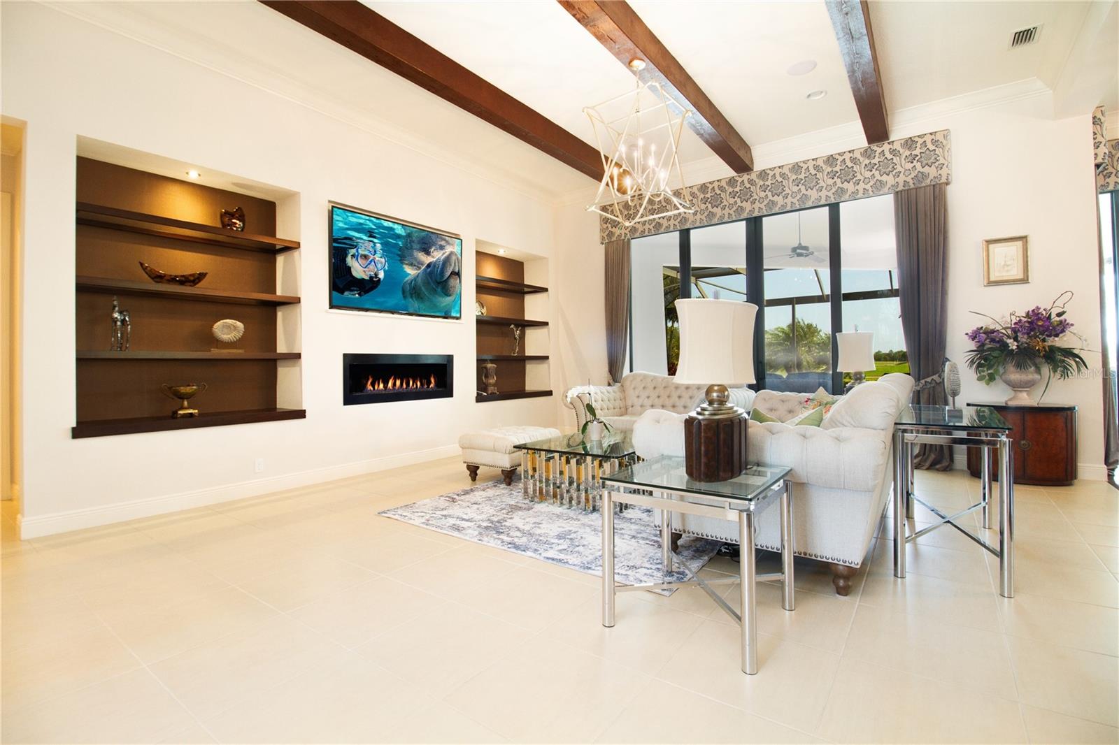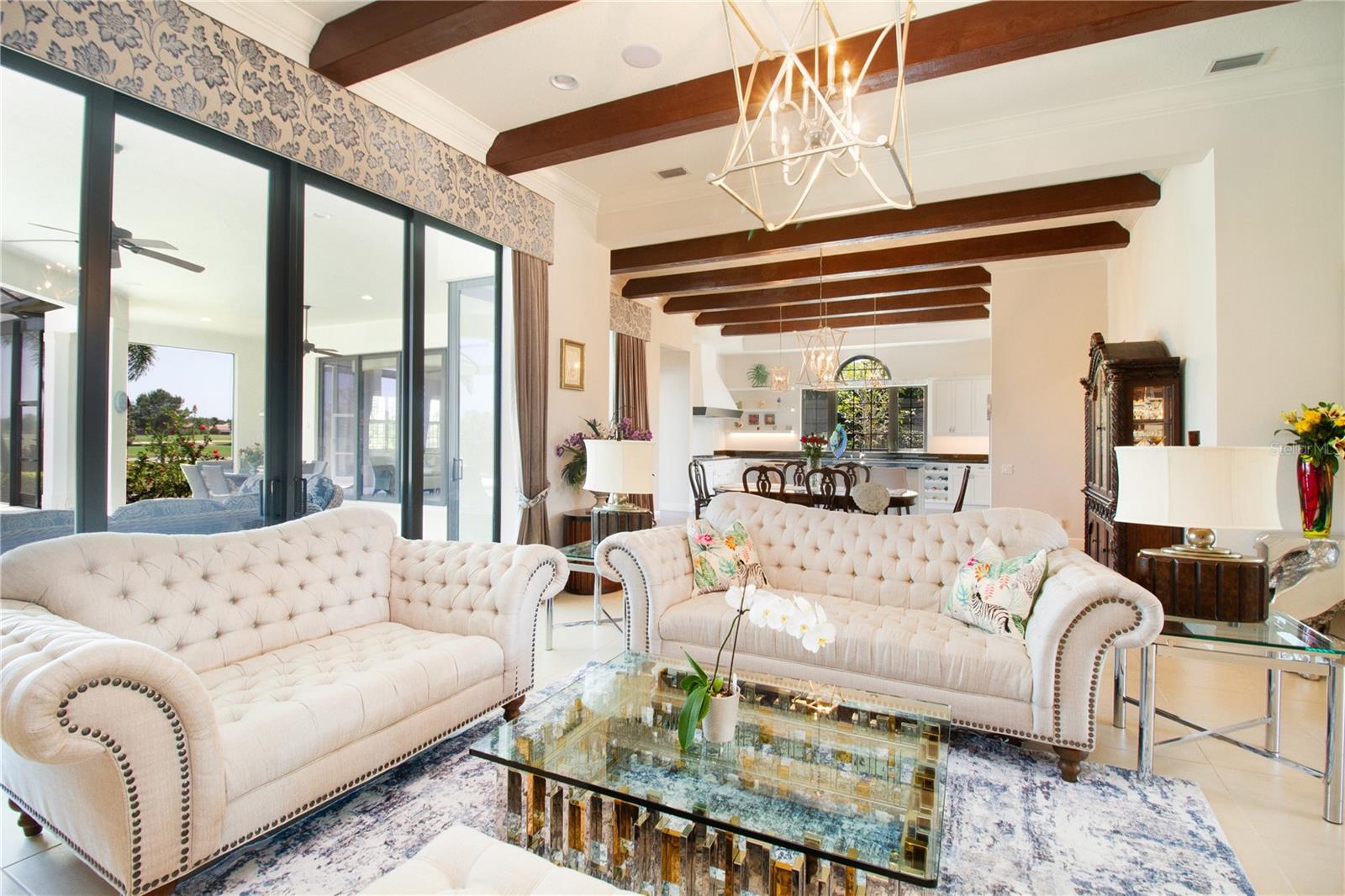 PRICE REDUCE. Discover this stunning custom home featuring 3 bedrooms,3 and half bathrooms,a bonus room, and an office.Built by John Cannon .Located in the beautiful enclave of a gated community of Country Club East.This elegant residence boasts magnificent arched double iron-glass front doors that define the entry.The Open living space showcases 12-foot beamed ceilings and gas fireplace. A gourmet chef's kitchen is equipped with custom cabinets, granite counter tops,top-of-the-line "Viking" appliances and walk-in pantry. A massive island provides ample space for entertainment. The large bonus room offers flexible space for media and entertainment,while the spacious office adds functionality.The master bedroom suite features a generous layout, sitting area, and dual walk-in closets.The Luxurious master bathroom includes a double sink vanity, free-standing modern bathtub, and a spacious walk-in shower with frameless glass enclosure. Custom plantation shutters and custom window treatments adorn the entire house.An impressive outdoor view of the golf course and lake greets residents.The oversize screened lanai features a heated saltwater pool and spa.An outdoor kitchen boasts a stainless steel grill , sink, and extractor fan,all overlooking a tropical oasis. Additional features include a spacious laundry room with ample cabinet space. Over sized three-car garage. Residents of this exceptional estate also enjoy access to amenities including three pools, a fitness center, and a clubhouse. Optional membership to the Lakewood Ranch Country Club is available.The property is zoned for A-rated schools and is in close proximity to shopping, dining, and world-class beaches. Seize this opportunity to experience this upscale living.