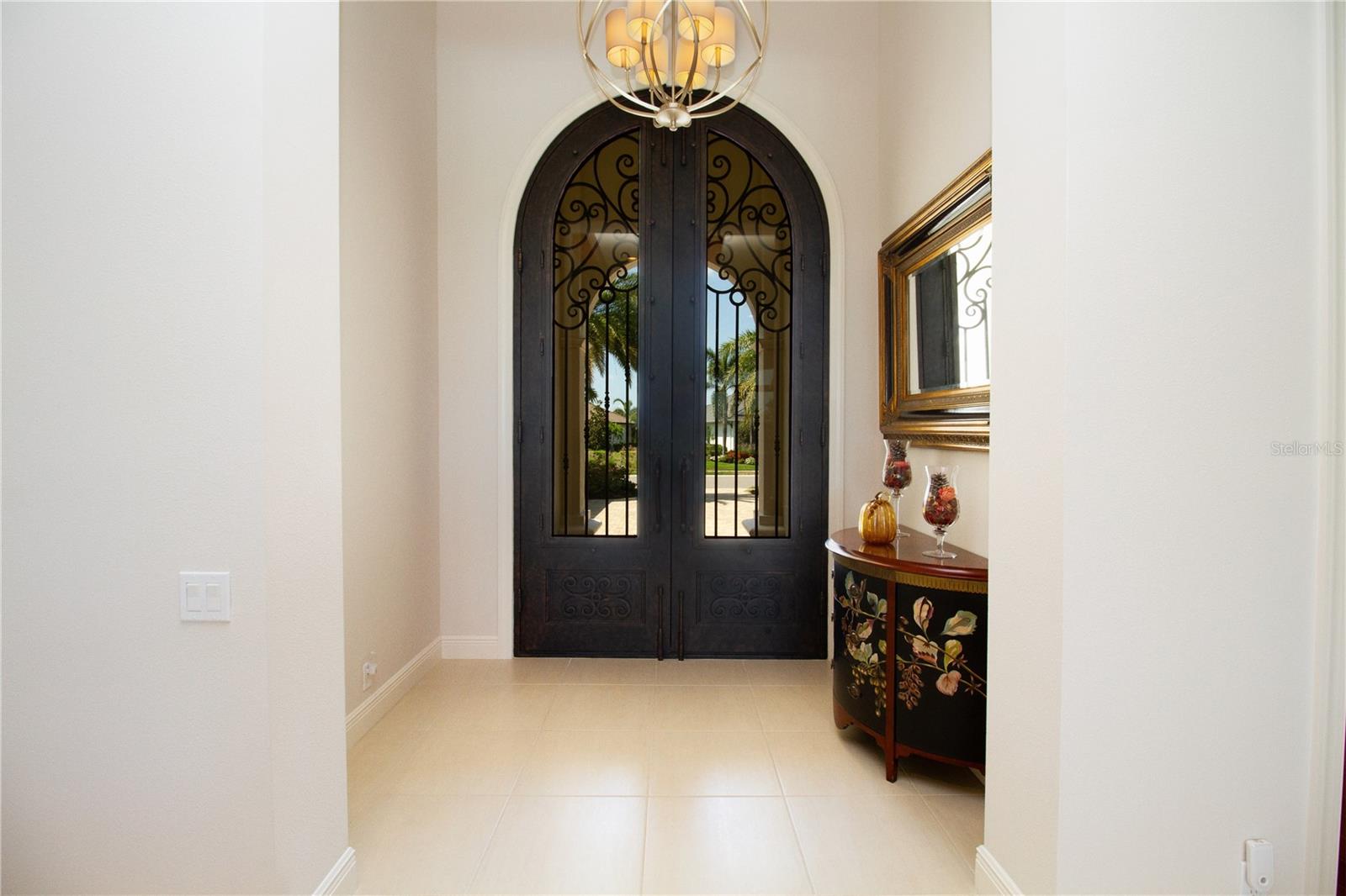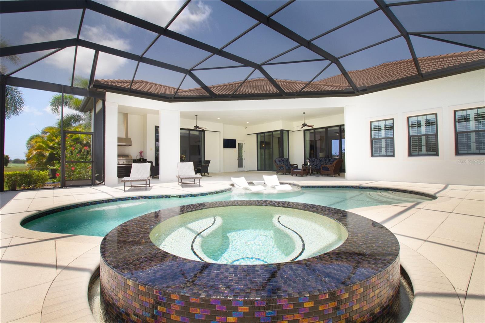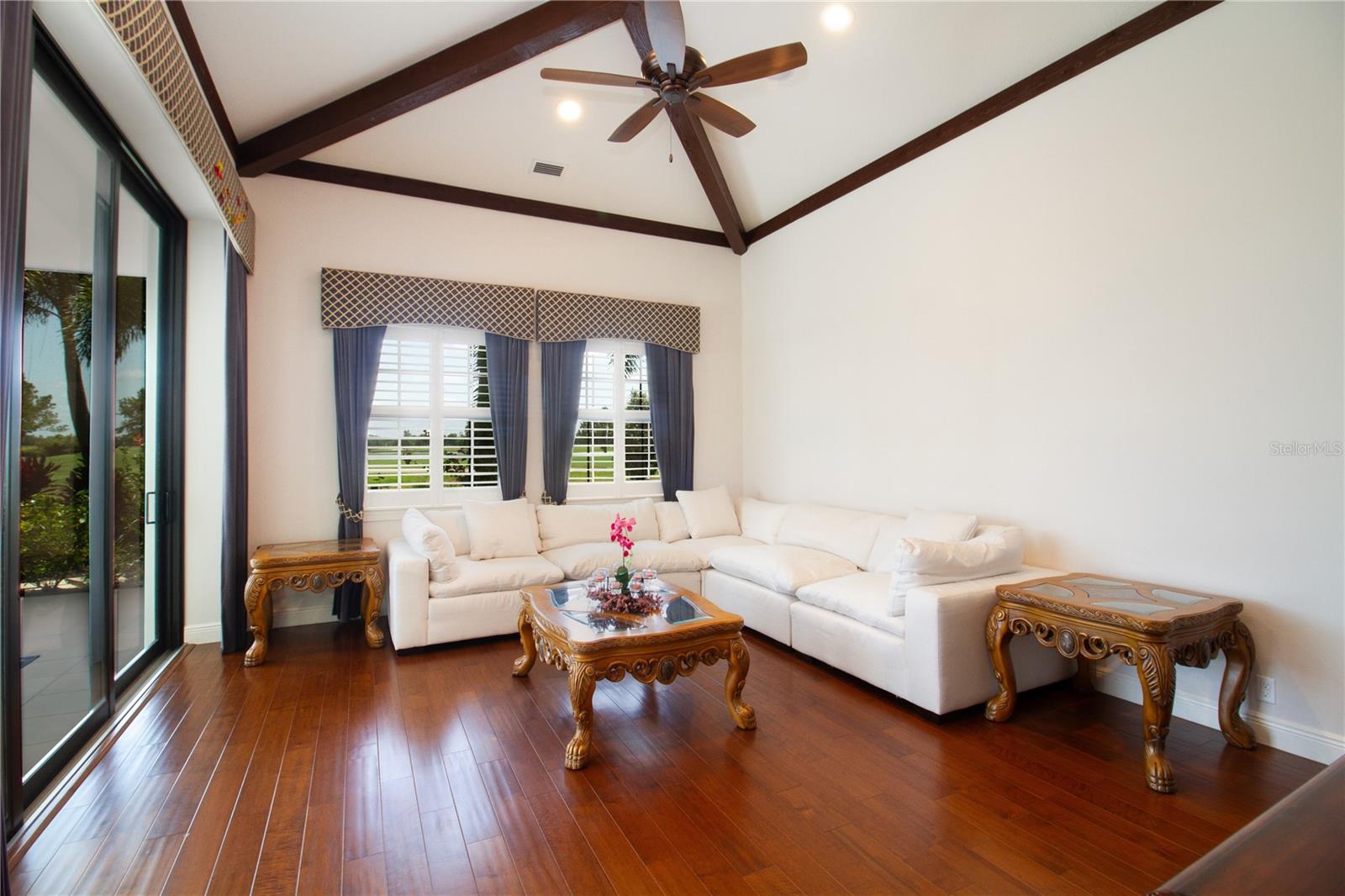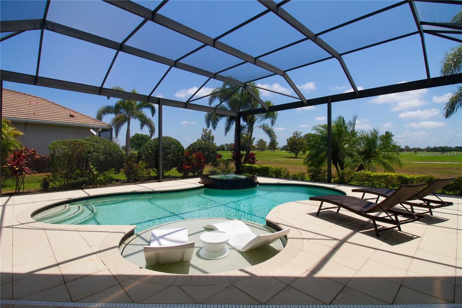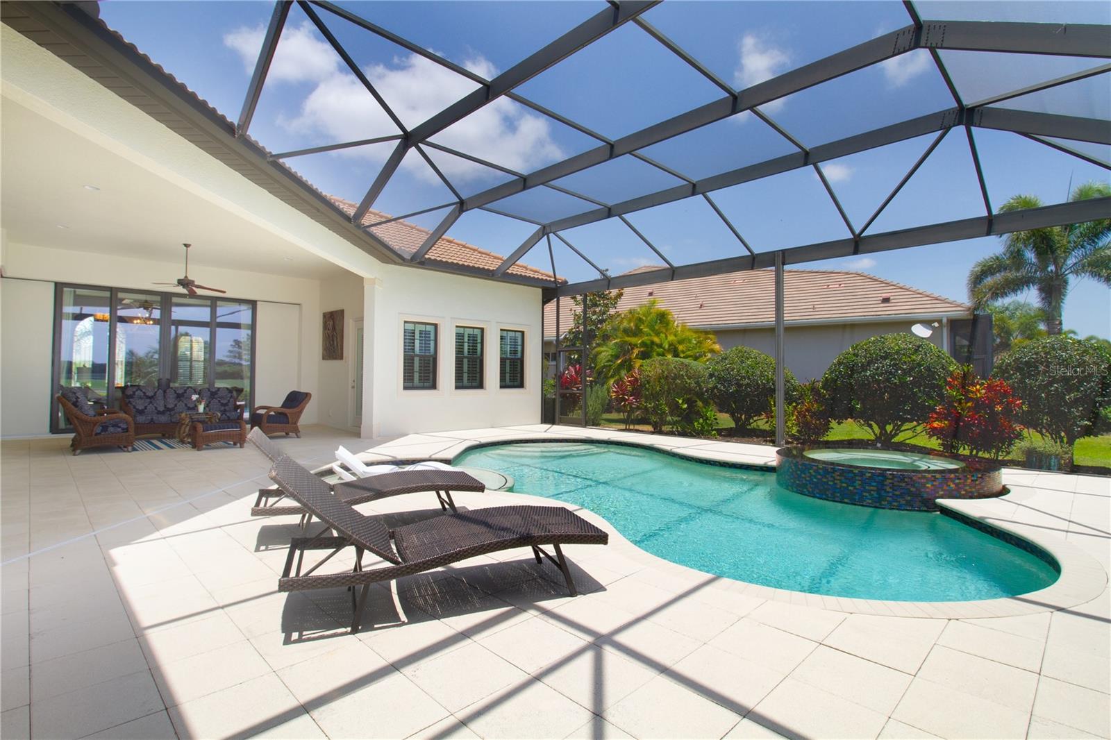 PRICE REDUCE. Discover this stunning custom home featuring 3 bedrooms,3 and half bathrooms,a bonus room, and an office.Built by John Cannon .Located in the beautiful enclave of a gated community of Country Club East.This elegant residence boasts magnificent arched double iron-glass front doors that define the entry.The Open living space showcases 12-foot beamed ceilings and gas fireplace. A gourmet chef's kitchen is equipped with custom cabinets, granite counter tops,top-of-the-line "Viking" appliances and walk-in pantry. A massive island provides ample space for entertainment. The large bonus room offers flexible space for media and entertainment,while the spacious office adds functionality.The master bedroom suite features a generous layout, sitting area, and dual walk-in closets.The Luxurious master bathroom includes a double sink vanity, free-standing modern bathtub, and a spacious walk-in shower with frameless glass enclosure. Custom plantation shutters and custom window treatments adorn the entire house.An impressive outdoor view of the golf course and lake greets residents.The oversize screened lanai features a heated saltwater pool and spa.An outdoor kitchen boasts a stainless steel grill , sink, and extractor fan,all overlooking a tropical oasis. Additional features include a spacious laundry room with ample cabinet space. Over sized three-car garage. Residents of this exceptional estate also enjoy access to amenities including three pools, a fitness center, and a clubhouse. Optional membership to the Lakewood Ranch Country Club is available.The property is zoned for A-rated schools and is in close proximity to shopping, dining, and world-class beaches. Seize this opportunity to experience this upscale living.