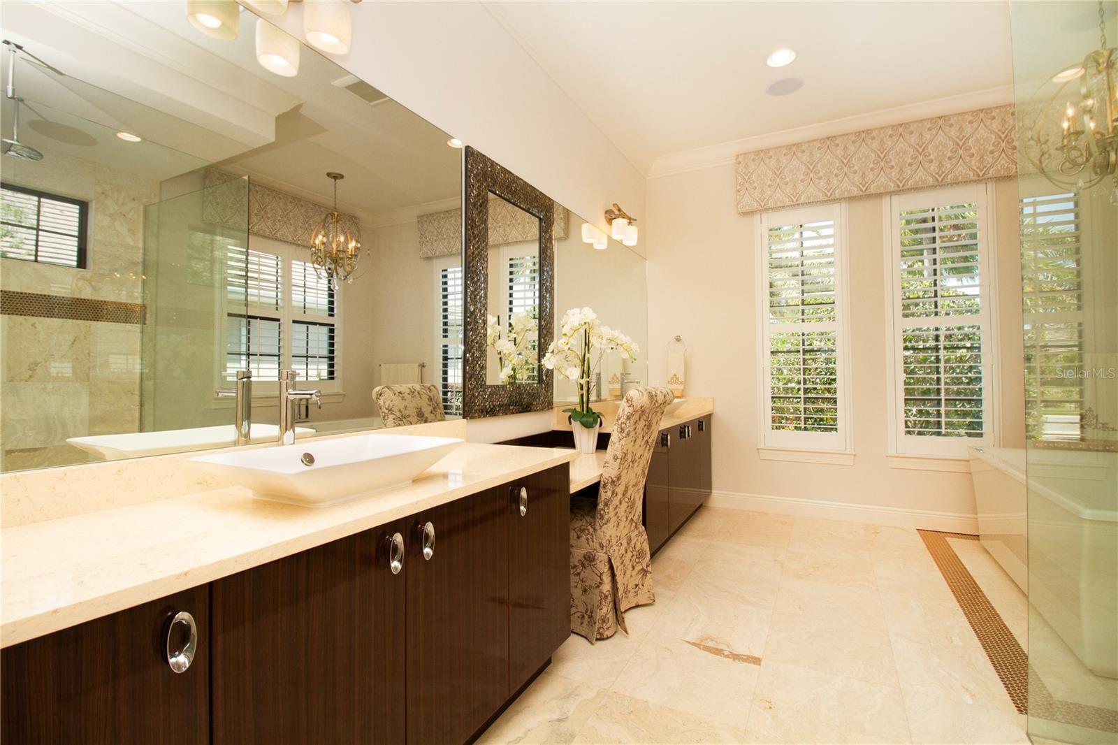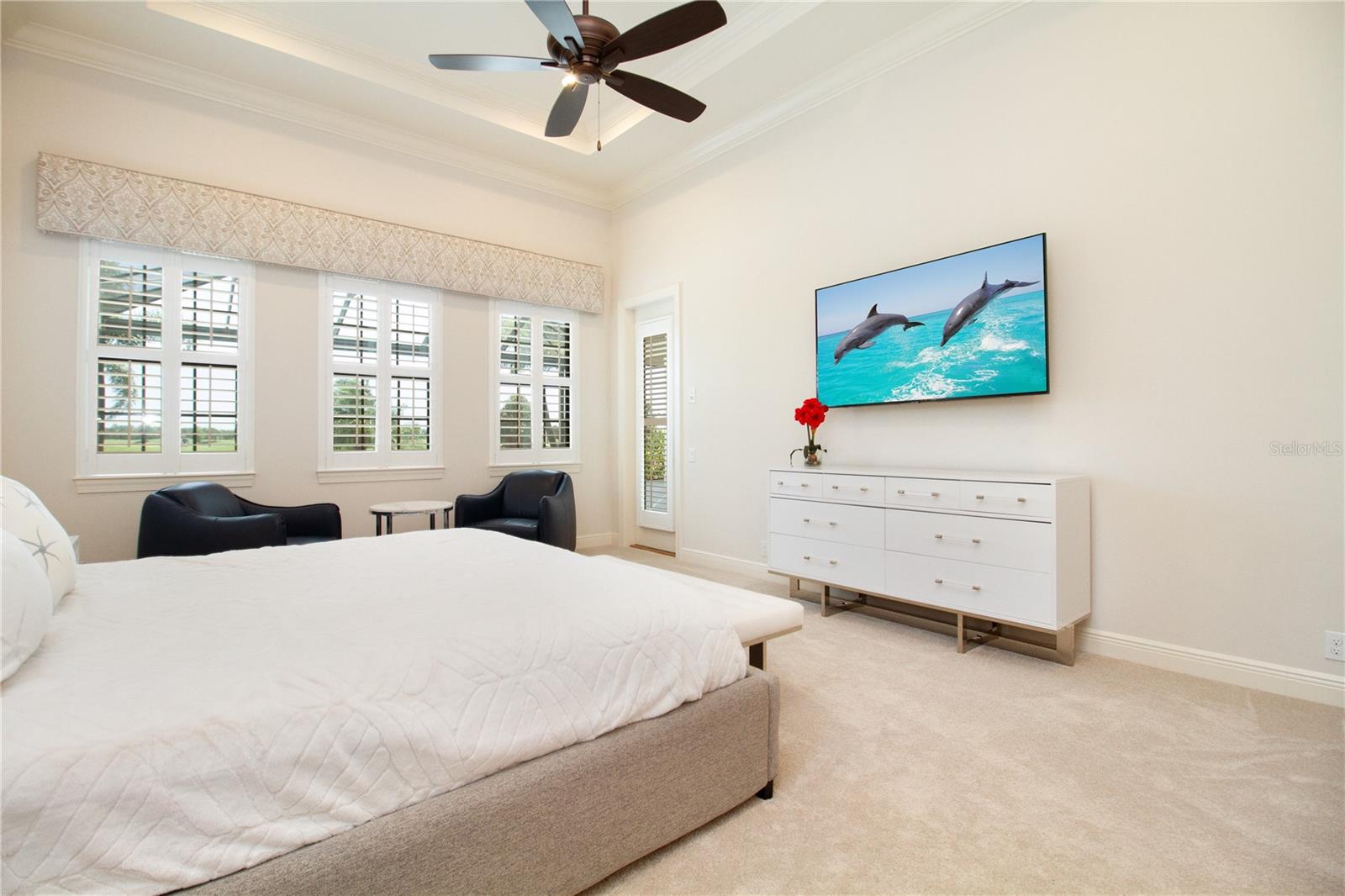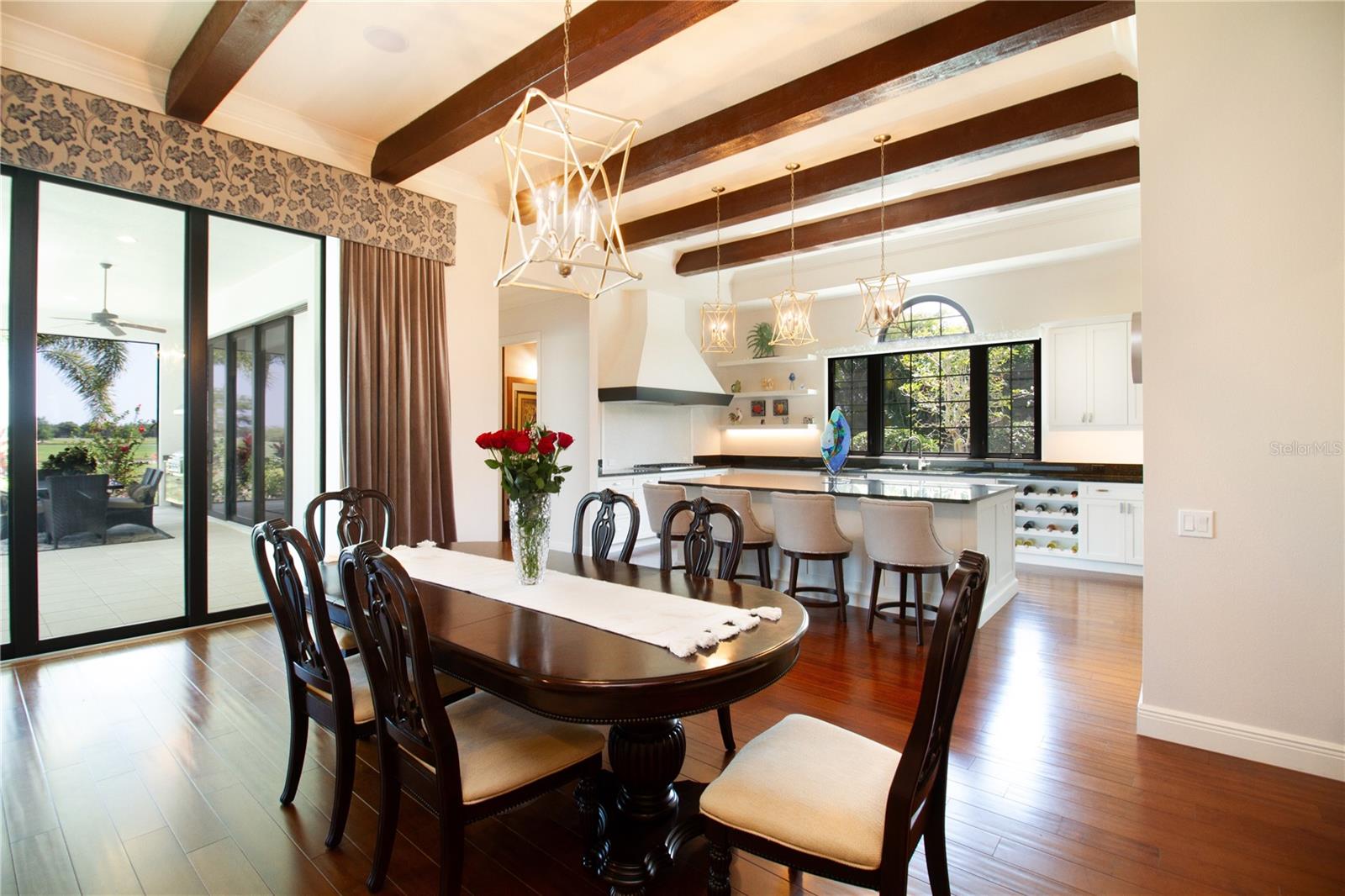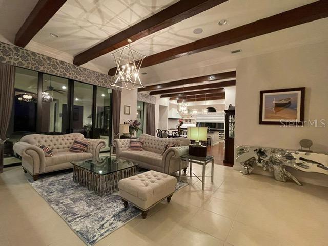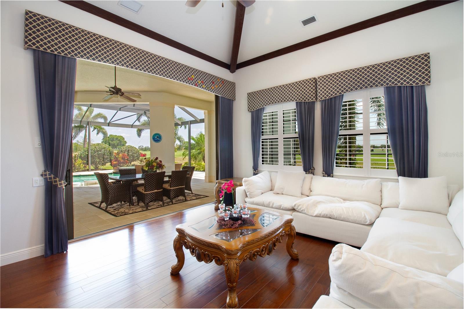 PRICE REDUCE. Discover this stunning custom home featuring 3 bedrooms,3 and half bathrooms,a bonus room, and an office.Built by John Cannon .Located in the beautiful enclave of a gated community of Country Club East.This elegant residence boasts magnificent arched double iron-glass front doors that define the entry.The Open living space showcases 12-foot beamed ceilings and gas fireplace. A gourmet chef's kitchen is equipped with custom cabinets, granite counter tops,top-of-the-line "Viking" appliances and walk-in pantry. A massive island provides ample space for entertainment. The large bonus room offers flexible space for media and entertainment,while the spacious office adds functionality.The master bedroom suite features a generous layout, sitting area, and dual walk-in closets.The Luxurious master bathroom includes a double sink vanity, free-standing modern bathtub, and a spacious walk-in shower with frameless glass enclosure. Custom plantation shutters and custom window treatments adorn the entire house.An impressive outdoor view of the golf course and lake greets residents.The oversize screened lanai features a heated saltwater pool and spa.An outdoor kitchen boasts a stainless steel grill , sink, and extractor fan,all overlooking a tropical oasis. Additional features include a spacious laundry room with ample cabinet space. Over sized three-car garage. Residents of this exceptional estate also enjoy access to amenities including three pools, a fitness center, and a clubhouse. Optional membership to the Lakewood Ranch Country Club is available.The property is zoned for A-rated schools and is in close proximity to shopping, dining, and world-class beaches. Seize this opportunity to experience this upscale living.