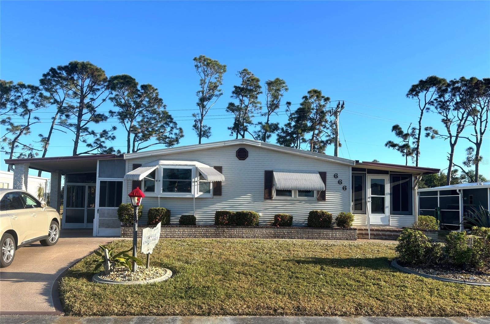 This charming home with stunning landscaping is nestled against 40 acres of untouched land in a vibrant 55+ community. This home features a custom-made wheelchair ramp for easy accessibility from the driveway through the spacious lanai and into the home. The kitchen / dining room / living room combination open to a large Florida Room that is under air and is perfect for entertaining friends and family. There are wood beams on the ceiling and luxury vinyl throughout for added touches. Both bedrooms and bathrooms are substantial in size with the washer/dryer located in the guest closet for added convenience. This is a must-see and is located in the pet area so your furry friend will enjoy paradise too! This is the perfect house to update, make your own, and live the Florida dream! New roof 2022. La Casa boasts 974 homes nestled among a variety of native trees with spacious common grounds surrounding our eight lakes. Our lots average a generous 60' by 80'. The ultimate lifestyle on Florida's Gulf Coast is located between Sarasota and Fort Myers and is a boater's dream with access to the Gulf of Mexico. It is convenient for shopping, sightseeing, golfing, fishing, and boating, as well as all the culture and elegance the Southwest Florida area is noted for. Residents and visitors enjoy the warmth of Southwest Florida winters in a relaxed and unhurried environment far removed from the hustle of Florida's east coast. You'll be surrounded by mature lush landscaping which demonstrates the utmost level of care our property receives from residents and management. La Casa may have the best pools in the area. Our crown jewel is an extremely large, 40 X 60-foot swimming pool that is kept at a perfect 87 degrees. Our smaller 20 x 40 pool is quietly nestled between the clubhouse and the Activity Building. Both pools have adjacent hot tubs which are ideal for soaking muscles that are tired from golfing or tennis. Wireless Internet (Wi-Fi) is available at the Clubhouse, Activity Building, and Recreation Hall area where these pools & spas are located, so you can catch some rays while you catch up on your email! Sound enticing? La Casa is a friendly, family community. You will be away from the hustle and bustle except when you want to be part of it. Come for a visit to this self-contained oasis and see for yourself why La Casa is the ultimate destination for both snowbirds and year-round residents!