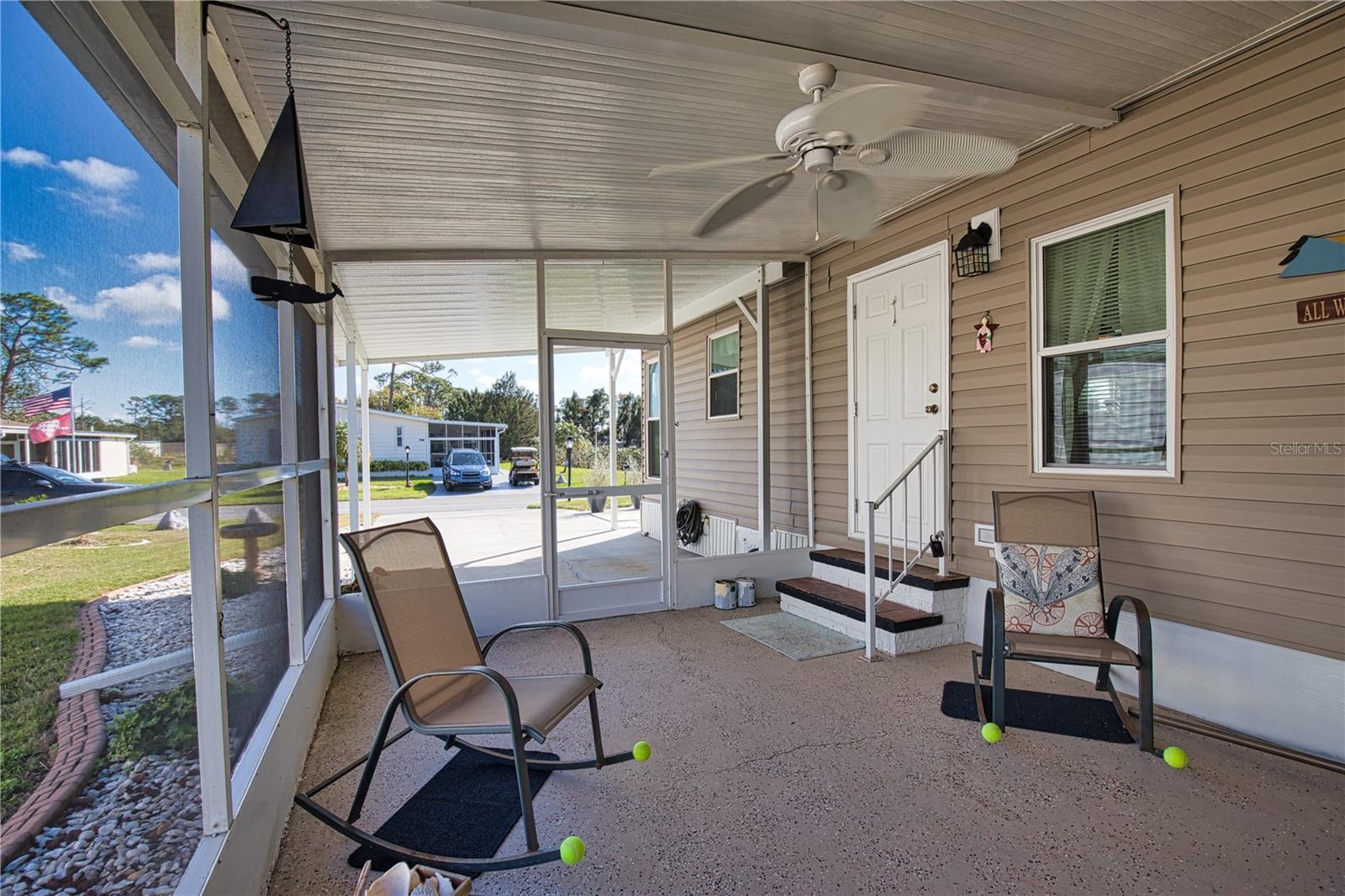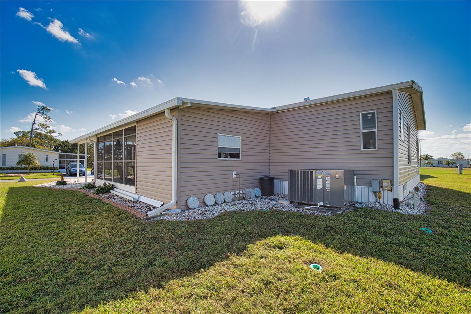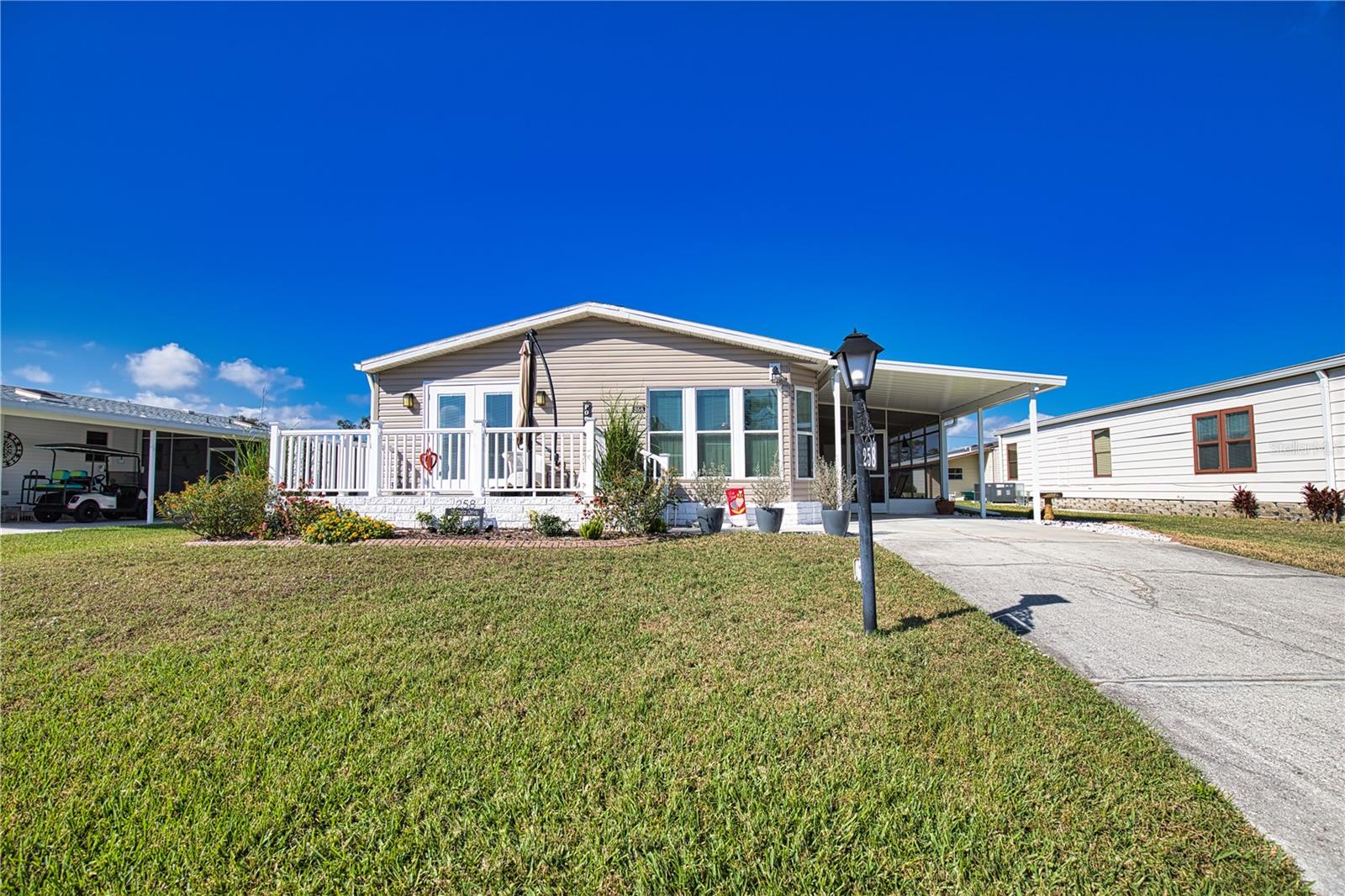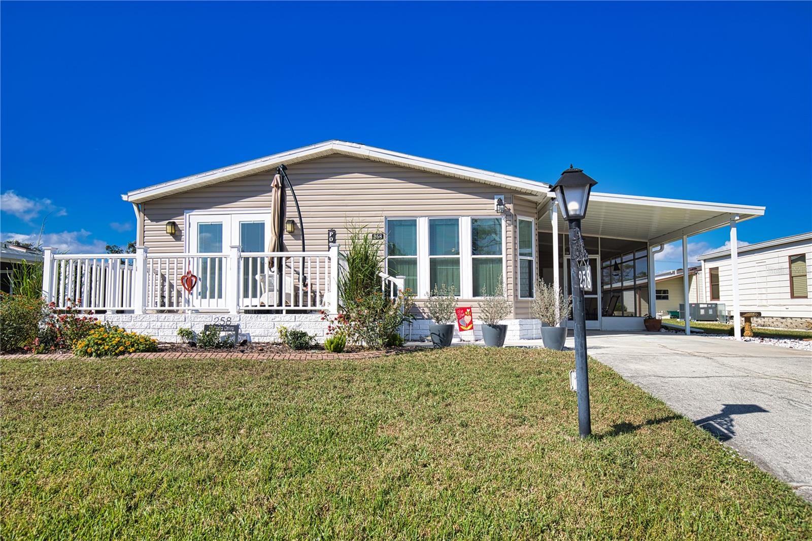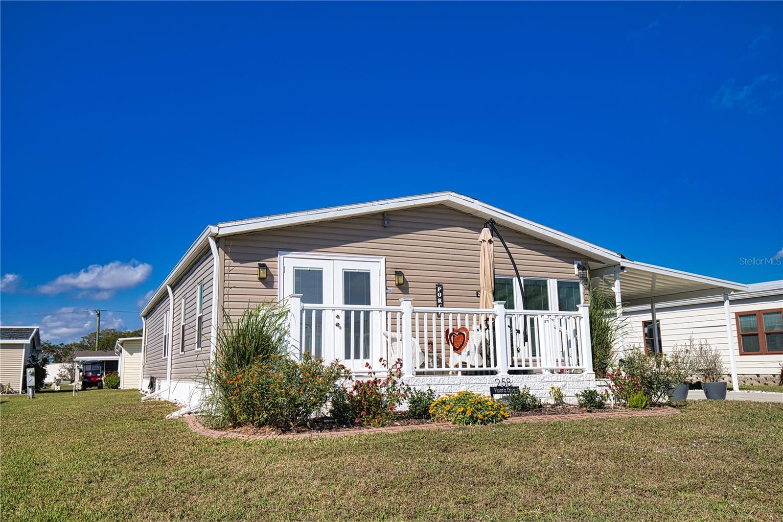 Look no further for your Florida Dream Home! This charming 2 bedroom, 2 bath house is located on a quiet street in a vibrant 55+ community. Enjoy your morning coffee or evening beverage on the front porch overlooking a small pond. On windy days you canenjoy the outdoors from the comfort of your lanai. Inside the home is bright and airy with lots of natural light. The eat-in kitchen has been beautifully updated with quartz countertops, glass backsplash and solid wood cabinets. This connects to the dining room which flows into the living room. Entertaining friends and family will be a breeze in this home. In addition to the living space, you'll find a bonus room currently utilized as an office. The bonus room, with washer/dryer hook-ups, could also be converted to a laundry room for convenience. The primary bedroom is extremely spacious with a completely updated ensuite bathroom featuring double sinks, a new soaking tub, and a new walk-in shower. New A/C 20211, A/C duct cleaned and sealed in 2023, new roof 2023, skylights 2023, new vapor barrier 2023, new high impact front doors 2024, new vinyl siding 2024. Home is being offered partially furnished. La Casa boasts 974 home sites nestled among a variety of native trees with spacious common grounds surrounding our eight lakes and offers the ultimate lifestyle on Florida's Gulf Coast. You'll be surrounded by hundreds of palms reaching for the sky and beautiful mature lush landscaping which demonstrates the utmost level of care our property receives from residents and management. La Casa is a friendly, family community. You will be away from the hustle and bustle except when you want to be part of it. When you leave our gates, North Port is only 1.5 miles from the city center, where you will find every kind of retail store and service you could need. Come for a visit to this self-contained oasis and see for yourself why La Casa is the ultimate destination for both snowbirds and year-round.
