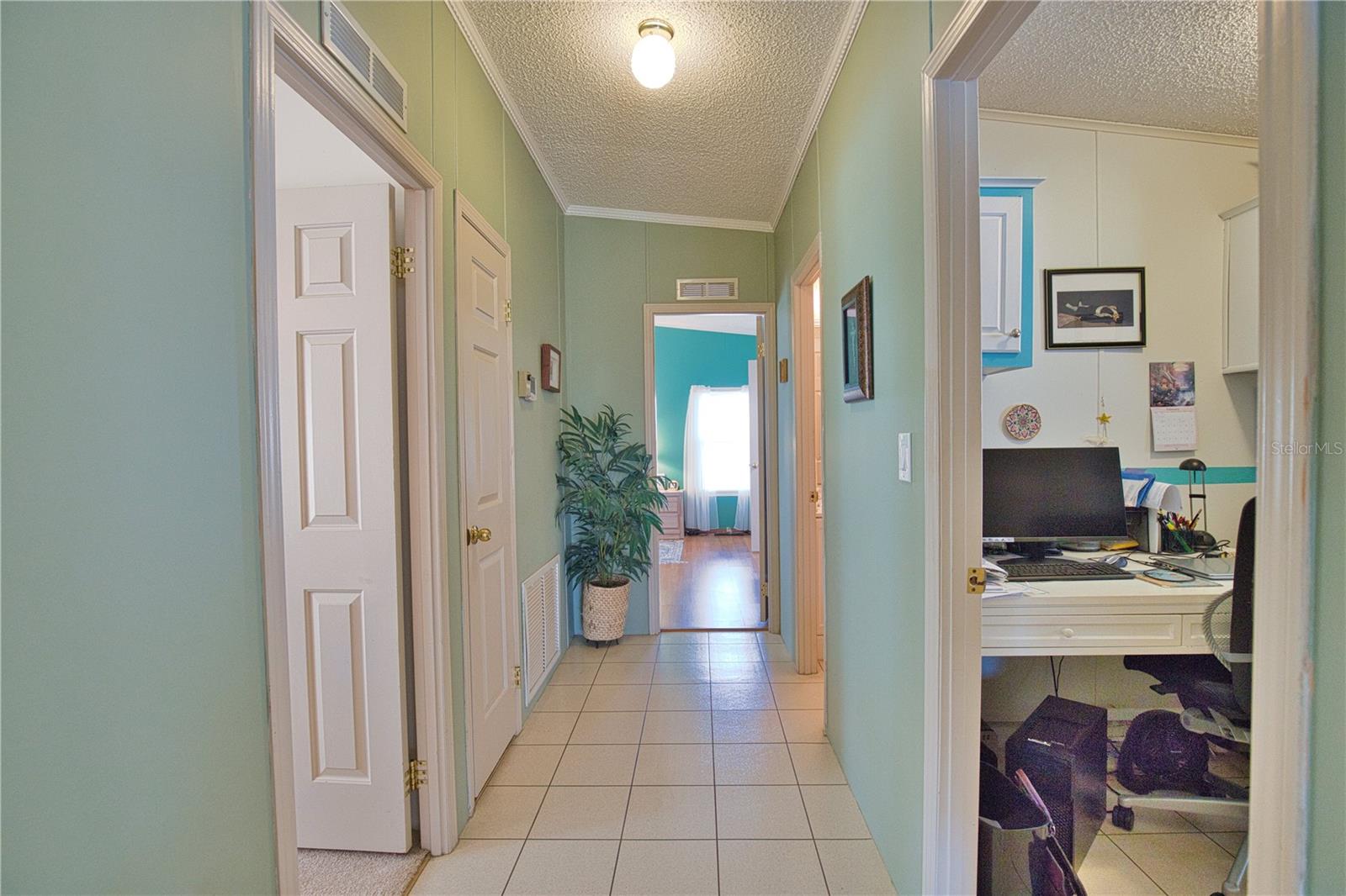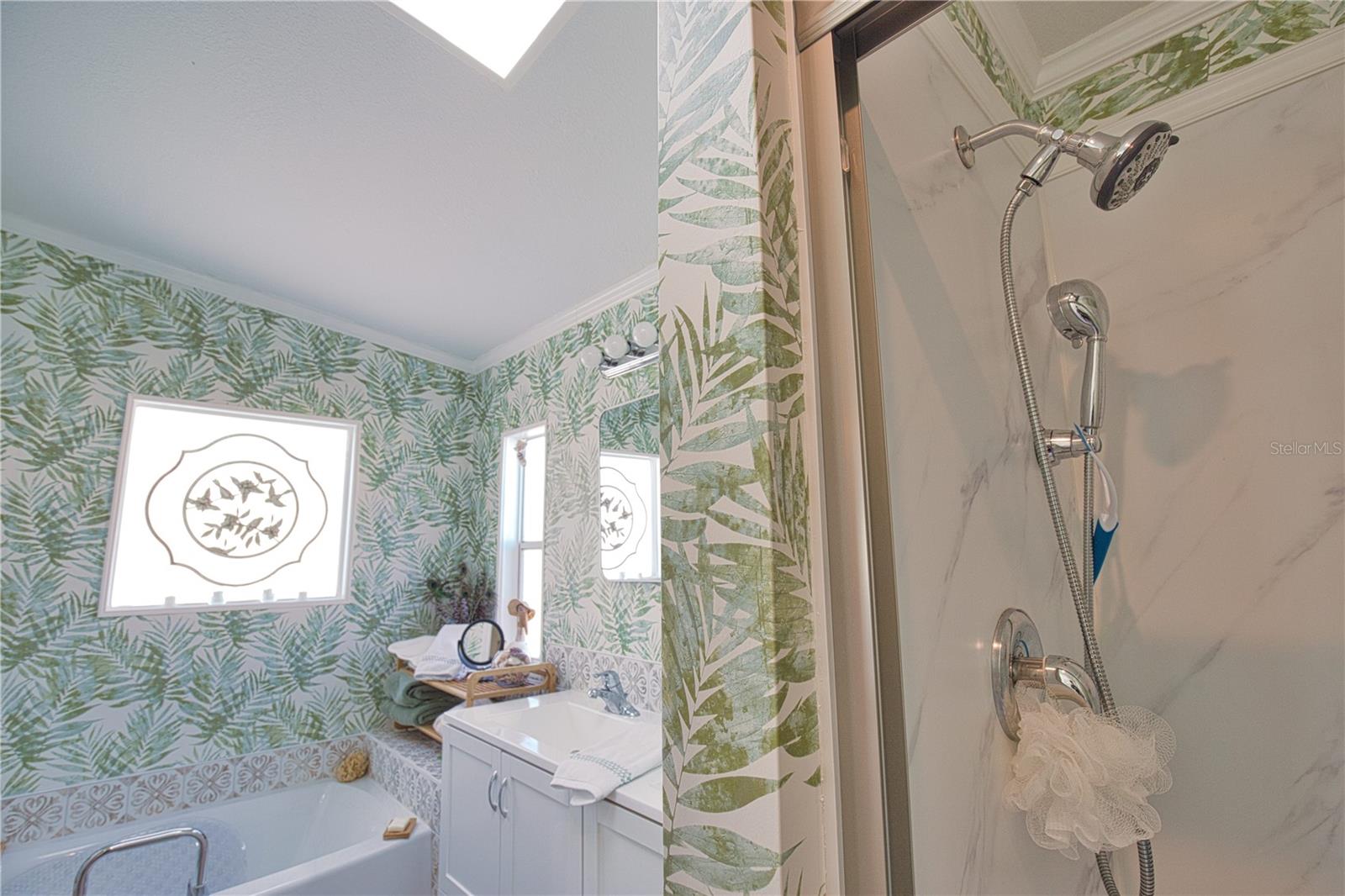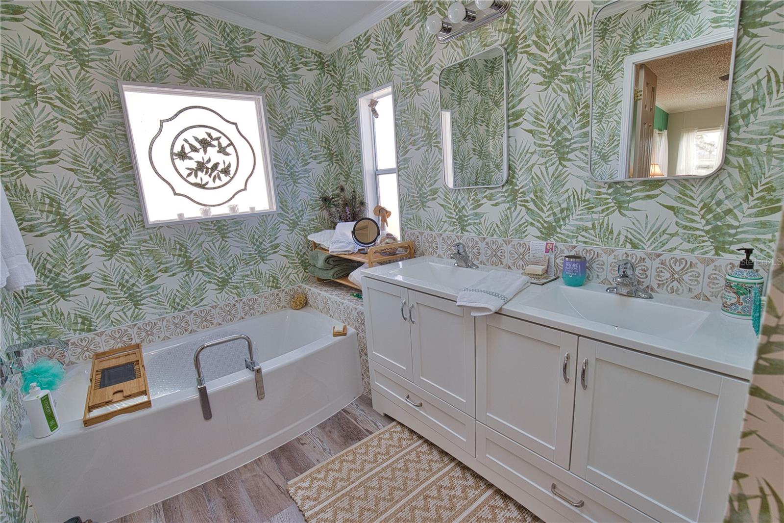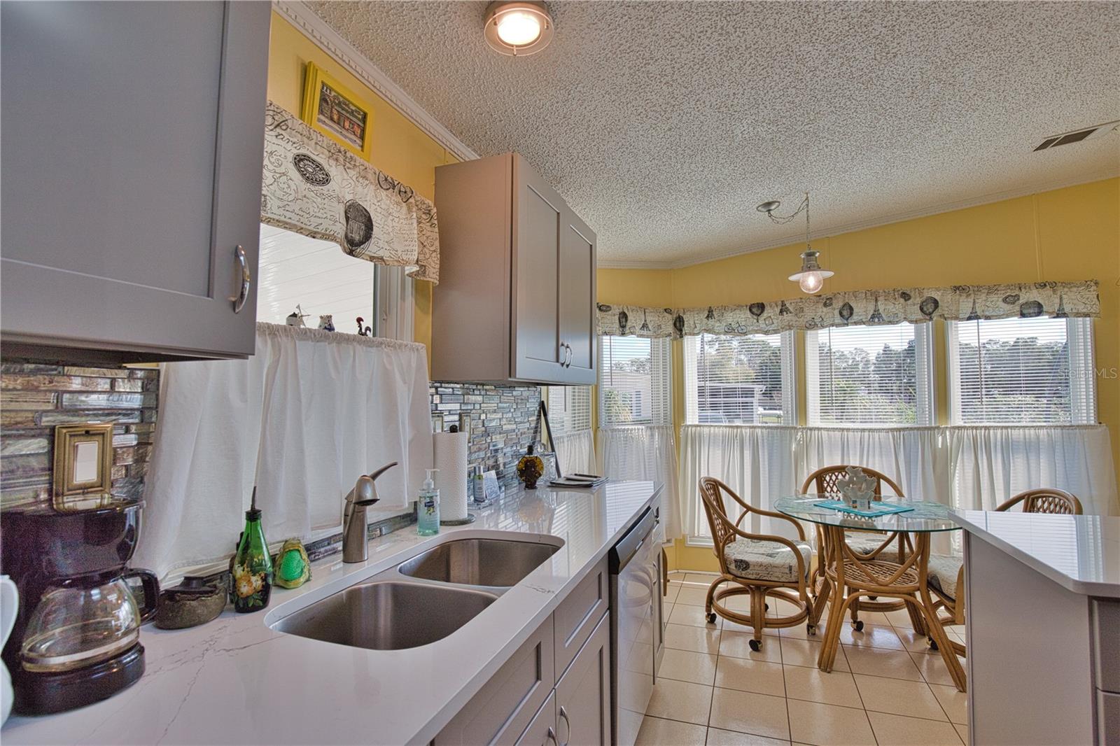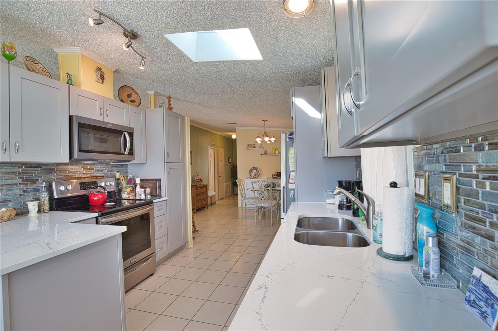 Look no further for your Florida Dream Home! This charming 2 bedroom, 2 bath house is located on a quiet street in a vibrant 55+ community. Enjoy your morning coffee or evening beverage on the front porch overlooking a small pond. On windy days you canenjoy the outdoors from the comfort of your lanai. Inside the home is bright and airy with lots of natural light. The eat-in kitchen has been beautifully updated with quartz countertops, glass backsplash and solid wood cabinets. This connects to the dining room which flows into the living room. Entertaining friends and family will be a breeze in this home. In addition to the living space, you'll find a bonus room currently utilized as an office. The bonus room, with washer/dryer hook-ups, could also be converted to a laundry room for convenience. The primary bedroom is extremely spacious with a completely updated ensuite bathroom featuring double sinks, a new soaking tub, and a new walk-in shower. New A/C 20211, A/C duct cleaned and sealed in 2023, new roof 2023, skylights 2023, new vapor barrier 2023, new high impact front doors 2024, new vinyl siding 2024. Home is being offered partially furnished. La Casa boasts 974 home sites nestled among a variety of native trees with spacious common grounds surrounding our eight lakes and offers the ultimate lifestyle on Florida's Gulf Coast. You'll be surrounded by hundreds of palms reaching for the sky and beautiful mature lush landscaping which demonstrates the utmost level of care our property receives from residents and management. La Casa is a friendly, family community. You will be away from the hustle and bustle except when you want to be part of it. When you leave our gates, North Port is only 1.5 miles from the city center, where you will find every kind of retail store and service you could need. Come for a visit to this self-contained oasis and see for yourself why La Casa is the ultimate destination for both snowbirds and year-round.