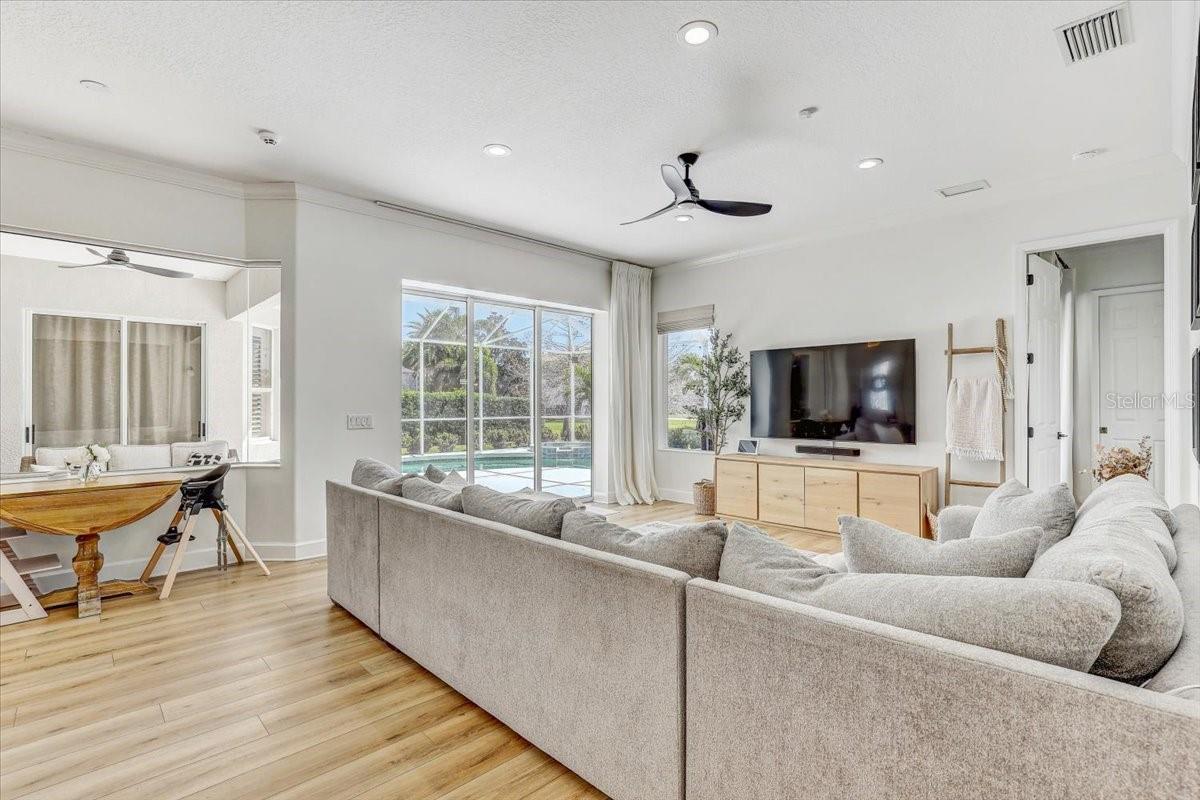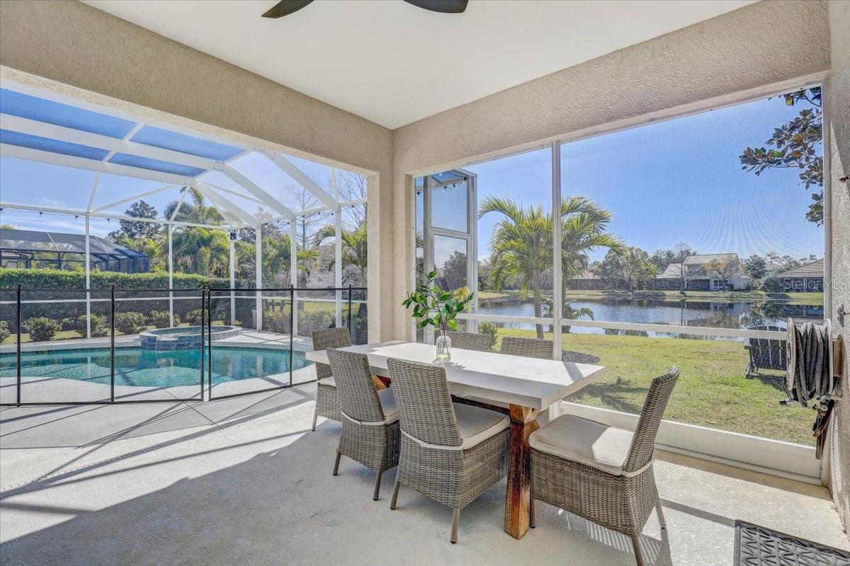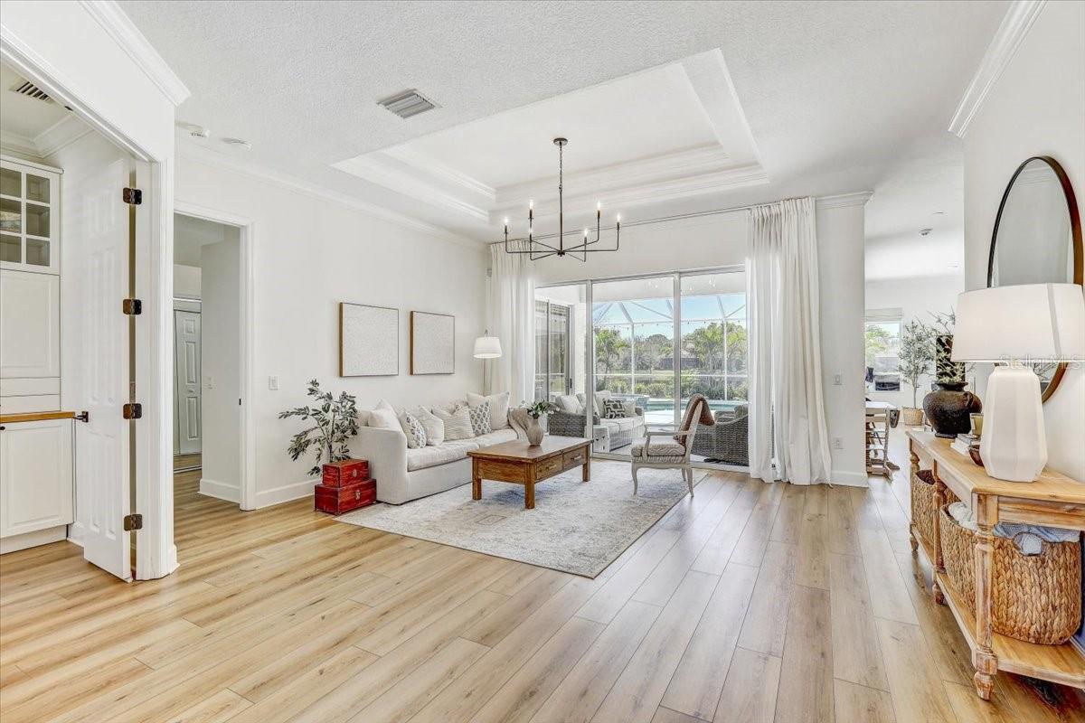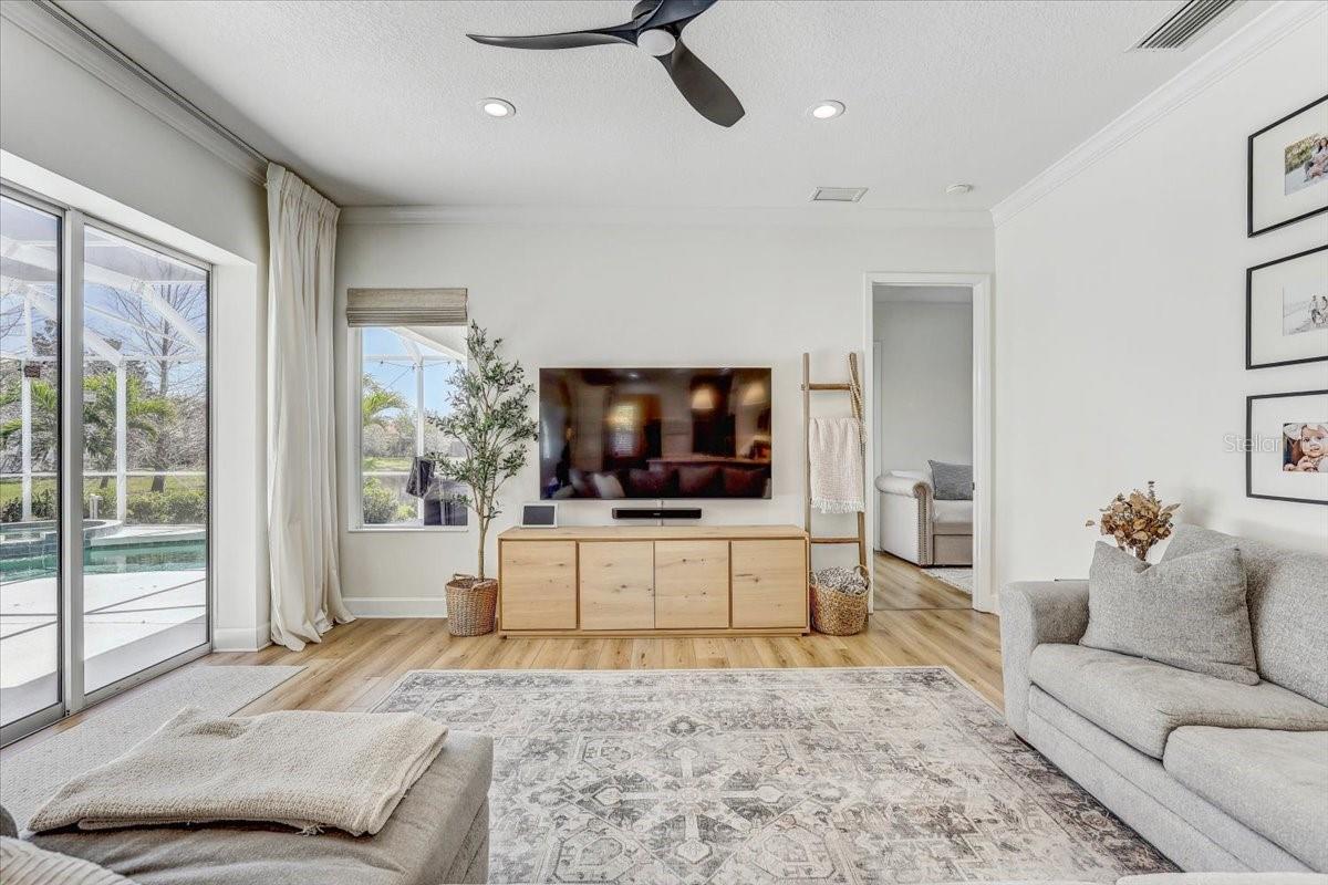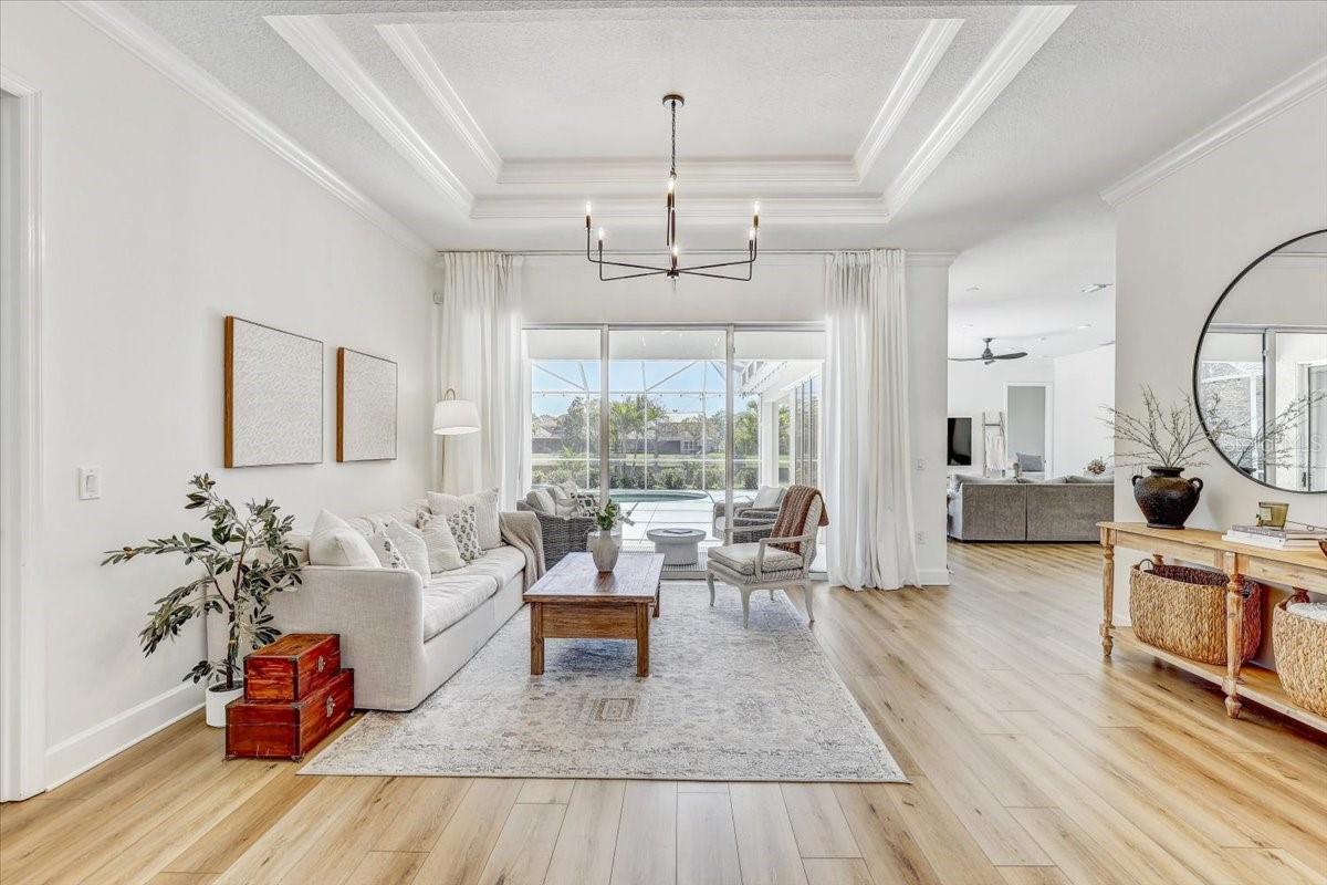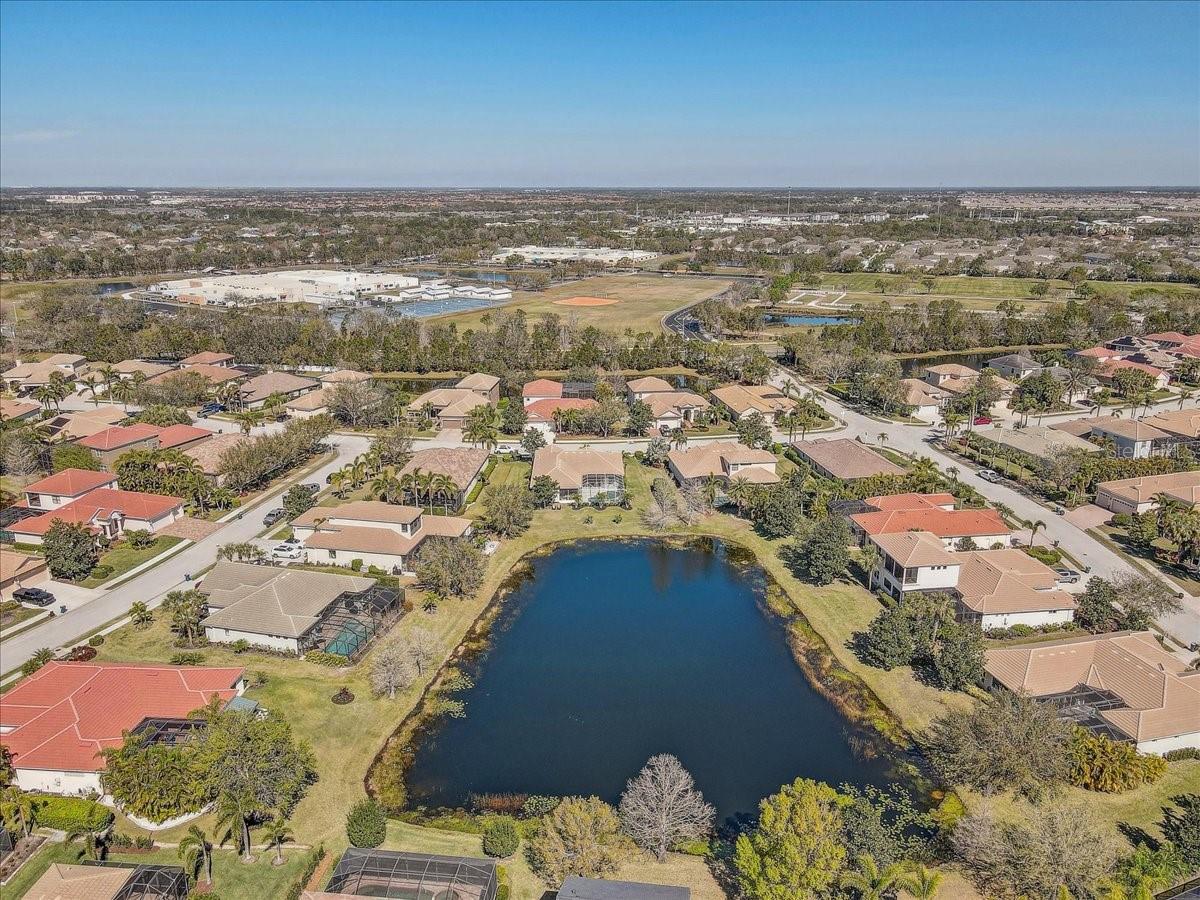 Welcome to this beautiful 4 BEDROOM + OFFICE, 3 BATH, 2 car garage POOL home with a POND VIEW located in the highly sought after neighborhood of Greenbrook Preserve in LAKEWOOD RANCH! This home is entirely move-in ready, just bring your belongings and settle right in! From the moment you arrive, you'll be impressed by this home's beautiful TILE ROOF, fresh landscaping, and gorgeous pond views. Enjoy Florida living at its finest with the home situated on a larger lot (.31 OF AN ACRE), two spacious covered outdoor patio areas, a heated in-ground POOL and SPA, and new pool screens installed in 2022, all perfect for entertaining or relaxing in your private oasis. The exterior was freshly painted in 2021, giving the home a modern, updated look. Step inside and fall in love with the LUXURY VINYL PLANK flooring and crown molding that flow seamlessly throughout the entire home which includes tasteful chandeliers. The CUSTOM GOURMET KITCHEN, fully upgraded in 2023, features quartz countertops, a large island, a quartz composite sink, elegant gold hardware, hanging Z-studio Pendants, gas stove, stainless steel appliances, wine fridge and a custom pantry for extra storage--a dream for any chef or entertainer! The primary suite offers a peaceful retreat with two closets (including a walk-in), a cozy bay window area, and higher ceilings that add to the airy, open feel. The spa-like master bath includes Corian counters, dual sinks, a garden tub, and a walk-in shower. Additional highlights include: PLANTATION SHUTTERS on most windows, Indoor laundry room with cabinets and a sink, Tile roof, Picturesque water views from your backyard oasis to enjoy sunsets and living the Florida lifestyle! Greenbrook has two parks, the county park and Adventure park. They feature ball fields, playground, dog park, pavilion, in-line skating and walking trails. Greenbrook is also located close to shopping, hospitals, golf, beaches, and I-75 for easy access to all the other amenities that the Sunshine State has to offer. Schedule your private tour today. This is a home and property that you do not want to miss!