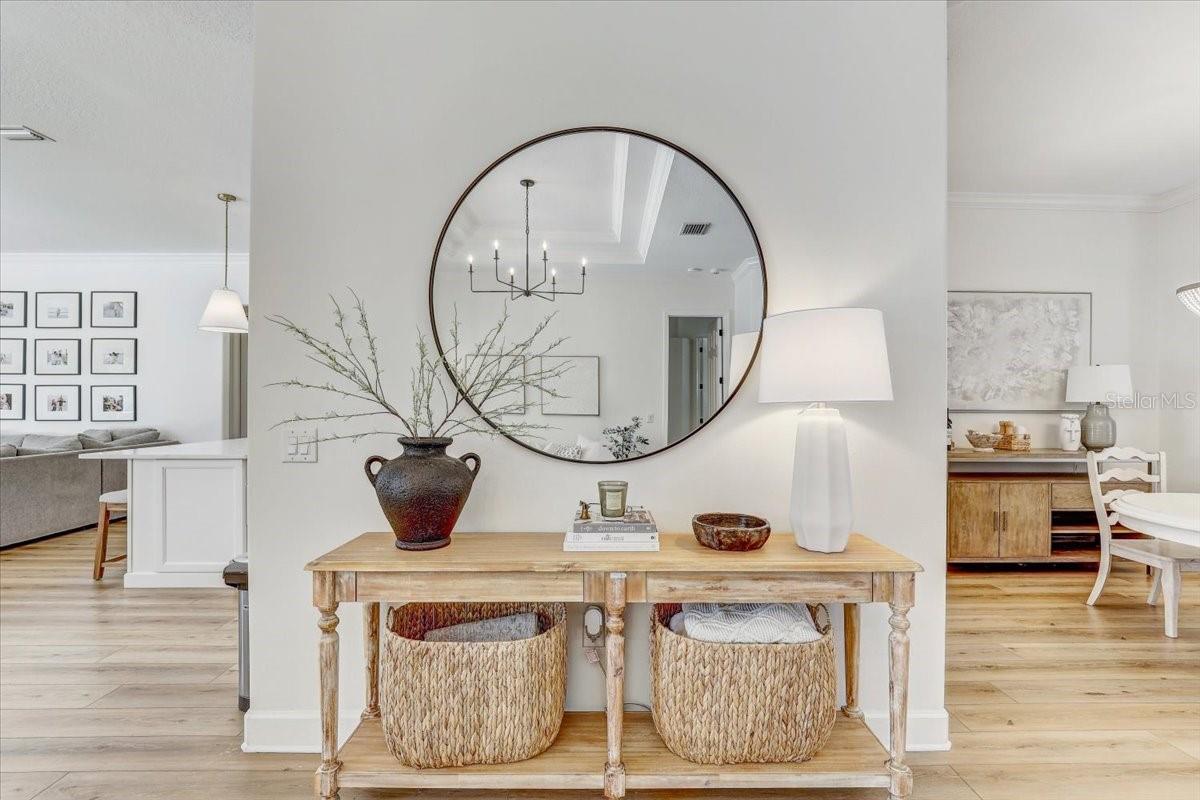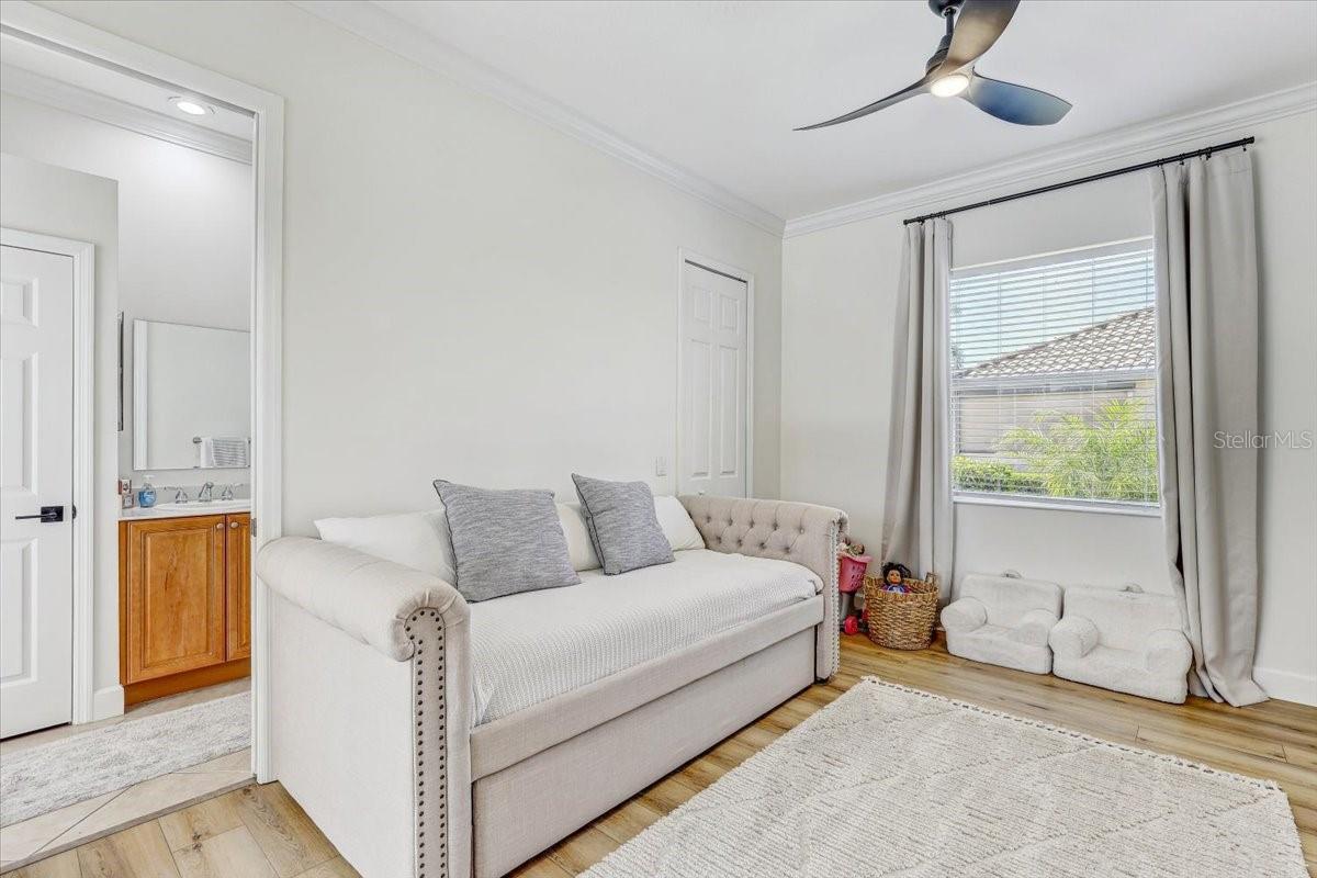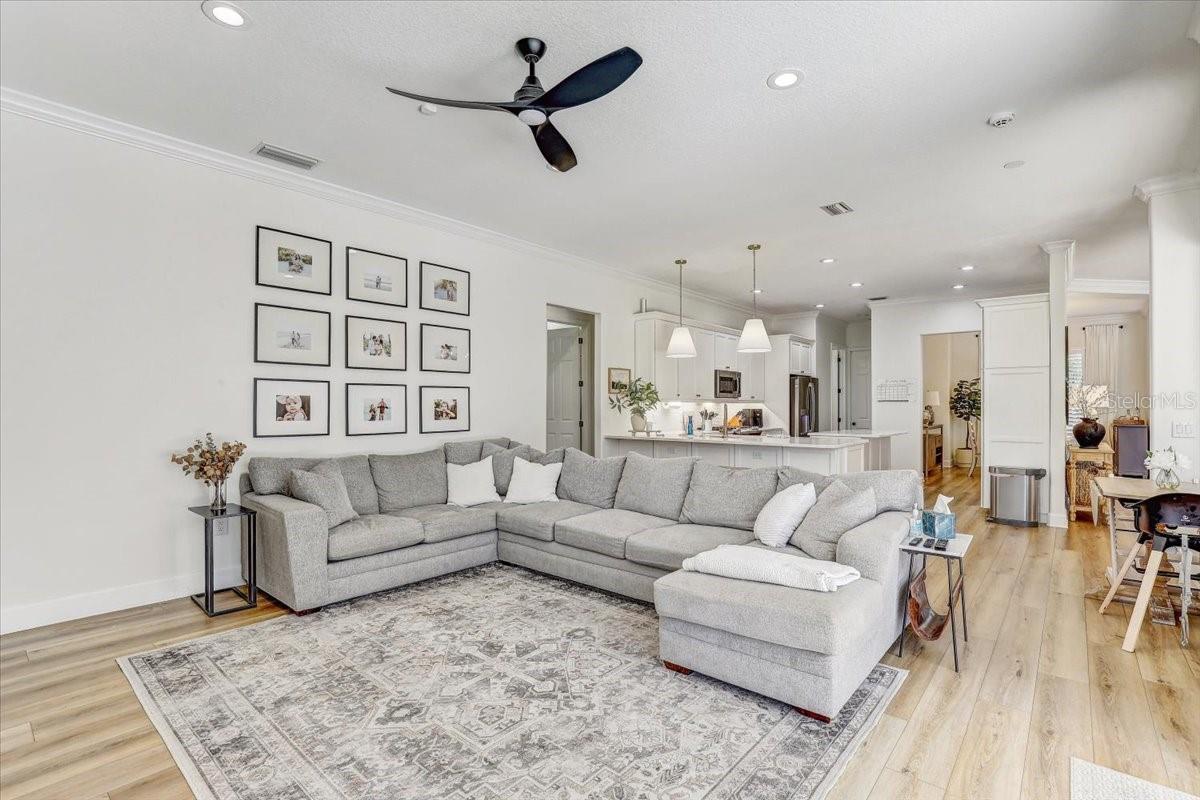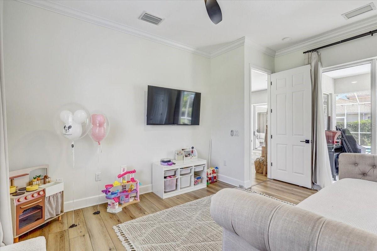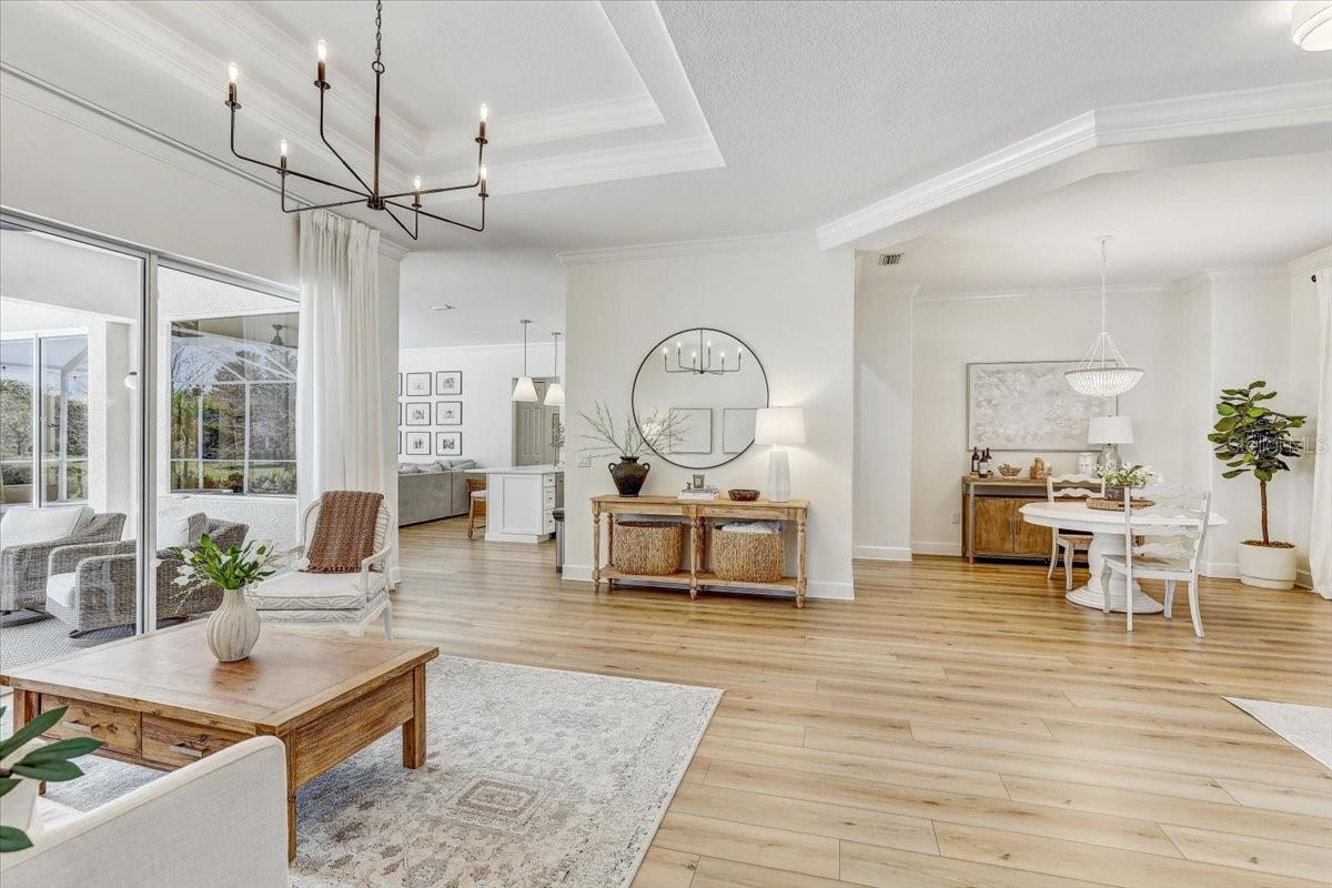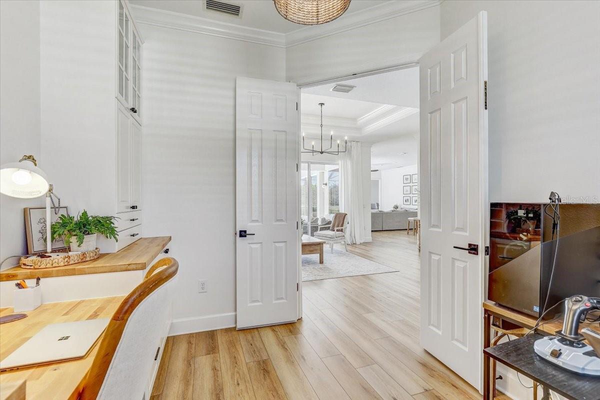 Welcome to this beautiful 4 BEDROOM + OFFICE, 3 BATH, 2 car garage POOL home with a POND VIEW located in the highly sought after neighborhood of Greenbrook Preserve in LAKEWOOD RANCH! This home is entirely move-in ready, just bring your belongings and settle right in! From the moment you arrive, you'll be impressed by this home's beautiful TILE ROOF, fresh landscaping, and gorgeous pond views. Enjoy Florida living at its finest with the home situated on a larger lot (.31 OF AN ACRE), two spacious covered outdoor patio areas, a heated in-ground POOL and SPA, and new pool screens installed in 2022, all perfect for entertaining or relaxing in your private oasis. The exterior was freshly painted in 2021, giving the home a modern, updated look. Step inside and fall in love with the LUXURY VINYL PLANK flooring and crown molding that flow seamlessly throughout the entire home which includes tasteful chandeliers. The CUSTOM GOURMET KITCHEN, fully upgraded in 2023, features quartz countertops, a large island, a quartz composite sink, elegant gold hardware, hanging Z-studio Pendants, gas stove, stainless steel appliances, wine fridge and a custom pantry for extra storage--a dream for any chef or entertainer! The primary suite offers a peaceful retreat with two closets (including a walk-in), a cozy bay window area, and higher ceilings that add to the airy, open feel. The spa-like master bath includes Corian counters, dual sinks, a garden tub, and a walk-in shower. Additional highlights include: PLANTATION SHUTTERS on most windows, Indoor laundry room with cabinets and a sink, Tile roof, Picturesque water views from your backyard oasis to enjoy sunsets and living the Florida lifestyle! Greenbrook has two parks, the county park and Adventure park. They feature ball fields, playground, dog park, pavilion, in-line skating and walking trails. Greenbrook is also located close to shopping, hospitals, golf, beaches, and I-75 for easy access to all the other amenities that the Sunshine State has to offer. Schedule your private tour today. This is a home and property that you do not want to miss!