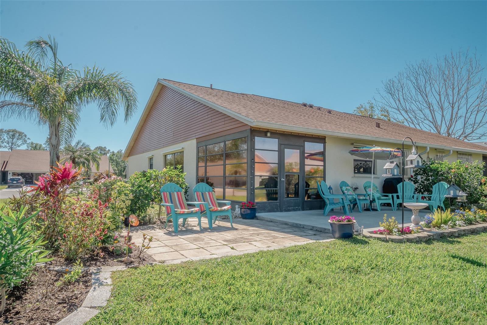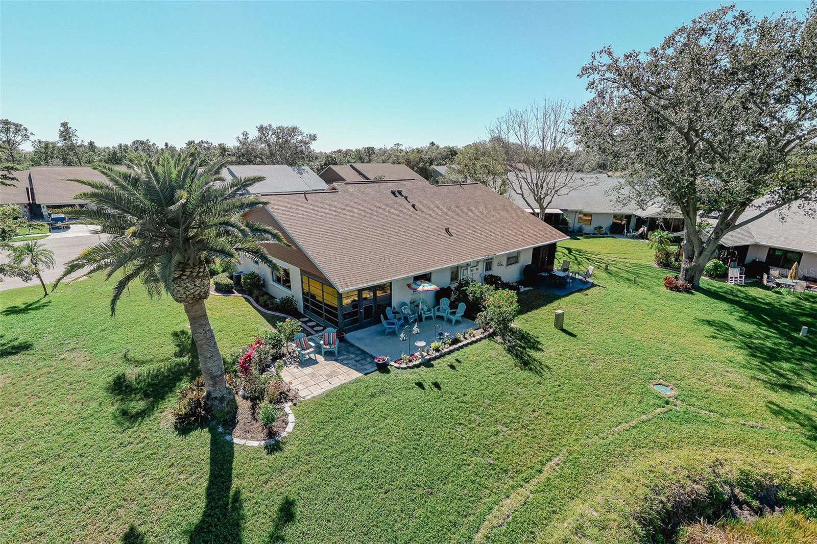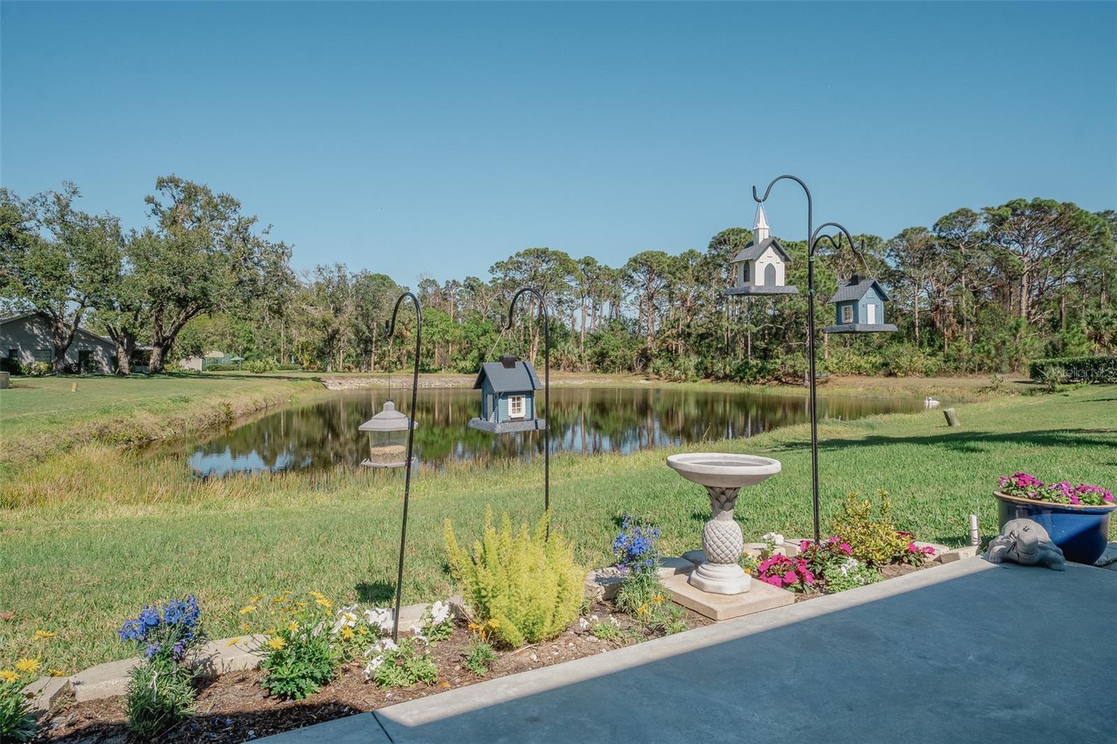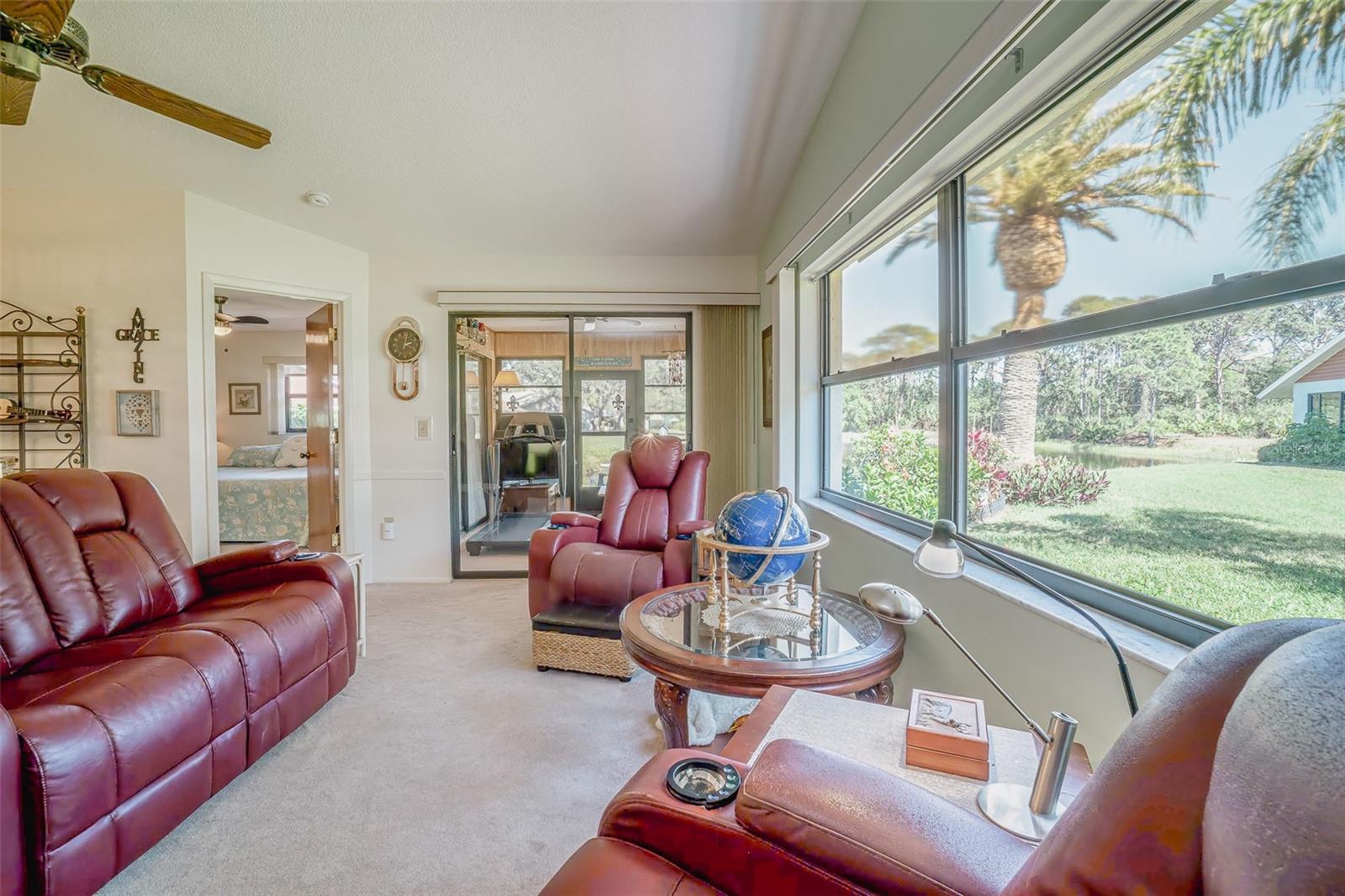 Welcome to Chestnut Creek Villas, a highly regarded 55+ community known for its peaceful setting and convenient amenities. This well-maintained villa is tucked away on a quiet cul-de-sac, offering serene pond views backed by a lush nature preserve. The neighborhood's tree-lined streets create a welcoming atmosphere, great for leisurely like bike rides. Inside, the open floor plan features cathedral ceiling that enhance the bright and airy feel of the living space. Recent updates induce a new roof (2020), water header (2022), and appliances (2023), making this home move-in ready. The living area flows seamlessly into an enclosed lanai and out to a private patio - an ideal spot to enjoy your morning coffee while taking in the tranquil preserve views. Chestnut Creek offers great value with low HOA fees covering a community pool, tennis and bocce courts, shuffleboard, yard maintenance, and basic TV cable. The central pond attracts a variety of birds and wildlife, adding to the community's natural charm.