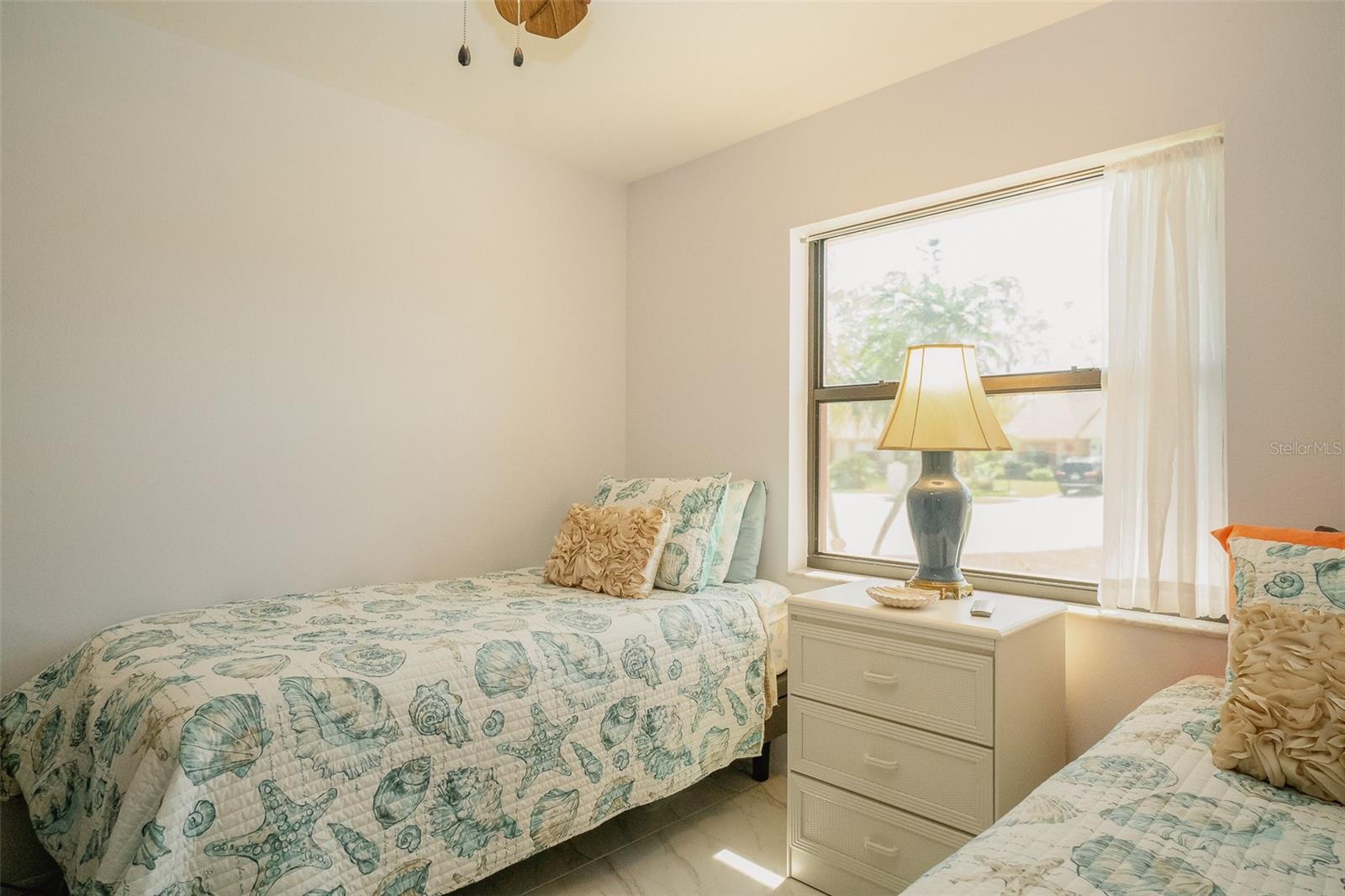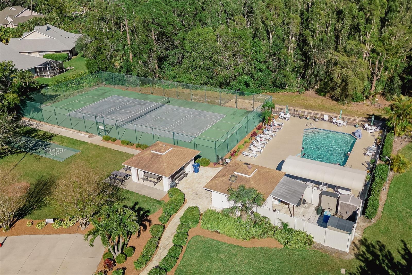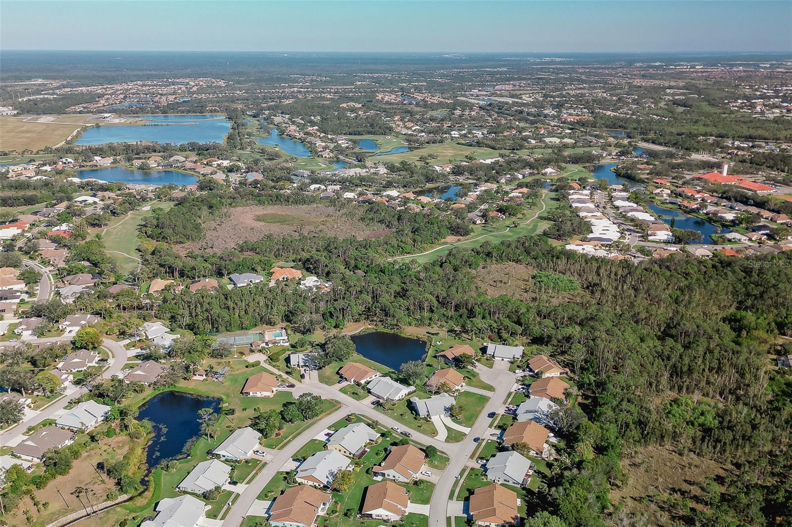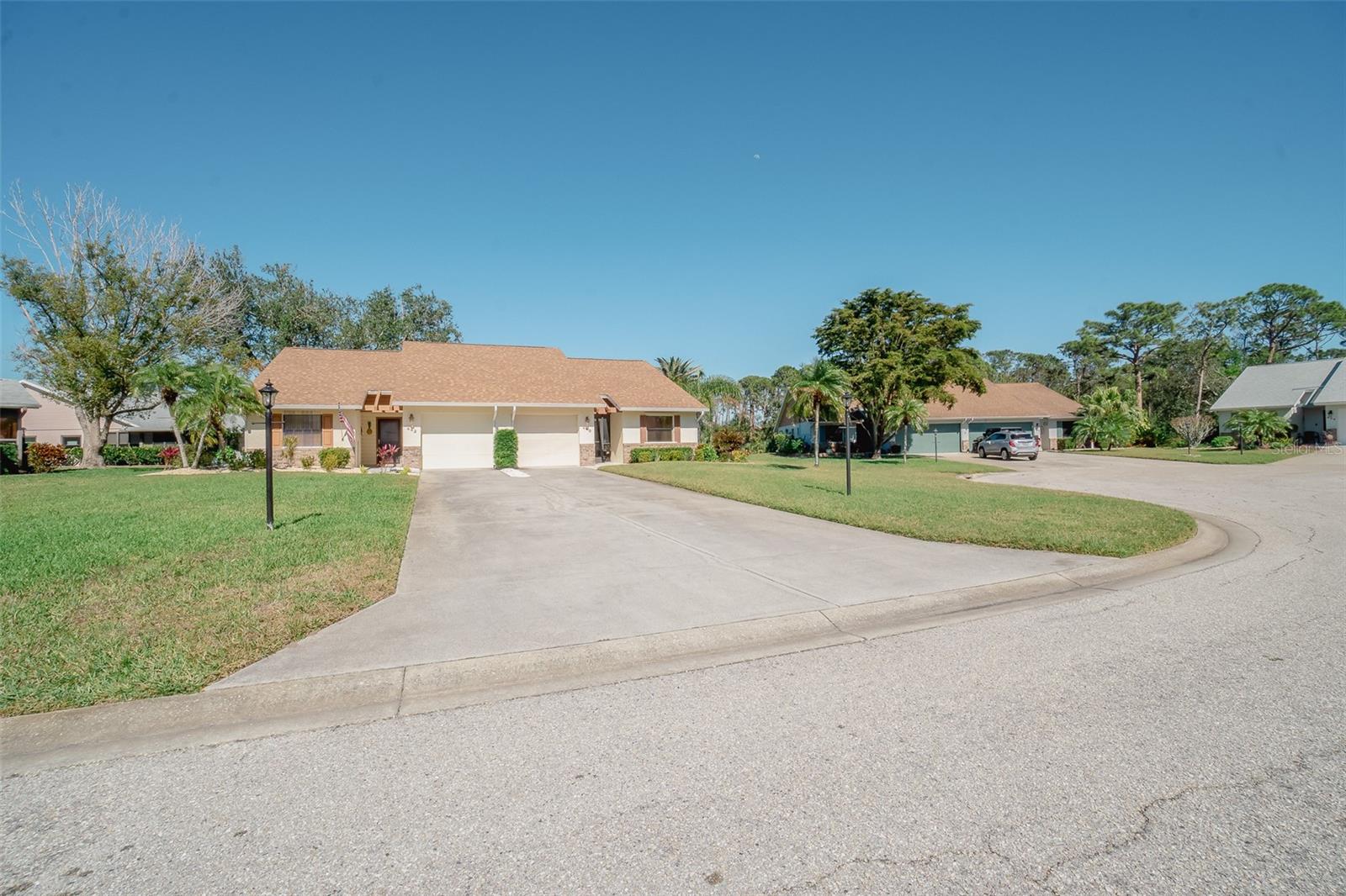 Welcome to Chestnut Creek Villas, a highly regarded 55+ community known for its peaceful setting and convenient amenities. This well-maintained villa is tucked away on a quiet cul-de-sac, offering serene pond views backed by a lush nature preserve. The neighborhood's tree-lined streets create a welcoming atmosphere, great for leisurely like bike rides. Inside, the open floor plan features cathedral ceiling that enhance the bright and airy feel of the living space. Recent updates induce a new roof (2020), water header (2022), and appliances (2023), making this home move-in ready. The living area flows seamlessly into an enclosed lanai and out to a private patio - an ideal spot to enjoy your morning coffee while taking in the tranquil preserve views. Chestnut Creek offers great value with low HOA fees covering a community pool, tennis and bocce courts, shuffleboard, yard maintenance, and basic TV cable. The central pond attracts a variety of birds and wildlife, adding to the community's natural charm.