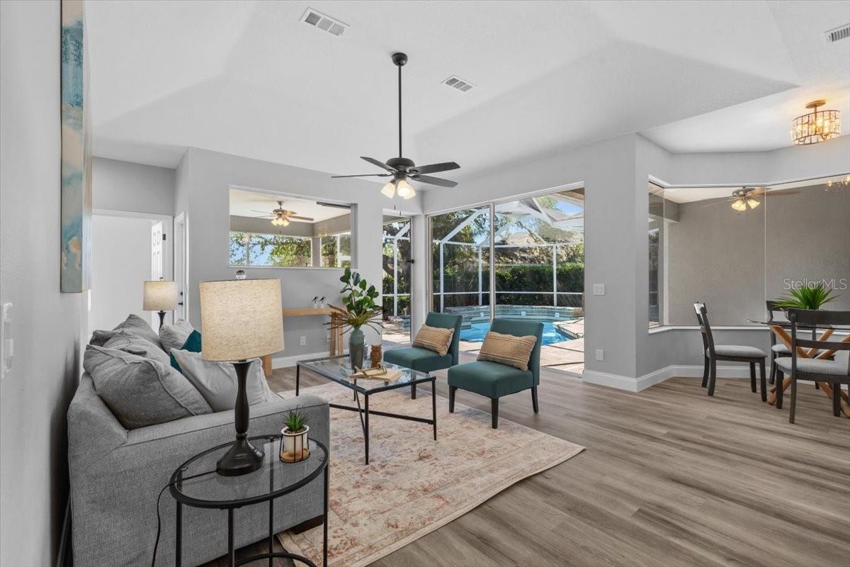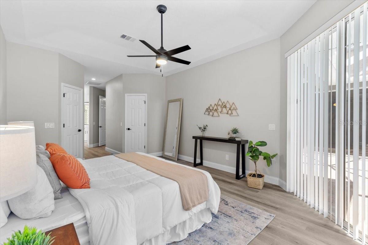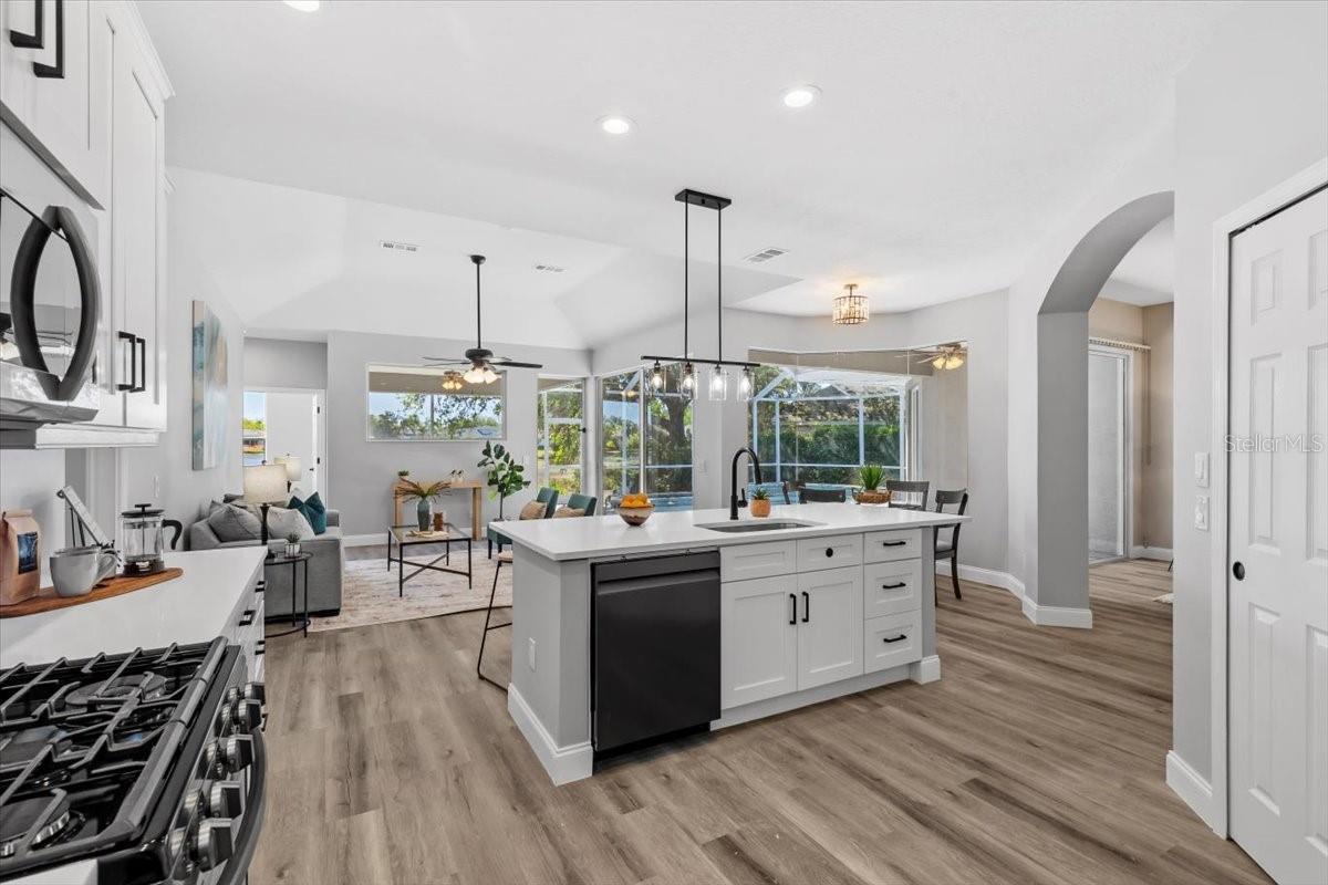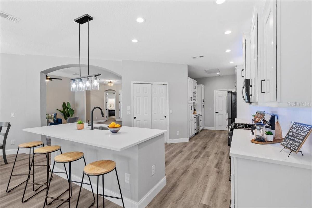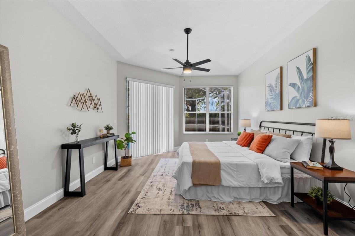 This exquisite 5-bedroom, 3-bath, 3-car garage pool home in the highly sought-after Summerfield Village of Lakewood Ranch seamlessly blends comfort and sophistication. With fresh exterior paint and updated landscaping, the curb appeal is undeniable. As you approach, a welcoming covered entryway sets the stage for what's inside. Step through the front door and be greeted by brand-new luxury vinyl flooring flowing throughout the entire home, complemented by freshly painted interiors. The dining and living areas connect effortlessly, bathed in abundant natural light from expansive sliding glass doors leading to the pool. To the right of the dining room, the first bedroom boasts built-in storage and dual closets, making it a versatile space for guests or a home office. Just beyond, the primary suite awaits--an elegant retreat with tray ceilings, two oversized walk-in closets, and private pool access. The spa-like primary bath features a soaking tub, walk-in shower, and dual vanities, offering both style and functionality. The gourmet-inspired kitchen is a masterpiece, showcasing updated white shaker cabinets, quartz countertops, black brushed stainless steel appliances, modern fixtures, recessed lighting, a pantry, and a charming breakfast nook with bay windows. A wet bar with a built-in wine rack and wine fridge enhances the space, providing ample storage and entertaining possibilities. Just off the kitchen, a generously sized laundry room offers quartz countertops and a sink for added convenience. The family room, designed for relaxation and gatherings, features tray ceilings and an abundance of natural light streaming through sliding glass doors that open to the outdoor retreat. Bedroom three includes built-in wall storage and private patio access, while bedrooms four and five offer modern fixtures and comfortable layouts. Bathrooms two and three have been stylishly updated with quartz vanities and contemporary finishes. Step outside to the expansive screened-in patio and pool area, the heart of this home. With brand-new pavers, a sparkling pool, and a soothing spa overlooking the tranquil lake and lush landscaping, this space is perfect for entertaining or unwinding in total serenity--all while enjoying the added comfort and privacy of a screened enclosure. Summerfield Village offers an array of amenities, including scenic walking trails, a playground, tennis courts, and more. With easy access to I-75, top-rated schools, fine dining, world-famous beaches, UTC Mall, and downtown Sarasota, this home delivers the ideal Florida lifestyle. Don't miss this exceptional opportunity--schedule your private showing today! For a virtual tour, click the provided link and experience the beauty of the exceptional home.