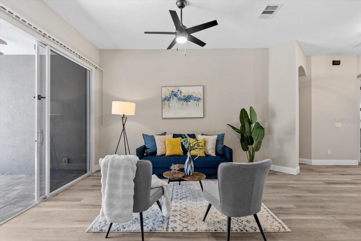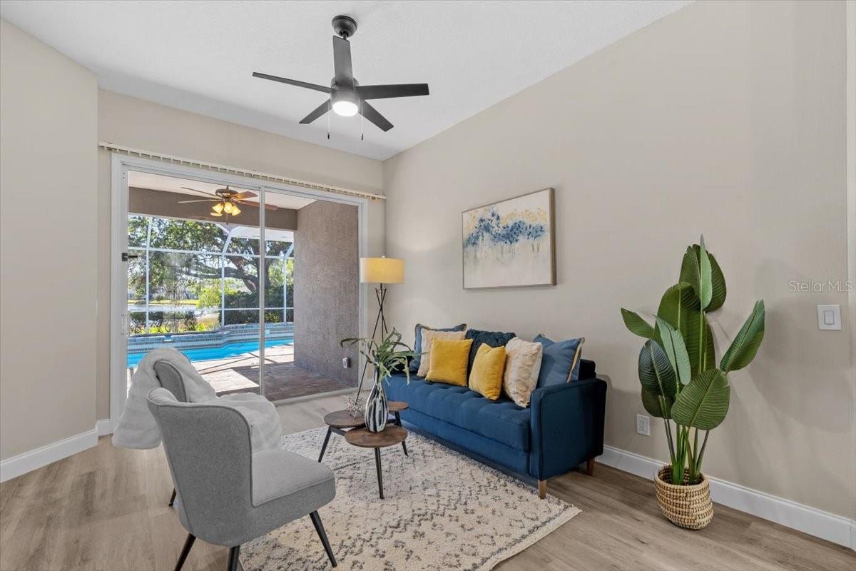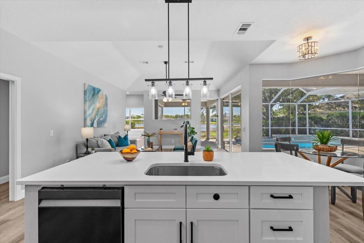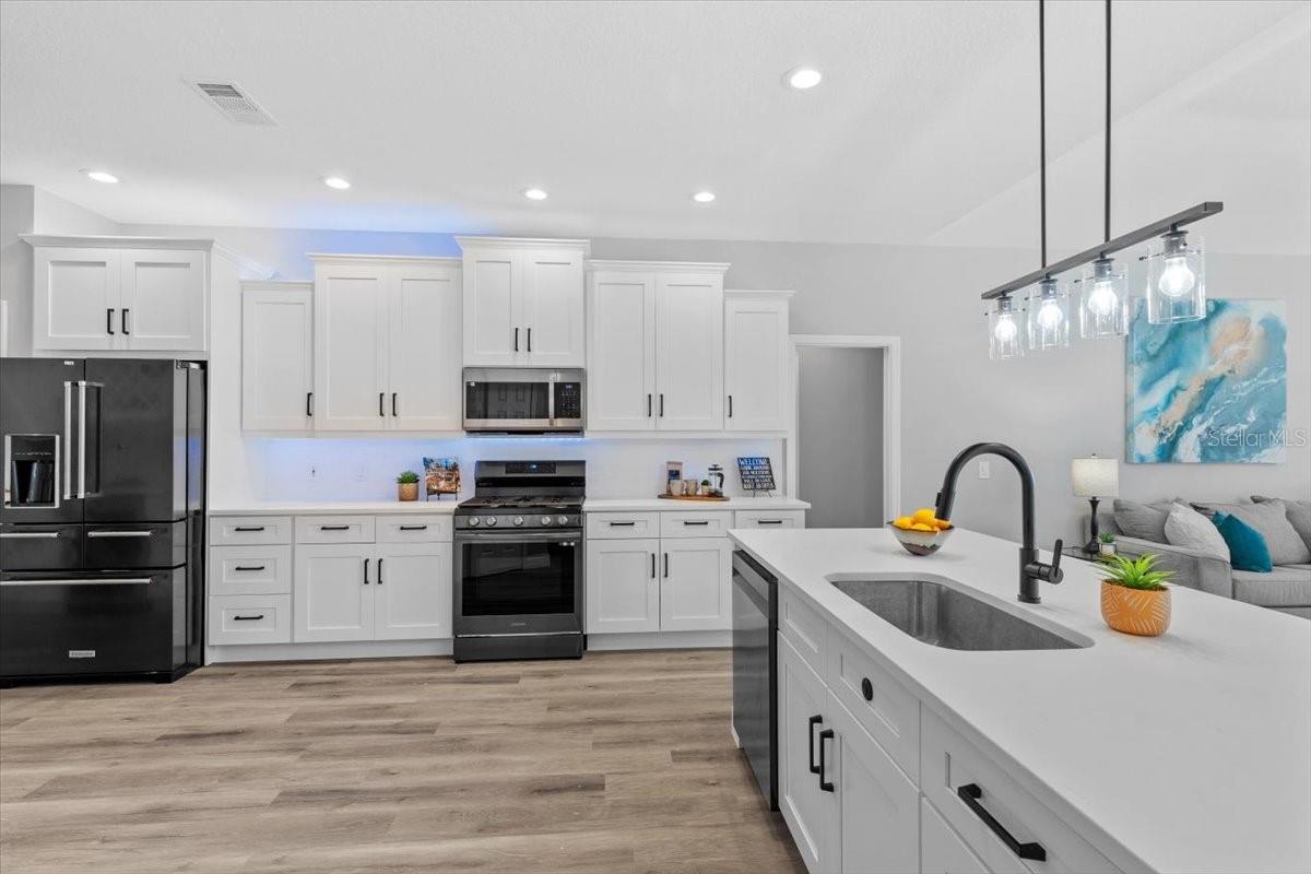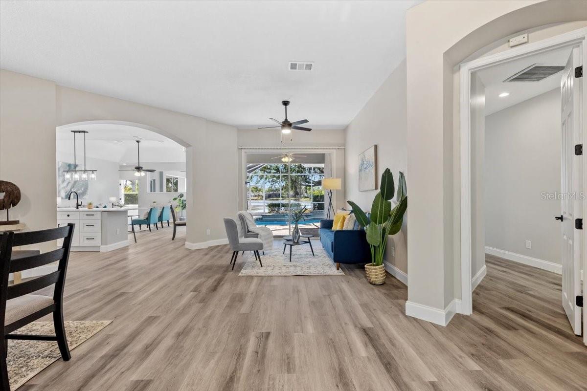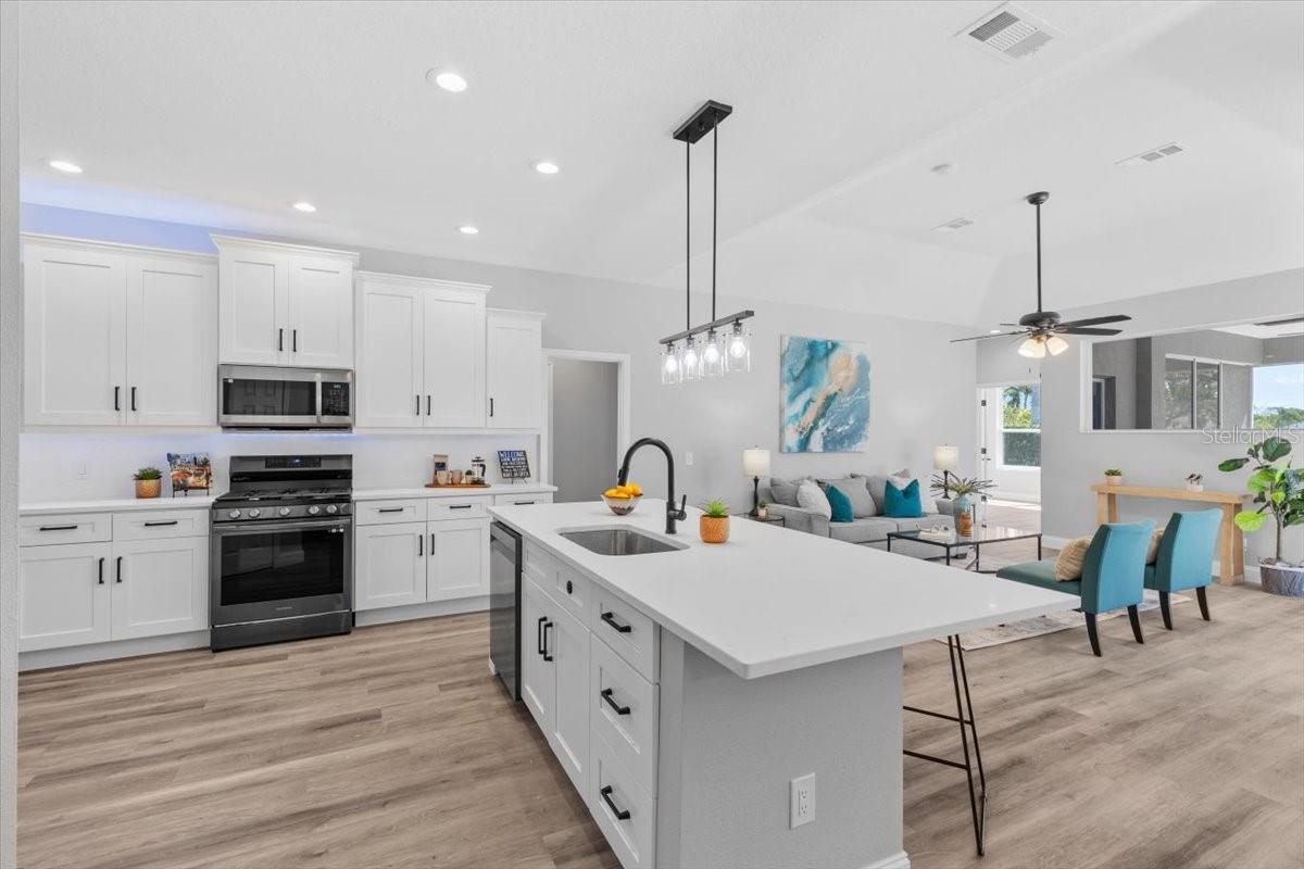 This exquisite 5-bedroom, 3-bath, 3-car garage pool home in the highly sought-after Summerfield Village of Lakewood Ranch seamlessly blends comfort and sophistication. With fresh exterior paint and updated landscaping, the curb appeal is undeniable. As you approach, a welcoming covered entryway sets the stage for what's inside. Step through the front door and be greeted by brand-new luxury vinyl flooring flowing throughout the entire home, complemented by freshly painted interiors. The dining and living areas connect effortlessly, bathed in abundant natural light from expansive sliding glass doors leading to the pool. To the right of the dining room, the first bedroom boasts built-in storage and dual closets, making it a versatile space for guests or a home office. Just beyond, the primary suite awaits--an elegant retreat with tray ceilings, two oversized walk-in closets, and private pool access. The spa-like primary bath features a soaking tub, walk-in shower, and dual vanities, offering both style and functionality. The gourmet-inspired kitchen is a masterpiece, showcasing updated white shaker cabinets, quartz countertops, black brushed stainless steel appliances, modern fixtures, recessed lighting, a pantry, and a charming breakfast nook with bay windows. A wet bar with a built-in wine rack and wine fridge enhances the space, providing ample storage and entertaining possibilities. Just off the kitchen, a generously sized laundry room offers quartz countertops and a sink for added convenience. The family room, designed for relaxation and gatherings, features tray ceilings and an abundance of natural light streaming through sliding glass doors that open to the outdoor retreat. Bedroom three includes built-in wall storage and private patio access, while bedrooms four and five offer modern fixtures and comfortable layouts. Bathrooms two and three have been stylishly updated with quartz vanities and contemporary finishes. Step outside to the expansive screened-in patio and pool area, the heart of this home. With brand-new pavers, a sparkling pool, and a soothing spa overlooking the tranquil lake and lush landscaping, this space is perfect for entertaining or unwinding in total serenity--all while enjoying the added comfort and privacy of a screened enclosure. Summerfield Village offers an array of amenities, including scenic walking trails, a playground, tennis courts, and more. With easy access to I-75, top-rated schools, fine dining, world-famous beaches, UTC Mall, and downtown Sarasota, this home delivers the ideal Florida lifestyle. Don't miss this exceptional opportunity--schedule your private showing today! For a virtual tour, click the provided link and experience the beauty of the exceptional home.