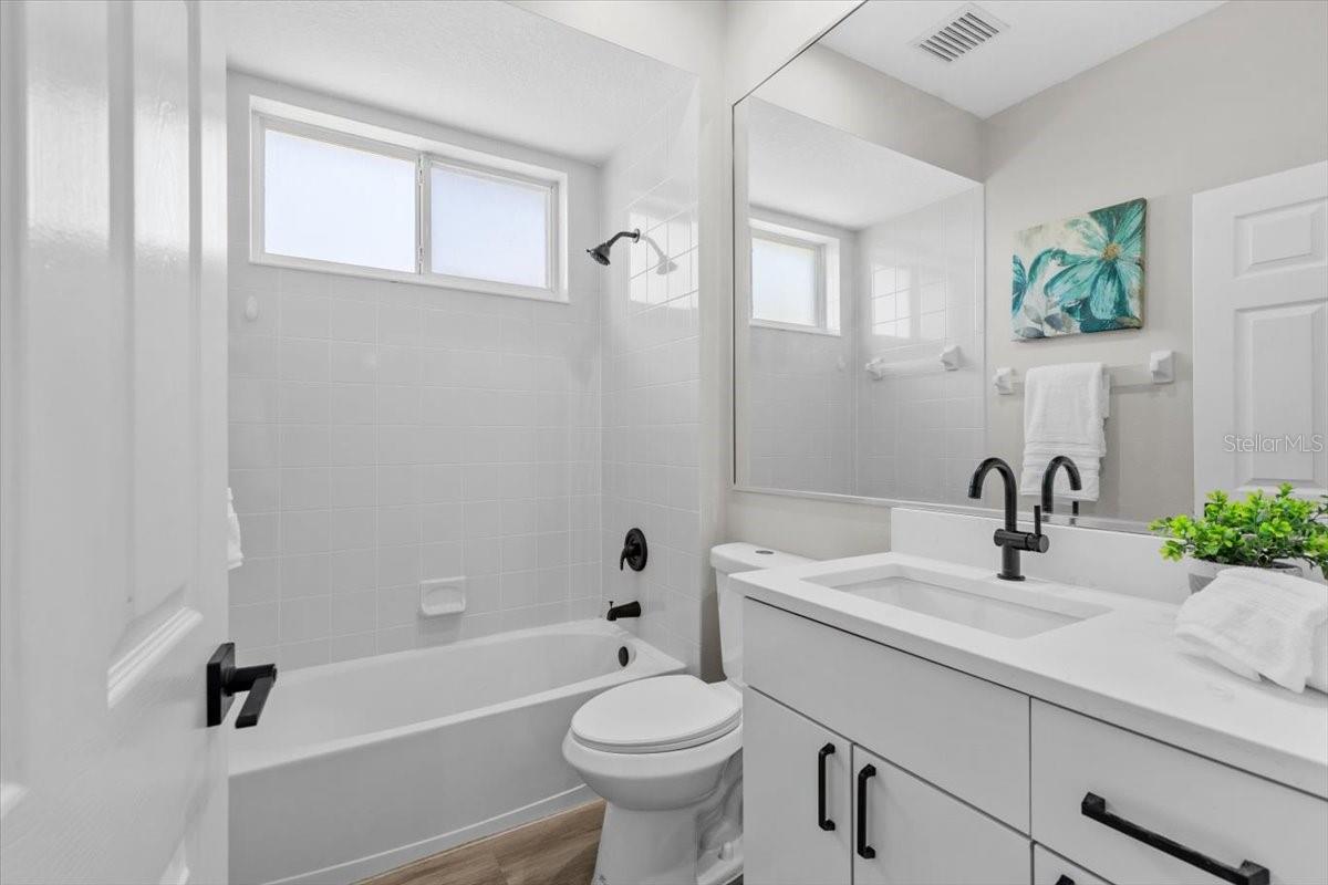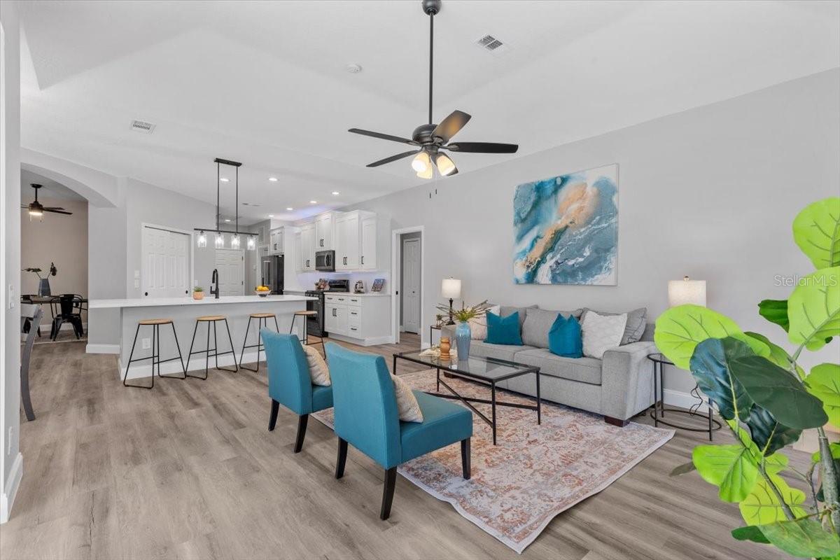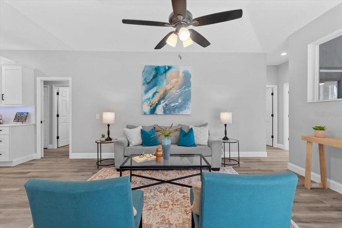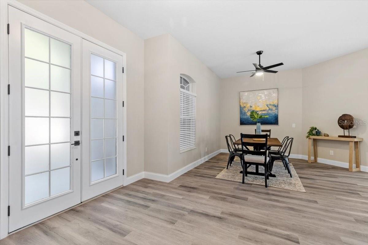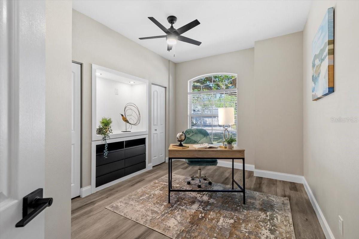 This exquisite 5-bedroom, 3-bath, 3-car garage pool home in the highly sought-after Summerfield Village of Lakewood Ranch seamlessly blends comfort and sophistication. With fresh exterior paint and updated landscaping, the curb appeal is undeniable. As you approach, a welcoming covered entryway sets the stage for what's inside. Step through the front door and be greeted by brand-new luxury vinyl flooring flowing throughout the entire home, complemented by freshly painted interiors. The dining and living areas connect effortlessly, bathed in abundant natural light from expansive sliding glass doors leading to the pool. To the right of the dining room, the first bedroom boasts built-in storage and dual closets, making it a versatile space for guests or a home office. Just beyond, the primary suite awaits--an elegant retreat with tray ceilings, two oversized walk-in closets, and private pool access. The spa-like primary bath features a soaking tub, walk-in shower, and dual vanities, offering both style and functionality. The gourmet-inspired kitchen is a masterpiece, showcasing updated white shaker cabinets, quartz countertops, black brushed stainless steel appliances, modern fixtures, recessed lighting, a pantry, and a charming breakfast nook with bay windows. A wet bar with a built-in wine rack and wine fridge enhances the space, providing ample storage and entertaining possibilities. Just off the kitchen, a generously sized laundry room offers quartz countertops and a sink for added convenience. The family room, designed for relaxation and gatherings, features tray ceilings and an abundance of natural light streaming through sliding glass doors that open to the outdoor retreat. Bedroom three includes built-in wall storage and private patio access, while bedrooms four and five offer modern fixtures and comfortable layouts. Bathrooms two and three have been stylishly updated with quartz vanities and contemporary finishes. Step outside to the expansive screened-in patio and pool area, the heart of this home. With brand-new pavers, a sparkling pool, and a soothing spa overlooking the tranquil lake and lush landscaping, this space is perfect for entertaining or unwinding in total serenity--all while enjoying the added comfort and privacy of a screened enclosure. Summerfield Village offers an array of amenities, including scenic walking trails, a playground, tennis courts, and more. With easy access to I-75, top-rated schools, fine dining, world-famous beaches, UTC Mall, and downtown Sarasota, this home delivers the ideal Florida lifestyle. Don't miss this exceptional opportunity--schedule your private showing today! For a virtual tour, click the provided link and experience the beauty of the exceptional home.