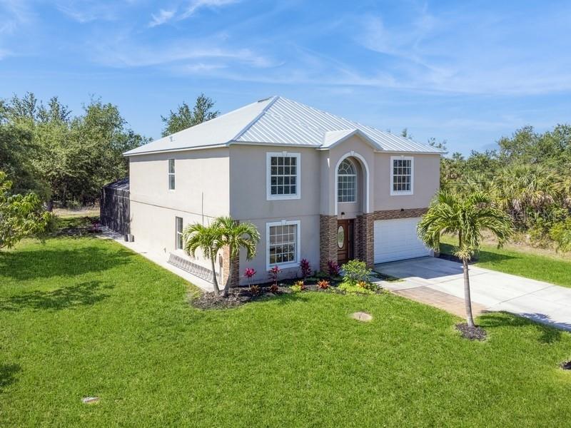 One or more photo(s) has been virtually staged. Luxury Coastal Living in South Gulf Cove - Seller Motivated.Experience the perfect blend of elegance and privacy at 14319 Morristown Ave, Port Charlotte, FL. Set on a rare triple lot (0.69 acres) with two additional buildable parcels, this two-story residence is more than a home--it's a lifestyle investment. And yes--the seller is motivated, which means opportunity is knocking a little louder than usual.Step inside and you'll see why. The chef's kitchen is the kind of space that makes takeout menus jealous--white cabinetry, quartz counters, a grand island, stainless steel appliances, and a butler's pantry. The family room, anchored by a striking stone feature wall, opens to your private screened lanai and heated saltwater pool--ideal for morning laps, sunset cocktails, or just pretending you're on vacation year-round.Upstairs, there are five bedrooms and four bathrooms throughout with two primary suites. The main suite comes with a spa-style bath, complete with soaking tub, walk-in shower, and double vanity--basically, the bathroom equivalent of first-class seating.Practical perks? A new metal roof (2023), newer A/C units (2020 & 2024),new pool pump (2025), Rainbird irrigation, and even a 1-year American Home Shield warranty. Plus, there's a two-car garage, plenty of parking, and the backyard doubles as your personal produce section with mature mango and avocado trees.Living in South Gulf Cove means access to a community lock system and boat ramps, plus a lively calendar of events--farmers markets, food trucks, and more. Add in quick drives to the beaches of Boca Grande and Englewood, and you'll wonder why you didn't move here sooner.No CDD. Flood Zone AE. Pets welcome. No minimum lease period. Plenty of room for RV or boat storage. The sellers are motivated and ready--so if you've been waiting for a sign, consider this your flashing neon one.