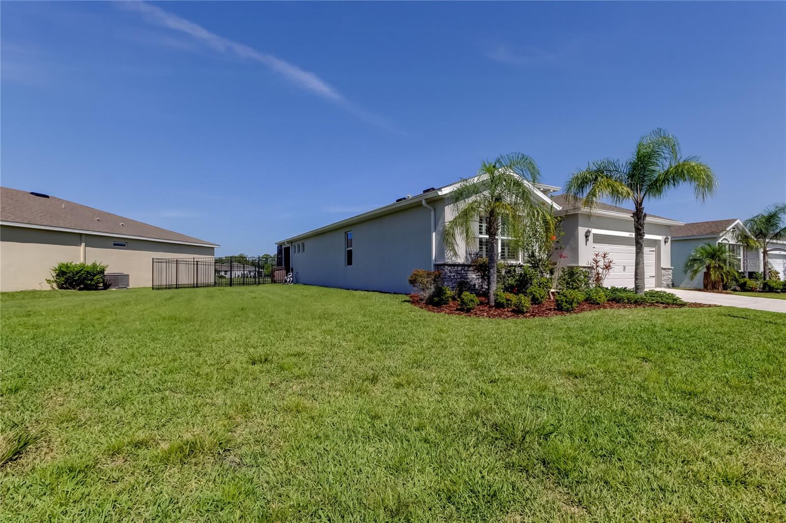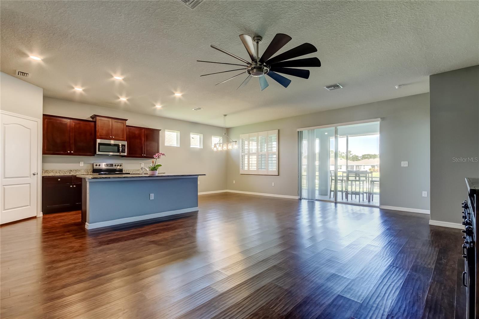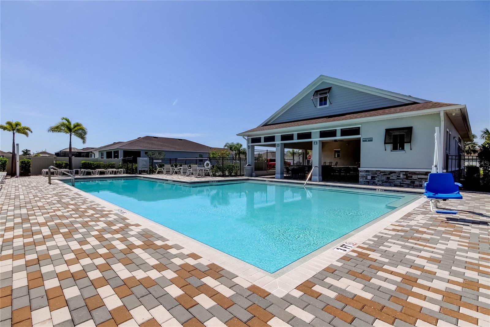 This beautifully maintained concrete block construction home features a desirable one-story layout with an open concept kitchen that flows into the spacious great room, dining area, and covered lanai--perfect for entertaining or relaxing. The owner's suite is privately situated at the back of the home with an ensuite bath, while two bedrooms share a full bathroom at the front, and a fourth bedroom is tucked near the laundry room. The kitchen includes stainless steel appliances: electric range, built-in microwave, and dishwasher.Located in the sought-after Palisades community, residents enjoy gated access, a sparkling community pool, and lawn maintenance included in the HOA, keeping the neighborhood pristine and your weekends worry-free.