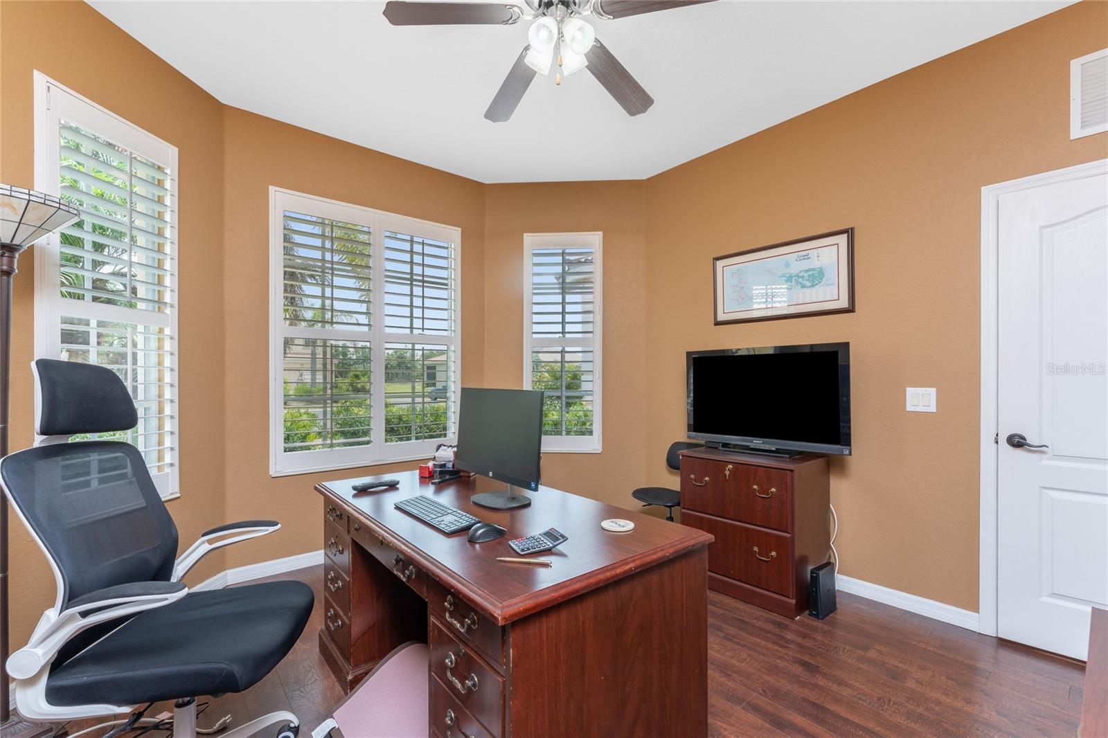 - Exterior: Awning(s), Hurricane Shutters, Lighting, Sidewalk, Sliding Doors
