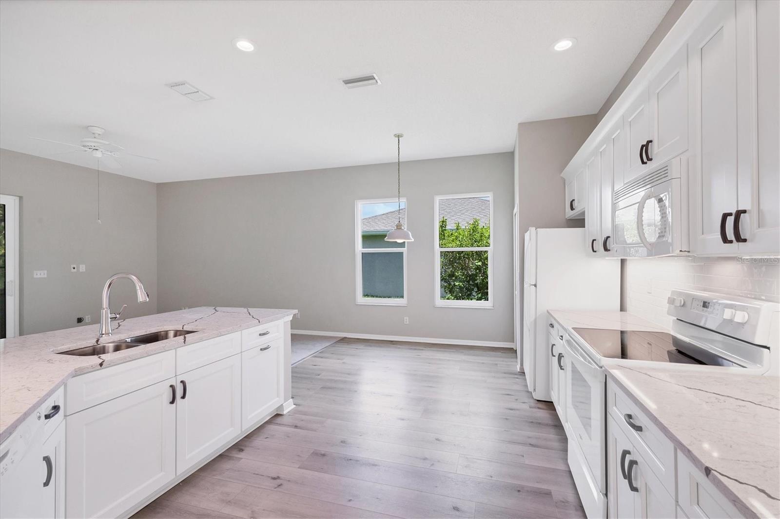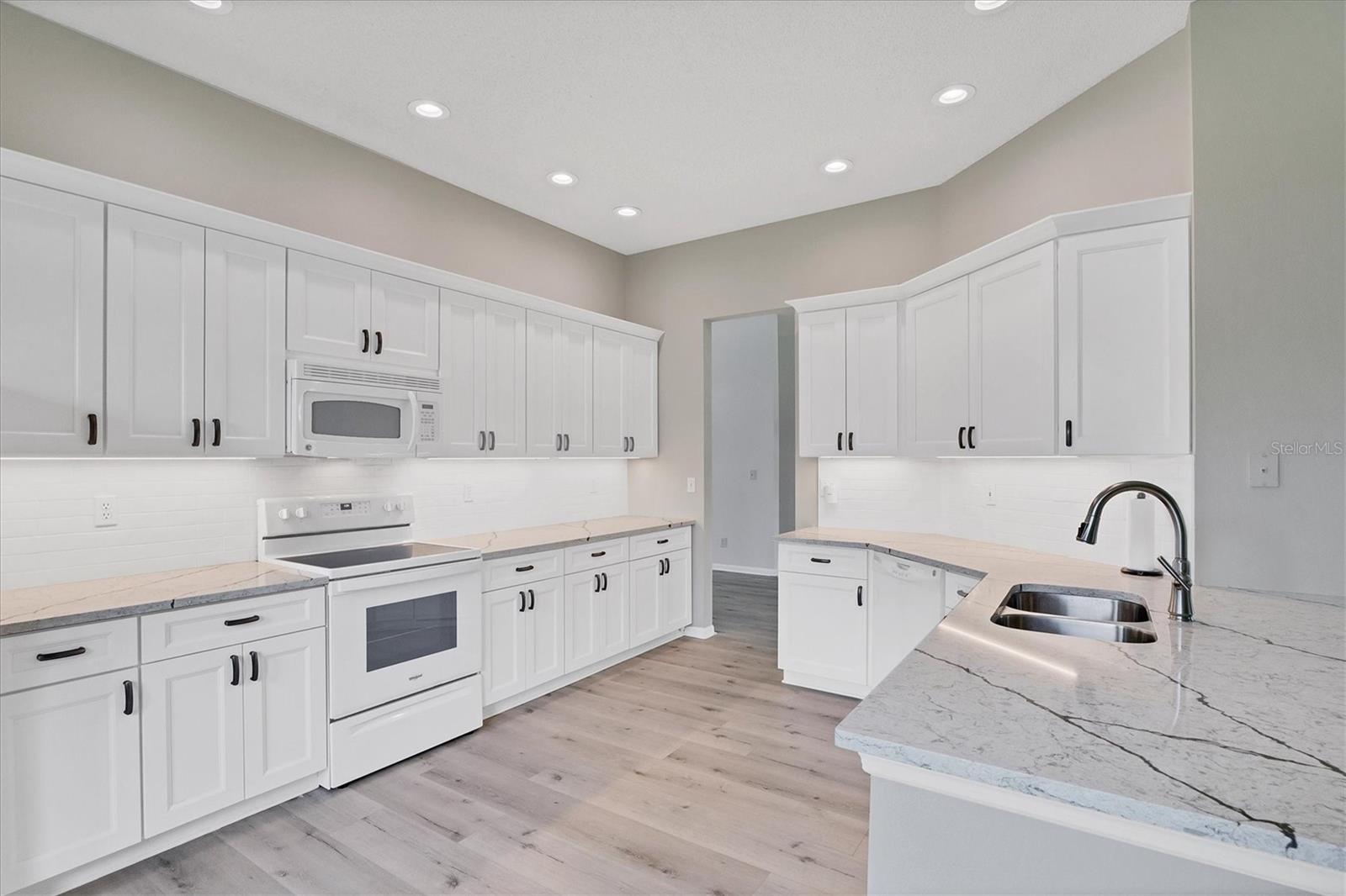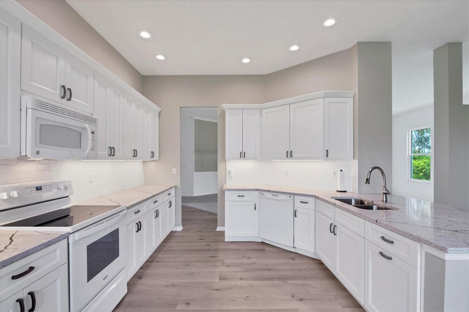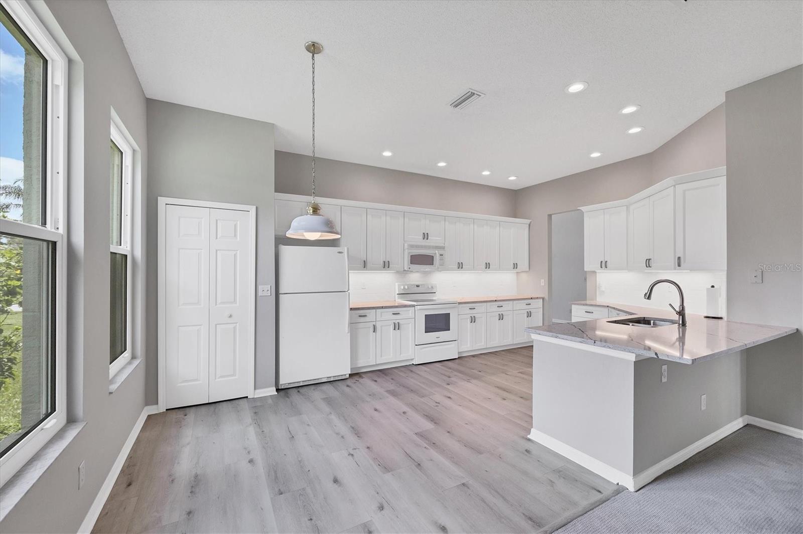 One or more photo(s) has been virtually staged. Welcome to 4925 Thames Lane, a fully updated, 3 bedroom, 2 bath home offering nearly 2000sf of modern, stylish living in a quiet, well-maintained Sarasota community with a low HOA fee. From the moment you enter, you'll notice the fresh, like-new feel - thanks to brand new luxury flooring and crisp interior and exterior paint. The home is filled with natural light from the large, double front doors as well as the sliders and windows throughout. You'll never be short of counter space in the large, eat-in, chef-inspired kitchen featuring quartz countertops, stainless-steel double sink, all new, quiet-close cabinets, under cabinet lighting, double pull-out garbage cans, new LED recessed lighting and beautiful, white appliances. The four-season lanai off of the family room has electricity and a cable outlet for relaxing year-round. The home is packed with value and peace of mind upgrades, including: new hurricane impact windows, doors and sliders, 4 ceiling fans, irrigation system, new water heater, new bathrooms with modern finishes, spacious bedrooms with generous closets, an attached garage large enough for two cars and storage shelves, and a beautifully landscaped backyard, large enough for a pool. Located in flood zone X, this desirable Sarasota neighborhood is close to shopping, dining, I-75, Legacy Trails, and the world-famous Siesta Key Beach.