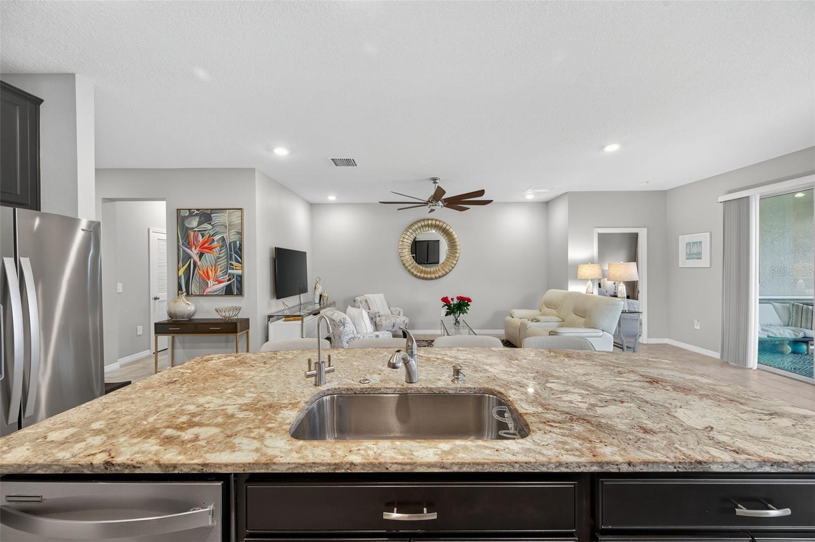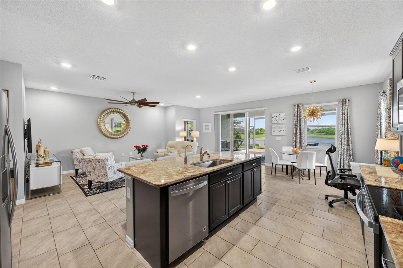 Welcome to Promenade Estates in Palmer Ranch - an amenity-rich, GATED community ideally located west of I-75 off Honore Avenue.This stunning former BUILDER'S MODEL home sits on a premium "A" elevation lot, perfectly positioned to capture serene POND, fountain, and preserve views from the main living spaces and lanai. From the moment you step inside, you're greeted by rich ceramic tile floors, tasteful neutral dcor, and an open, light-filled design that sets the tone for elegant yet comfortable living.Inside, enjoy an open floor plan filled with natural light, a CHEF'S kitchen that will impress you with abundant cabinetry and storage,huge granite island with breakfast bar seating, stainless steel appliances & pantry, granite prep counters, REVERSE OSMOSIS system and full-home WATER FILTRATION and instant water heater. The breakfast bar is perfect for casual meals or serving as a buffet when hosting. From the dining room, sliding glass doors open to the extended, covered, and screened lanai, where a custom "picture window" screen provides unobstructed lake and preserve views--bringing the beauty of Florida right into your home.The master suite is privately tucked at the rear and offers a luxurious bath with dual vanities, walk-in shower, soaking tub, private water closet, linen closet, and dual walk-in closets. Bedrooms 2 and 3 provide excellent guest accommodations with separate baths. A set of elegant glass French doors lead to a versatile office/den ( which can also be converted to a 4TH BEDROOM). Additional features include a spacious laundry room with custom storage, two-car garage with extended driveway, ceiling fans throughout, Maytag water softener/purifier, upgraded anti-no-see-um screening, and extensive paver enhancements.Promenade Estates offers resort-style amenities including a pool with lap lanes, fitness center, playground and splash pad, basketball and sand volleyball courts, dog parks with wash station, and picnic pavilion with grill.All this just minutes from A-rated schools, world-class beaches, shopping, dining, and Sarasota's vibrant cultural attractions.Don't miss this thoughtfully upgraded, move-in ready home in one of Sarasota's most desirable communities!