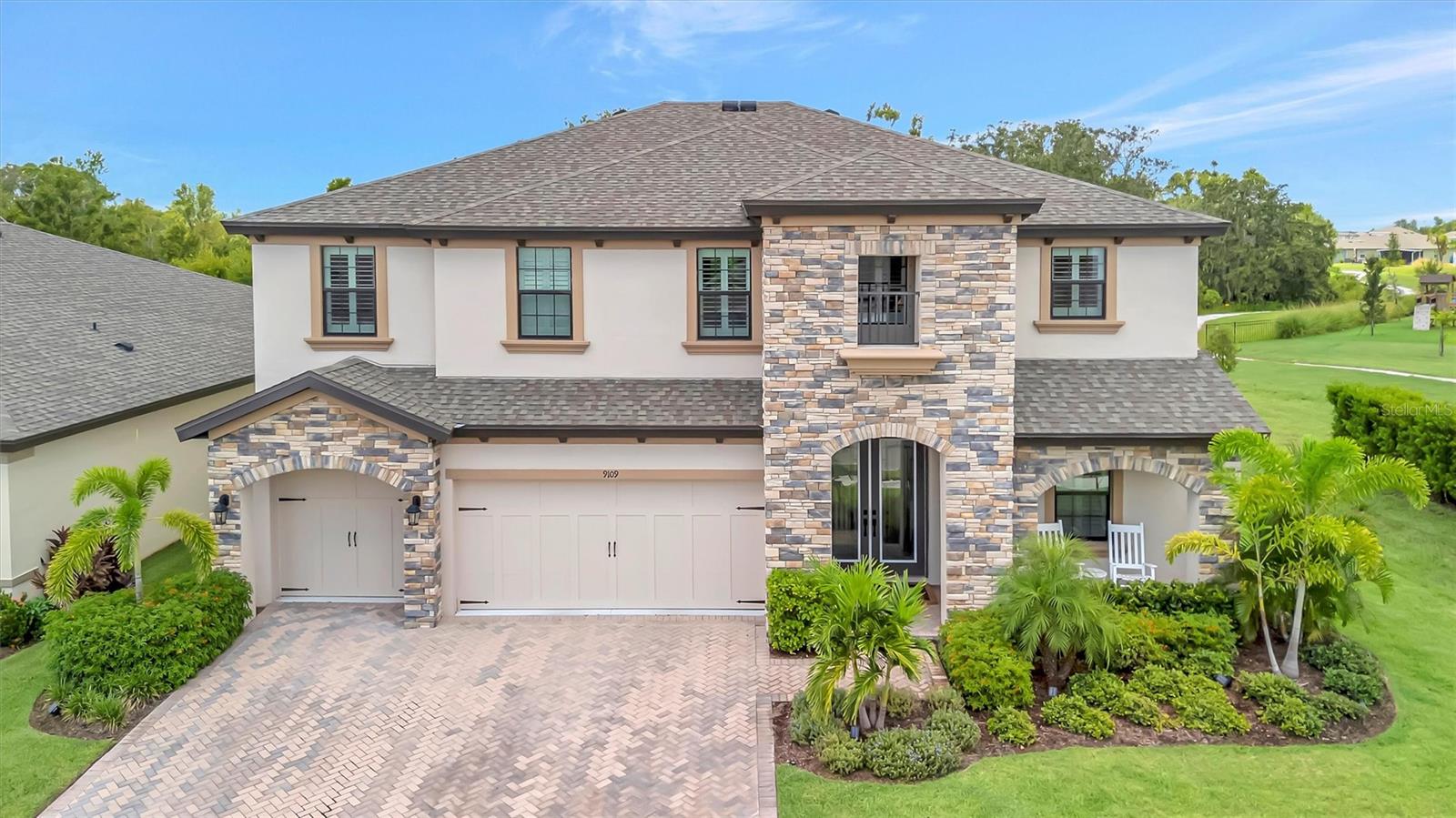 One or more photo(s) has been virtually staged. Islamorada II - This Islamorada II is ready for move-in! Discover this professionally designed home, offering well-appointed living and leisure spaces that provide both versatility and comfortable living. As you enter, an extended foyer guides you into the spacious grand room, where soaring 12-foot ceilings create an immediate sense of openness and light. This central area flows beautifully into the island kitchen and charming caf, which then transitions easily to your extended outdoor lanai, making it perfect for enjoying the Florida lifestyle and entertaining outdoors. The kitchen is truly a delight, featuring exquisite Maddox Harbor cabinets and elegant Frost Whte MSI Quartz countertops. Throughout the main living areas, you'll find durable Nutmeg LVP flooring, offering a blend of style and practicality. The home also includes generously sized secondary bedrooms, providing comfortable privacy, along with a flexible den space that can serve as a formal dining area or a productive home office. An oversized laundry room adds to the everyday convenience. Escape to the luxurious owner's retreat, a private sanctuary designed for relaxation. This haven features an expansive walk-in closet, double vanities, and a spacious walk-in shower. Upstairs, the Islamorada II offers even more space with a spacious bonus room and a secluded bedroom and bath. This upper level is an ideal oasis for guests, extended family, or as additional play or work areas, ensuring comfort and privacy for everyone. Don't miss the chance to make this home your own ! Listing Price amount for this Pending Sale includes Design and Structural Options.