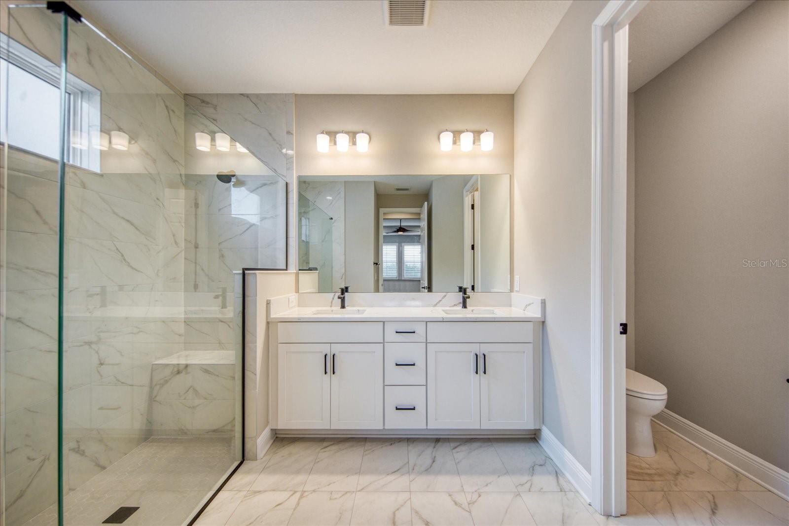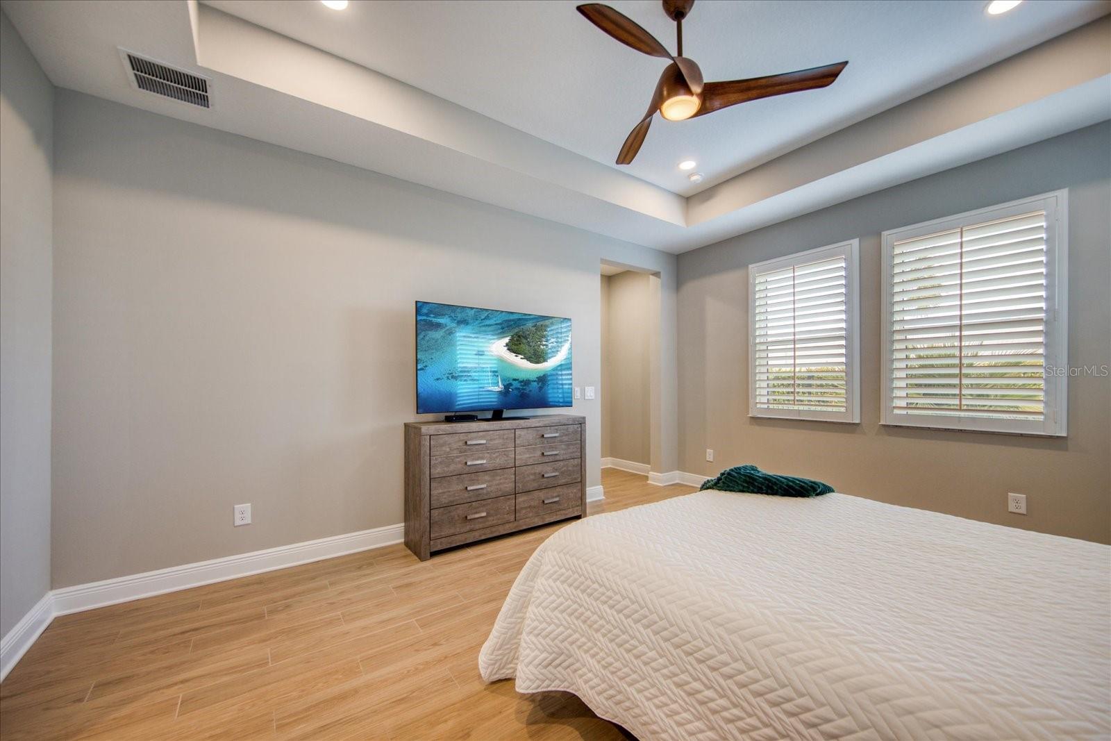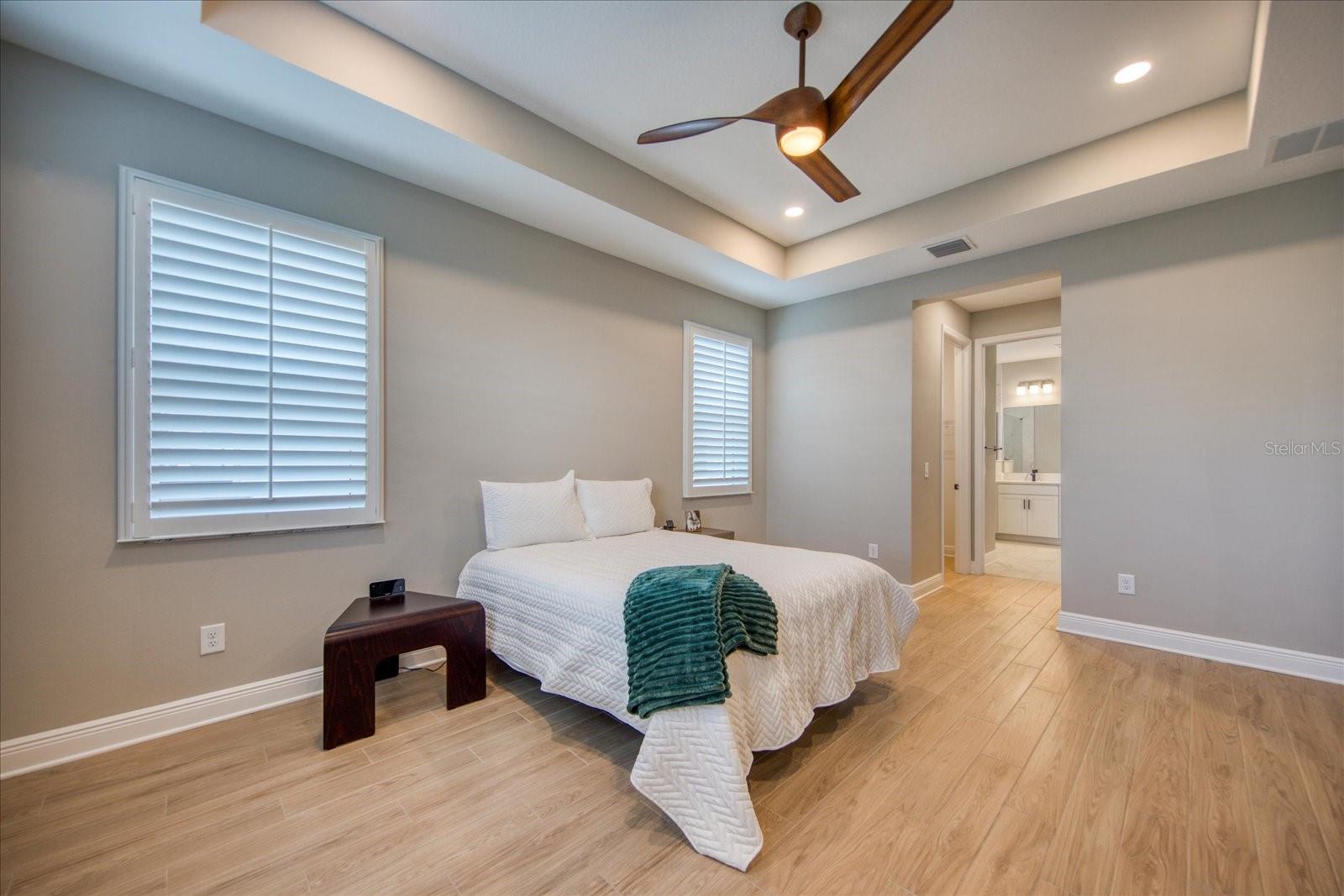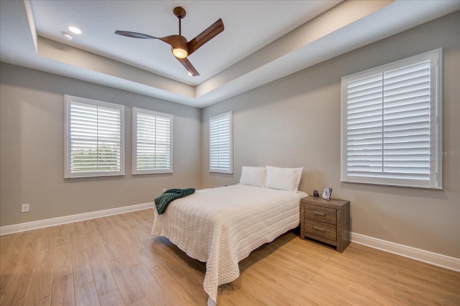 UNDER CONTRACT- ACCEPTING BACKUP OFFERS.Discover the welcoming community of Sweetwater at Lakewood Ranch, where the Amelia floor plan harmoniously blends style and functionality. This home boasts 3 bedrooms, 2 full bathrooms, a powder room, a flex space adaptable as an office or den, a covered lanai, fenced backyard, and a convenient two-car garage. Upon entering the inviting foyer, you will be drawn to the flex room, perfect for creating your ideal workspace or relaxation haven. Continuing through the home, discover a Smart House with Z-Wave Dimmer Switches and abundance of recessed LED lighting with indoor laundry room featuring new LG front load washer and dryer, and the half bathroom that are both cleverly separated from bedrooms and main living area. On the right wing of the house are two guest bedrooms that share a full bathroom, providing an ideal setup. Upgraded tile flooring seamlessly replaces the builder-grade carpet in each bedroom, while a built-in desk nook complements the home's functionality. The open-concept main living area showcases a dazzling kitchen with a spacious center island, ample counter & cabinet space, an upgraded LG refrigerator with dual ice maker and craft ice , convection oven and gas range- surely to please the greatest of chefs! The adjacent dining area offers direct access to the lanai, creating a smooth flow through the home. Sliding glass doors off the dining and living room lead to the covered lanai and a fenced backyard with three points of access, making outdoor living a breeze. Retreat to the owner's suite, tucked away for privacy yet connected to the heart of the home. The highlight of this sanctuary is the tray ceiling, dual walk-in closets providing ample storage space for all your belongings, and ensuite bathroom featuring a glass framed walk-in shower, double vanity, and separate water closet. Elevating the home's aesthetics, white wood plantation shutters adorn every window, adding to the overall sense of privacy and style. Each bathroom boasts new Toto white elongated 1-piece Ultramax II toilets with self-closing premium seats. This brand-new home comes with the added bonus of updates made after closing, ensuring a modern and move-in-ready experience to include high end decorative ceiling fans, HonestSilver Plus whole house filtration system and high grade water softener have been installed for enhanced well-being. For an additional peace of mind the house has Hurricane Impacts Windows and Sliders throughout the home and owners have installed 4 security cameras, ring doorbell, full house alarm, wireless carbon monoxide detector, rear exterior flood lights, dedicated electrical circuit for a garage refrigerator/freezer, pre-wired for a pool and/or spa and additional gutters at the front and rear of the house!Sweetwater at Lakewood Ranch offers an unparalleled lifestyle with resort-style amenities, including a pool, pump track, playground, multi-purpose sport court, pickleball courts, and a festival lawn with an amphitheater. The custom-designed community center features a 24-hour fitness room, caf, and social hall, providing a vibrant and engaging community experience. Welcome to the epitome of luxury living at Sweetwater! Bedroom Closet Type: Walk-in Closet (Primary Bedroom).