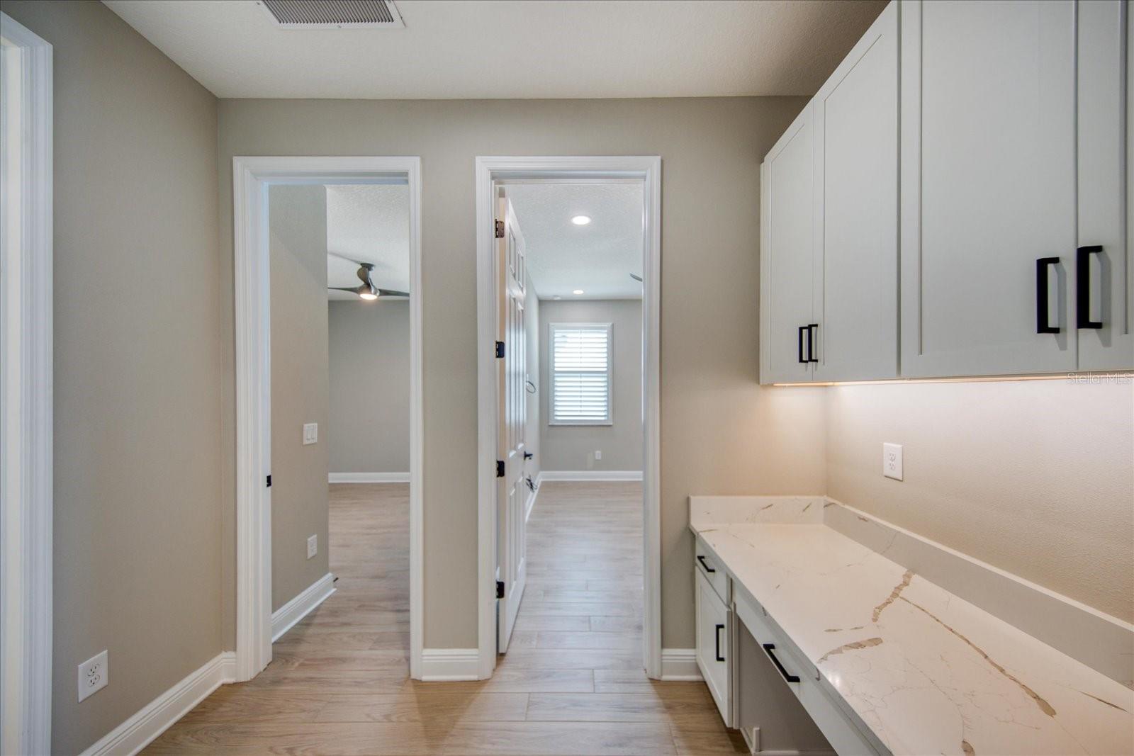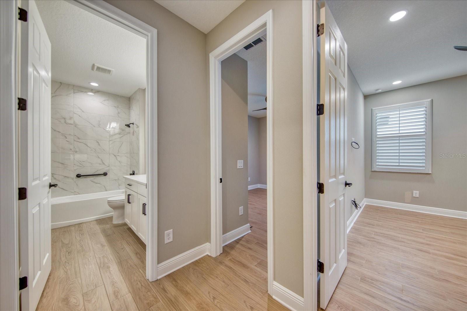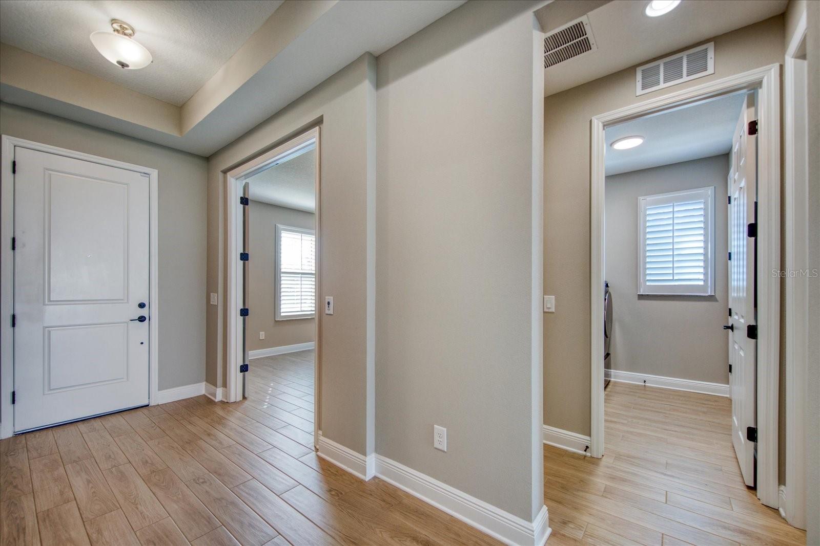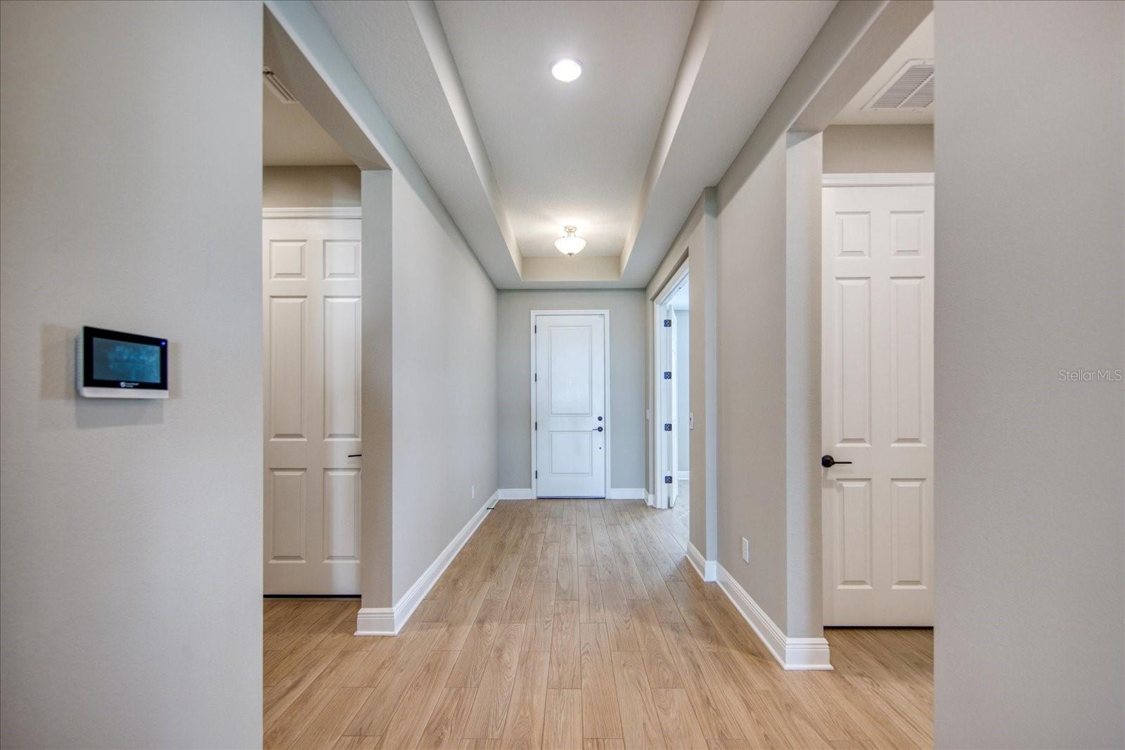 UNDER CONTRACT- ACCEPTING BACKUP OFFERS.Discover the welcoming community of Sweetwater at Lakewood Ranch, where the Amelia floor plan harmoniously blends style and functionality. This home boasts 3 bedrooms, 2 full bathrooms, a powder room, a flex space adaptable as an office or den, a covered lanai, fenced backyard, and a convenient two-car garage. Upon entering the inviting foyer, you will be drawn to the flex room, perfect for creating your ideal workspace or relaxation haven. Continuing through the home, discover a Smart House with Z-Wave Dimmer Switches and abundance of recessed LED lighting with indoor laundry room featuring new LG front load washer and dryer, and the half bathroom that are both cleverly separated from bedrooms and main living area. On the right wing of the house are two guest bedrooms that share a full bathroom, providing an ideal setup. Upgraded tile flooring seamlessly replaces the builder-grade carpet in each bedroom, while a built-in desk nook complements the home's functionality. The open-concept main living area showcases a dazzling kitchen with a spacious center island, ample counter & cabinet space, an upgraded LG refrigerator with dual ice maker and craft ice , convection oven and gas range- surely to please the greatest of chefs! The adjacent dining area offers direct access to the lanai, creating a smooth flow through the home. Sliding glass doors off the dining and living room lead to the covered lanai and a fenced backyard with three points of access, making outdoor living a breeze. Retreat to the owner's suite, tucked away for privacy yet connected to the heart of the home. The highlight of this sanctuary is the tray ceiling, dual walk-in closets providing ample storage space for all your belongings, and ensuite bathroom featuring a glass framed walk-in shower, double vanity, and separate water closet. Elevating the home's aesthetics, white wood plantation shutters adorn every window, adding to the overall sense of privacy and style. Each bathroom boasts new Toto white elongated 1-piece Ultramax II toilets with self-closing premium seats. This brand-new home comes with the added bonus of updates made after closing, ensuring a modern and move-in-ready experience to include high end decorative ceiling fans, HonestSilver Plus whole house filtration system and high grade water softener have been installed for enhanced well-being. For an additional peace of mind the house has Hurricane Impacts Windows and Sliders throughout the home and owners have installed 4 security cameras, ring doorbell, full house alarm, wireless carbon monoxide detector, rear exterior flood lights, dedicated electrical circuit for a garage refrigerator/freezer, pre-wired for a pool and/or spa and additional gutters at the front and rear of the house!Sweetwater at Lakewood Ranch offers an unparalleled lifestyle with resort-style amenities, including a pool, pump track, playground, multi-purpose sport court, pickleball courts, and a festival lawn with an amphitheater. The custom-designed community center features a 24-hour fitness room, caf, and social hall, providing a vibrant and engaging community experience. Welcome to the epitome of luxury living at Sweetwater! Bedroom Closet Type: Walk-in Closet (Primary Bedroom).